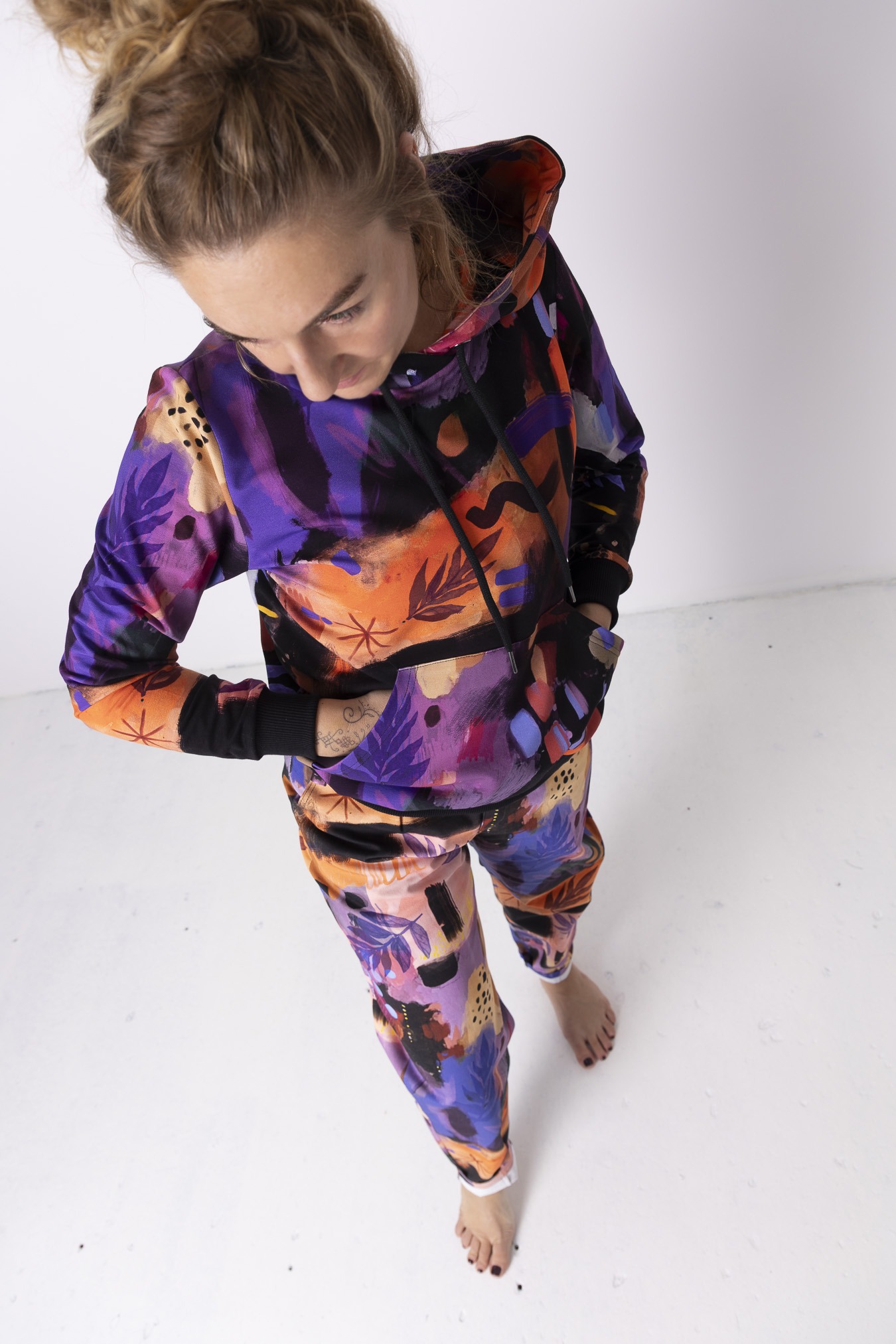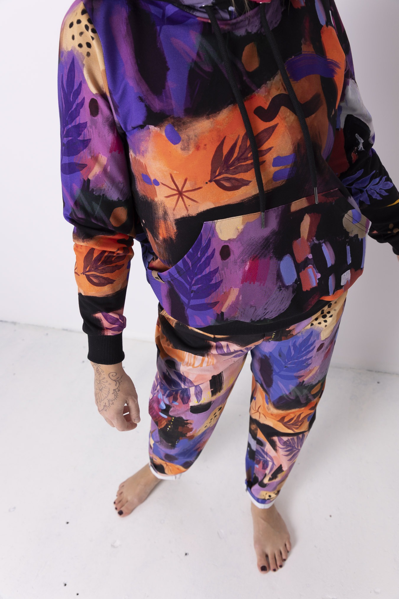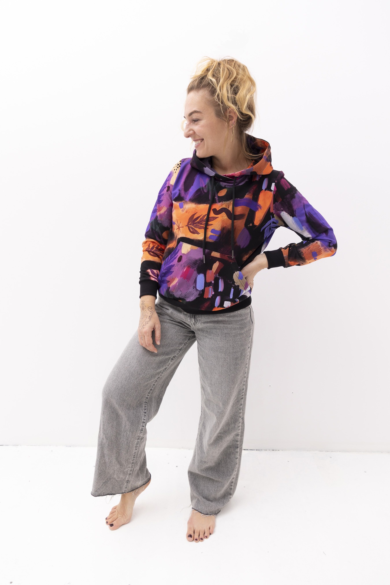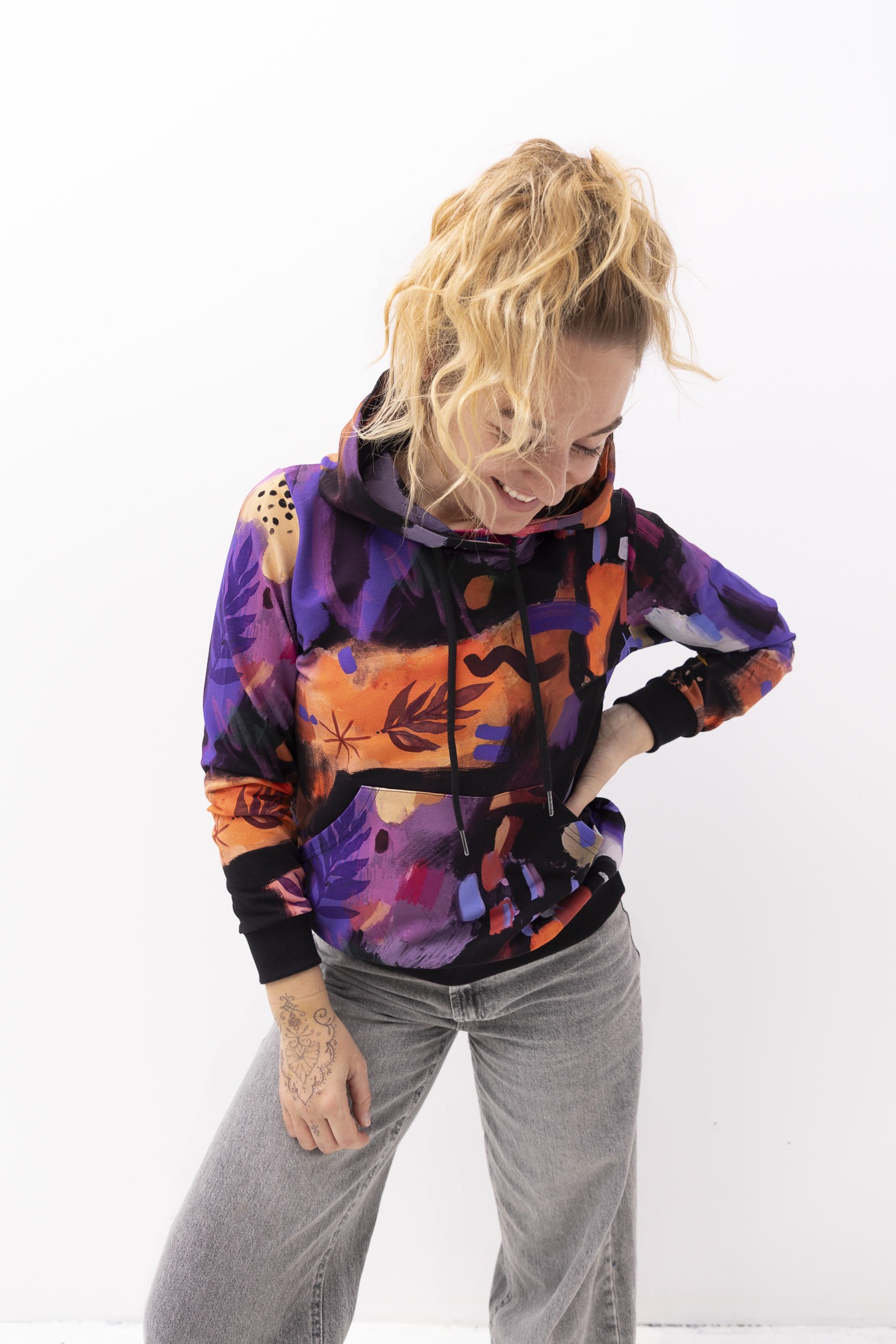 Bluza hoodie 2.0 Mazunte  przenosi w klimat oceanu, piasku i kolorów natury – ma w sobie spokój, ale też odrobinę dzikości. Wzór pełen ciepłych barw i morskich tonów przywołuje na myśl zachody słońca nad oceanem i beztroskę podróży. Jej krój delikatnie dopasowuje się do sylwetki, ale wciąż daje swobodę ruchu – dokładnie tak, jak lubimy najbardziej. Ściągacze na rękawach i dole nadają jej kształt, a duża kieszeń kangurka to idealne miejsce na dłonie lub drobiazgi, które chcesz mieć zawsze przy sobie. Miękka dzianina dresowa z pętelką otula komfortem, sprawiając, że nie będziesz chciała jej zdjąć – ani w mieście, ani w drodze ku słońcu.