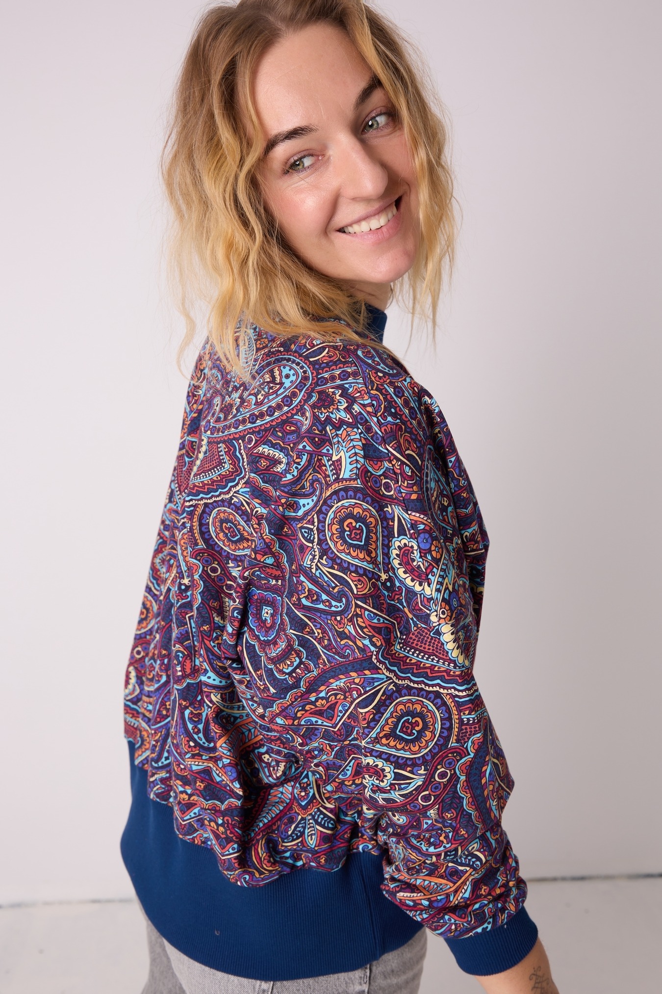 Ta bluza to mały unikat — powstała w limitowanej liczbie sztuk z ostatniej belki materiału. Nie planujemy doszywek, więc jeżeli skradła Ci serce… lepiej nie czekaj, aż zrobi to ktoś inny.