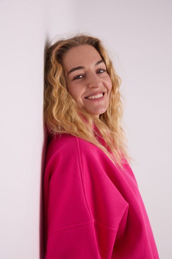 Bluza oversize to ta, która nie pozwala przejść obok siebie obojętnie. Warto się jej przyjrzeć lepiej, jeśli jeszcze nie masz jej w swojej garderobie. Neon Kiss to kolor pełen energii, odwagi i radości. Przyciąga uwagę, dodaje pewności siebie i podkreśla indywidualność. To barwa kojarzona z dynamiką, kreatywnością i optymizmem – trudno przejść obok niej obojętnie. W psychologii kolorów róż symbolizuje także ciepło i emocjonalność, łącząc w sobie kobiecość z siłą.