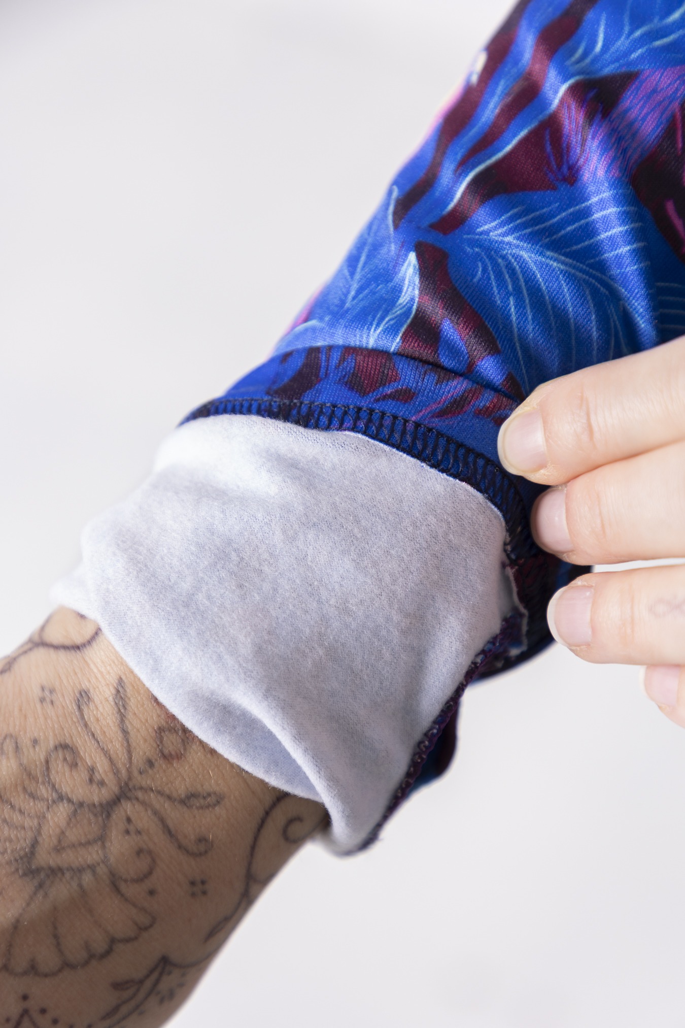 W przypadku ubrań uszytych z materiałów zawierających naturalne włókna (bawełna, len, wiskoza, bambus) typowym procesem jest kurczenie się materiału. Cechę tą należy uwzględnić to dobierając rozmiar. Układ wzoru na każdym egzemplarzu jest inny. Kolory na zdjęciu mogą się delikatnie różnić od rzeczywistych produktów w zależności od preferencji monitora.