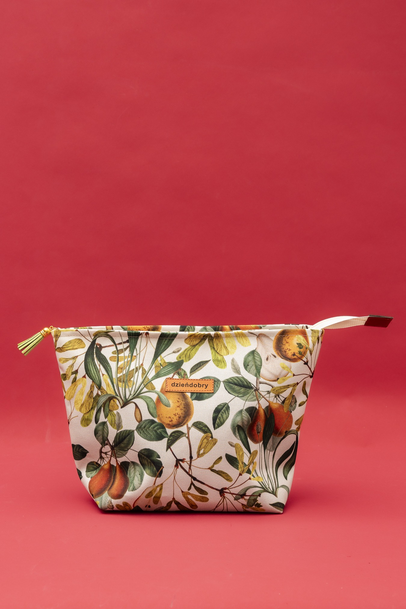 Kosmetyczka we wzór Gruszka to mały przedmiot o wielkim znaczeniu — praktyczna, poręczna i z charakterem. Zmieści wszystko, co chcesz mieć zawsze pod ręką — od ulubionej szminki po mini krem do rąk — i wygląda przy tym po prostu pięknie. Idealna w podróży, ale też do codziennego użytku, gdy lubisz mieć porządek w torebce.