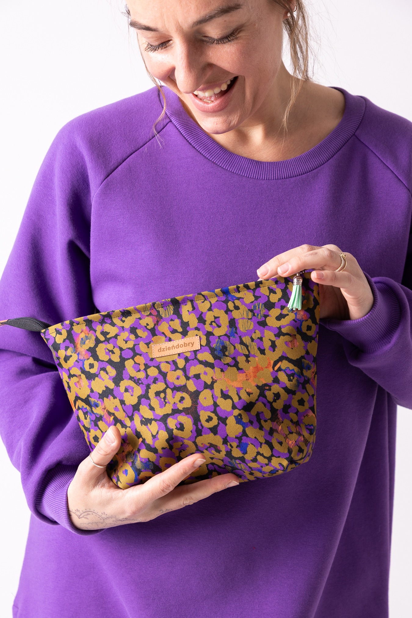 Pomieści wszystkie drobiazgi, które lubisz mieć pod ręką — od codziennych niezbędników po te „na wszelki wypadek”. Kosmetyczka we wzór Panterka Sporty uszyta z trwałej cordury, gotowa na intensywne użytkowanie i podróże małe oraz duże. W środku miękka mikrofibra, która otula zawartość i sprawia, że sięganie do kosmetyczki to po prostu przyjemność.