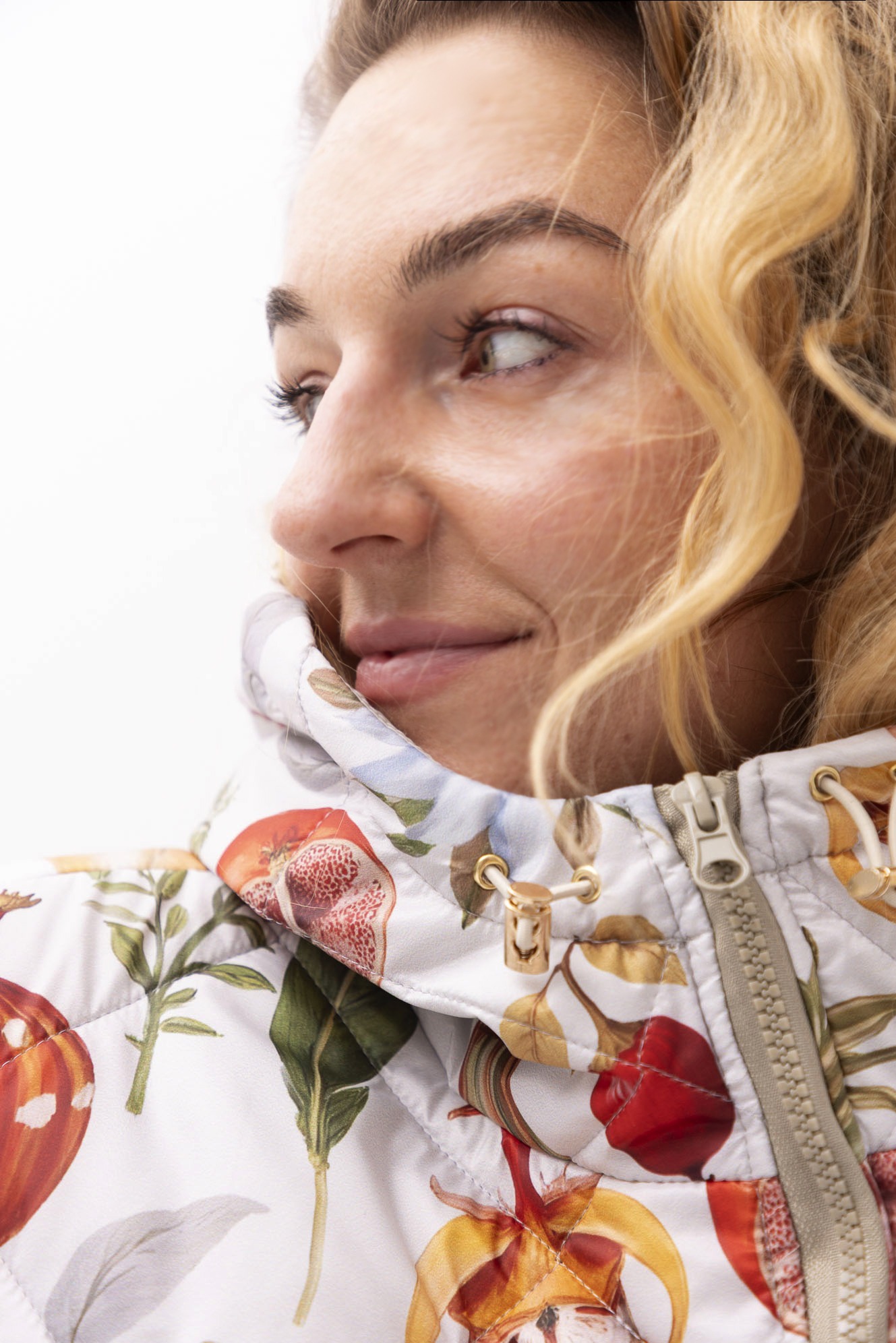 Kurtka w naszym, nowym autorskim wzorze Alcea – nabiera dodatkowego, botanicznego charakteru. Ciepła, lekka i odporna na chłód kurtka z technologicznym ociepleniem 3M™ Thinsulate™ — nowoczesną alternatywą dla naturalnego puchu. Mikrowłókna Thinsulate™ zatrzymują ciepło nawet w wilgotnych warunkach, a jednocześnie pozwalają skórze oddychać. Dzięki pikowaniu wypełnienie nie przemieszcza się, więc kurtka zachowuje swój kształt i równomiernie grzeje nawet po wielu praniach. Długość sięgająca za pośladki zapewnia idealną ochronę przed zimnem. Kaptur ze stoperami i elastyczną gumką pozwala idealnie dopasować go do głowy, zapewniając ochronę przed wiatrem i chłodem.
