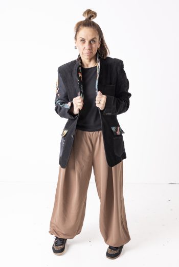 Powstała w naszej kolekcji upcyklingowej DDxUlka_ta_od_szycia — z materiałów, którym dajemy drugie życie. Do jej stworzenia wykorzystujemy nasze tkaniny pozostałe po produkcji, łącząc je z wyselekcjonowanym denimem z drugiego obiegu. Dzięki temu każdy element materiału znajduje nowe zastosowanie, a z pozornych resztek powstaje pełnoprawny, wyjątkowy projekt.