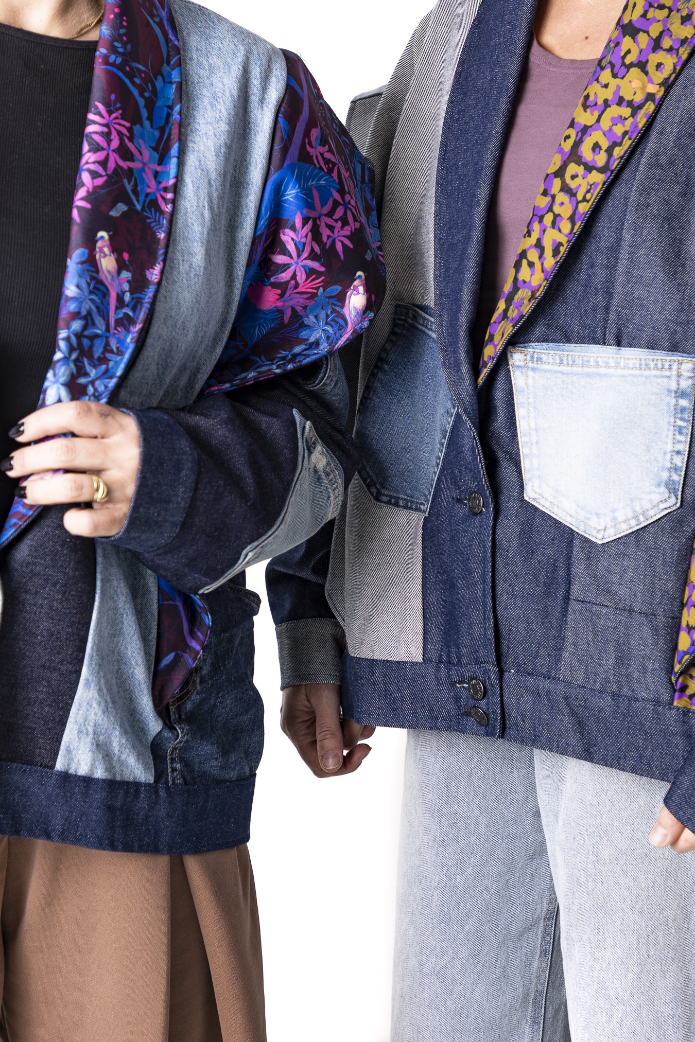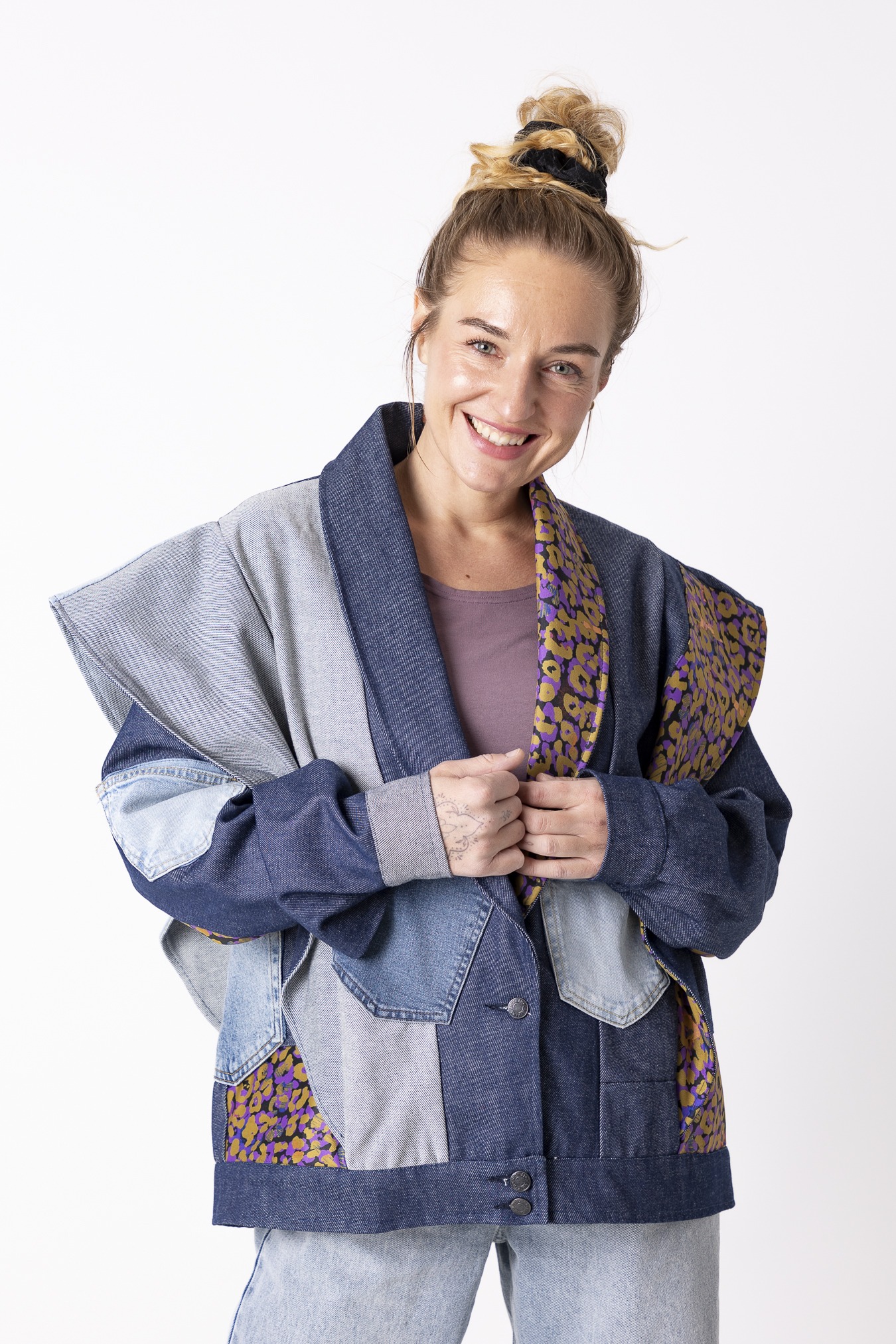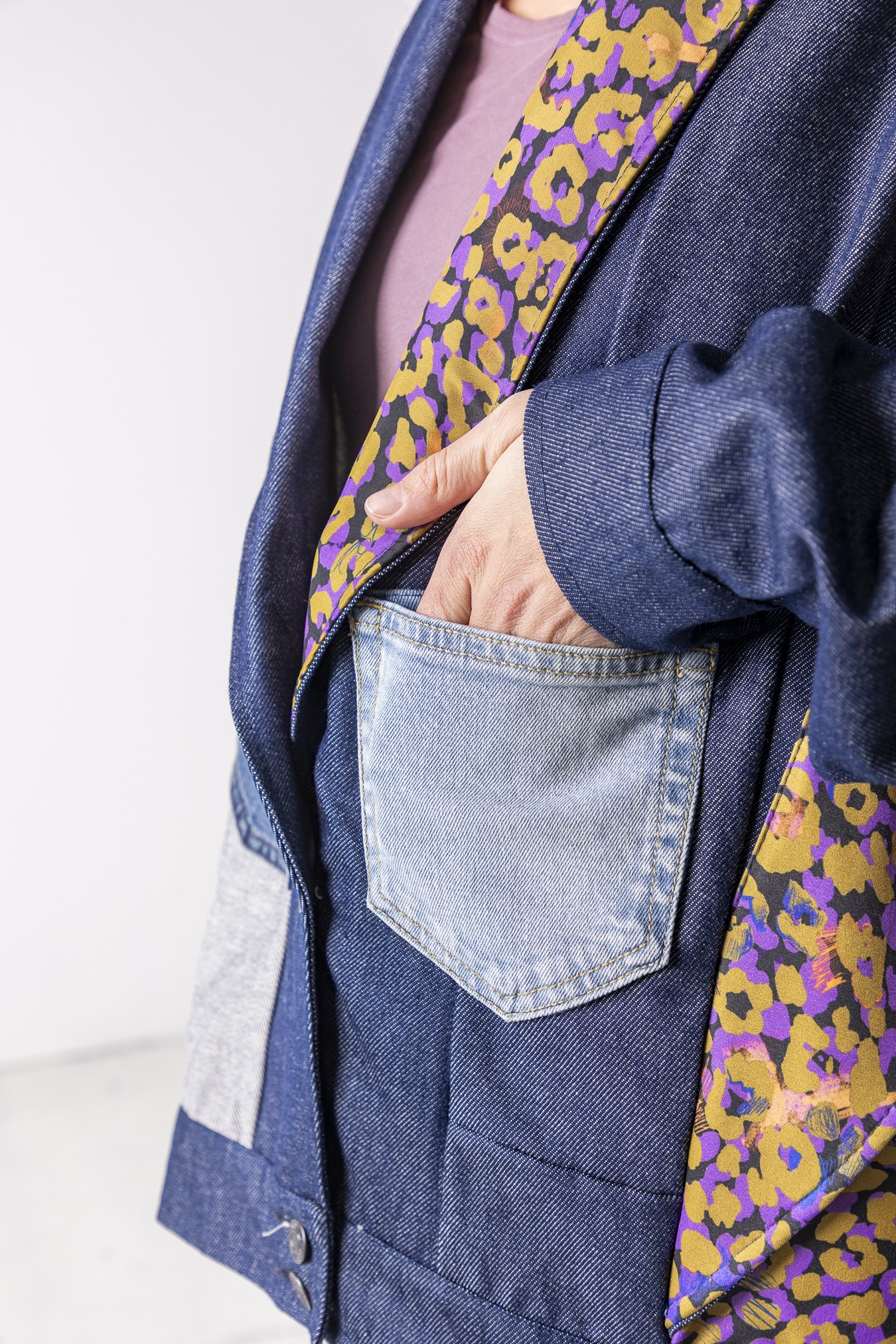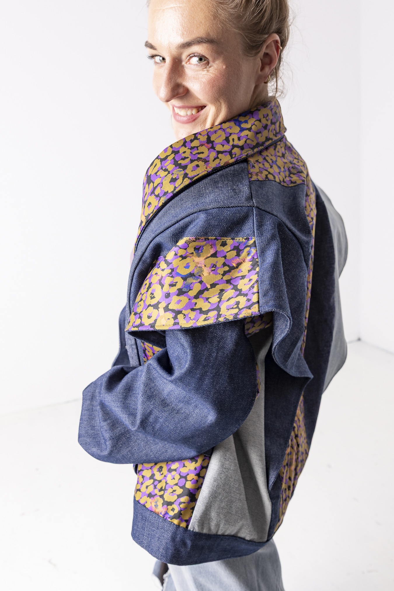 Kurtka Wachlarz powstała w naszej kolekcji upcyklingowej DDxUlka_ta_od_szycia — z materiałów, którym dajemy drugie życie. Łączymy w niej nasze tkaniny pozostałe po produkcji z wyselekcjonowanymi jeansami z drugiego obiegu, tworząc nową, wyrazistą formę. To projekt, w którym patchwork i różnorodność materiałów budują charakter kurtki.
