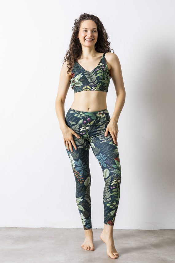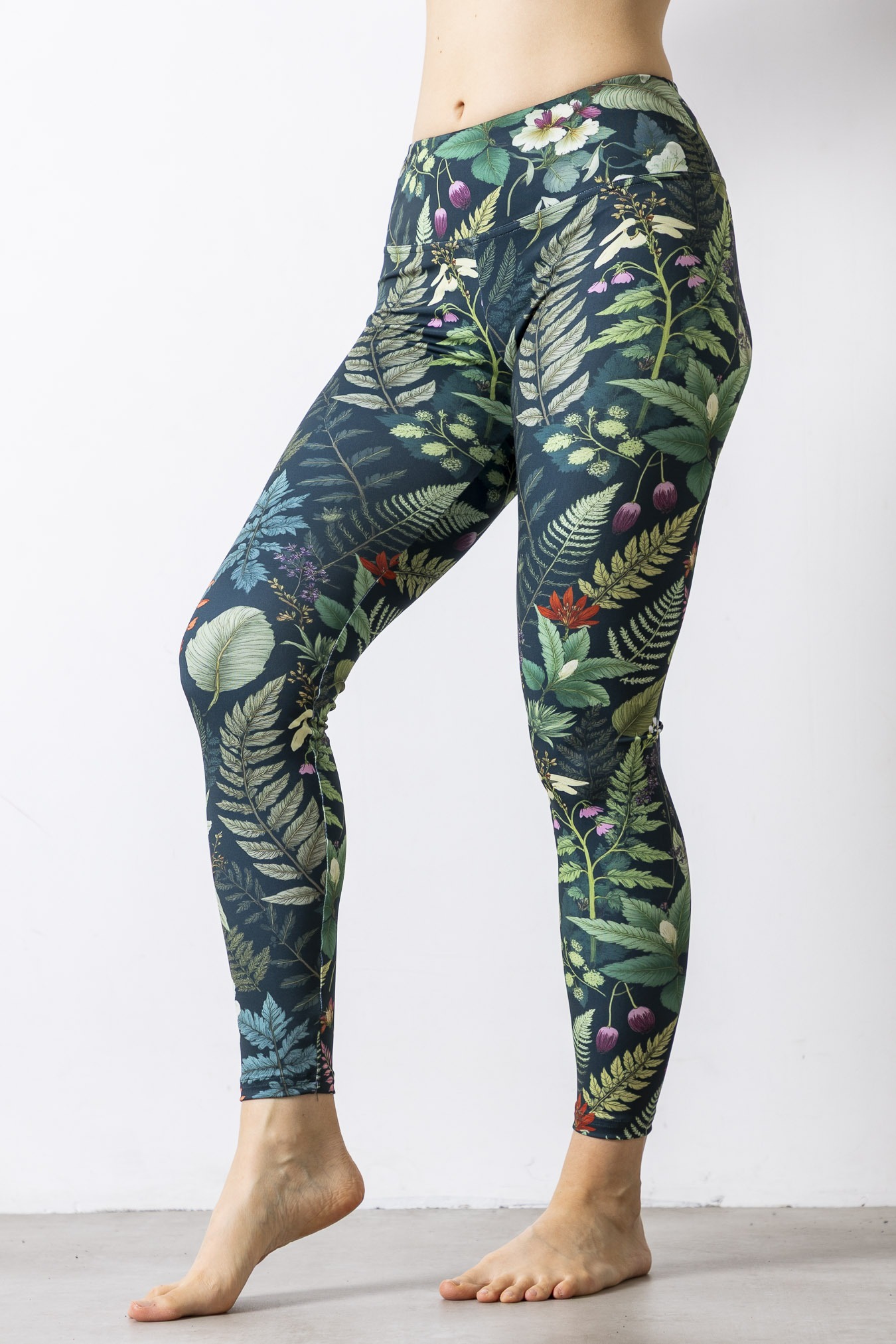 Zieleń paproci pięknie kontrastuje z ciemniejszym tłem, to wzór pełen tajemnicy. Świetnie odprowadzają wilgoć i szybko schną co sprawia, że legginsy idealnie nadają się na intensywne treningi, gdzie liczy się świeżość i komfort. Zapewnią wsparcie podczas każdej aktywności, a w dodatku są wielofunkcyjne. Dzięki lycrze dopasowują się do ciała i pracują razem z Tobą.