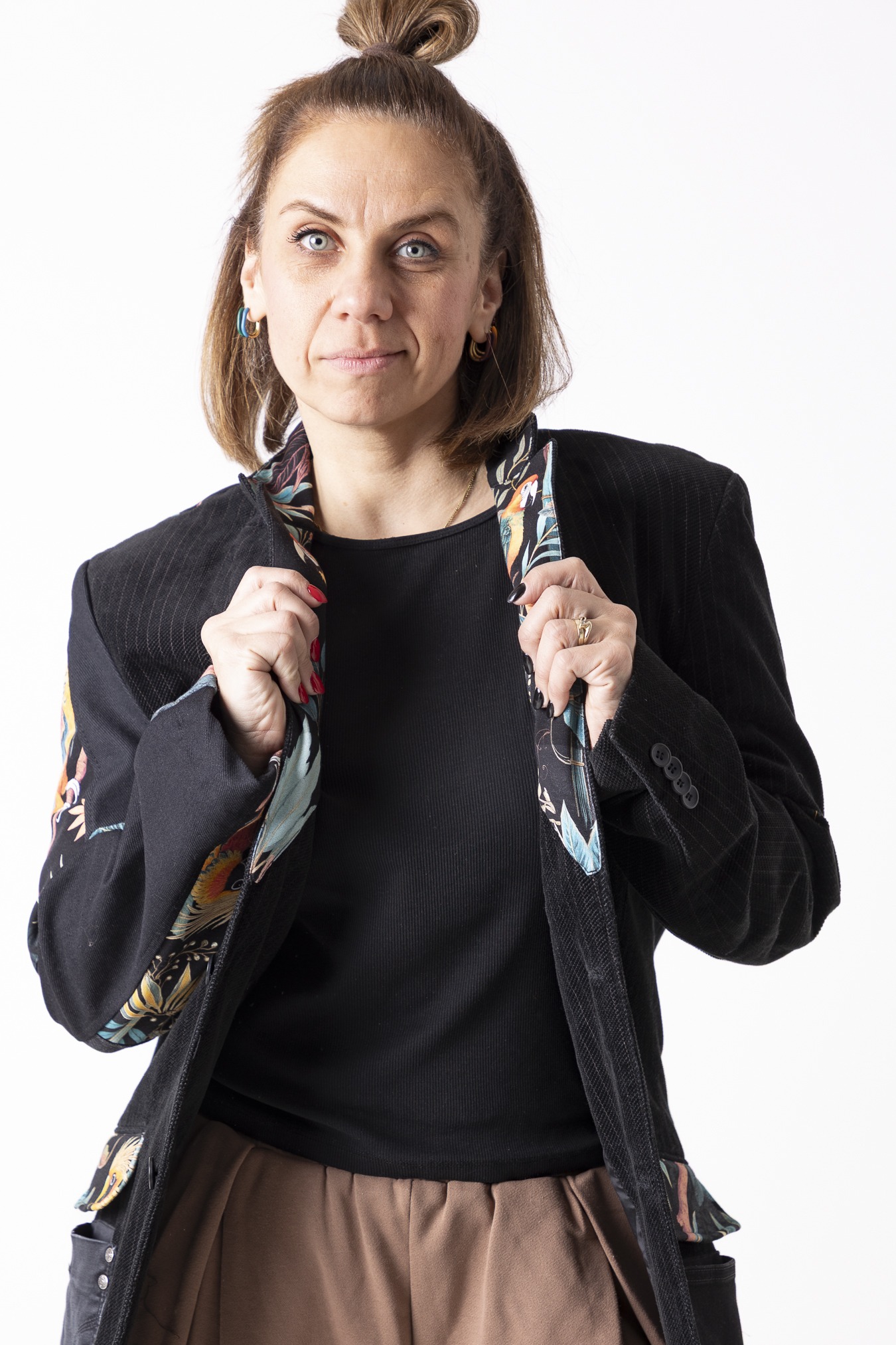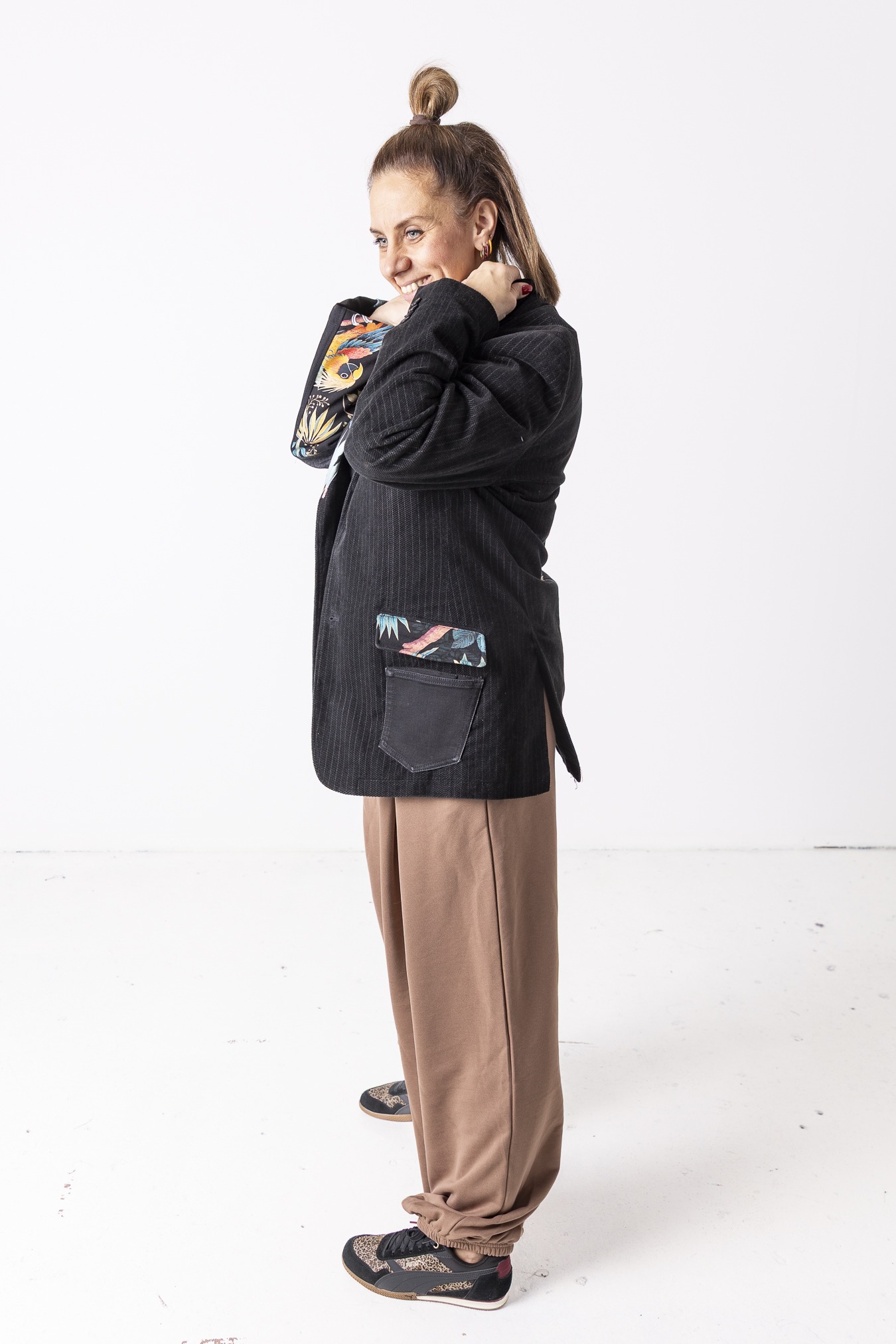 Każda marynarka różni się detalami i układem wstawek — dlatego każda jest jedyna w swoim rodzaju.
