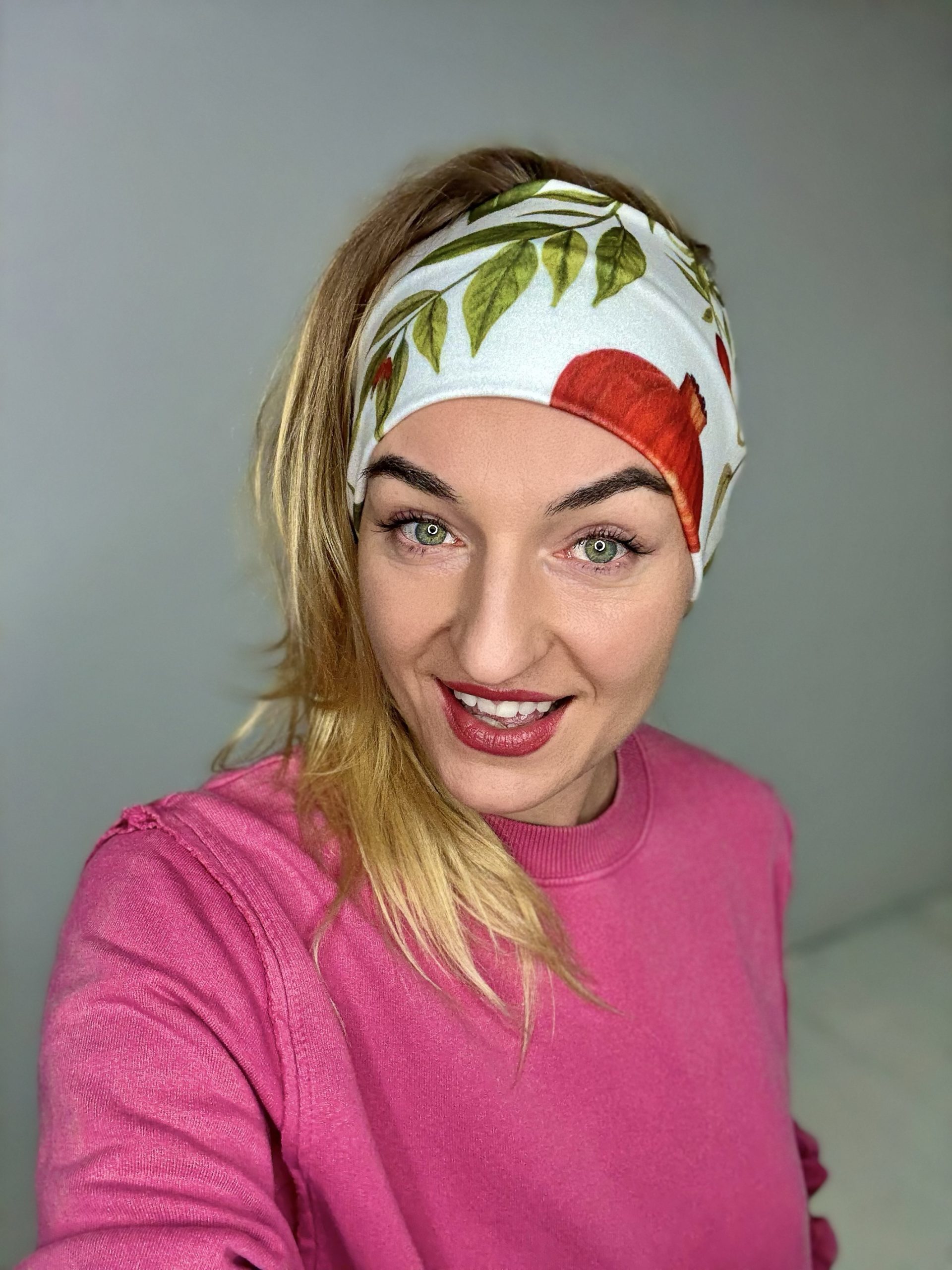 Ta przyciągająca wzrok opaska, wnosi botaniczny urok i jasne kolory do Twojej aktywności fizycznej i zimowych stylizacji. Unikalny wzór Alcea sprawi, że będziesz się wyróżniać na siłowni, na szlaku lub gdziekolwiek zaprowadzi Cię Twoja fitnessowa podróż. Wykonana z najwyższej jakości włókna syntetycznego elana.  Lekki, szybkoschnący materiał skutecznie odprowadza wilgoć, dzięki czemu zachowasz komfort niezależnie od tego, czy biegniesz rano na tramwaj, intensywnie trenujesz HIIT, czy spacerujesz wśród natury. Elastyczna konstrukcja idealnie dopasowuje się do kształtu głowy, zapewniając bezpieczne, ale delikatne trzymanie, które nie uciska, nie zsuwa się, utrzymuje włosy na miejscu.