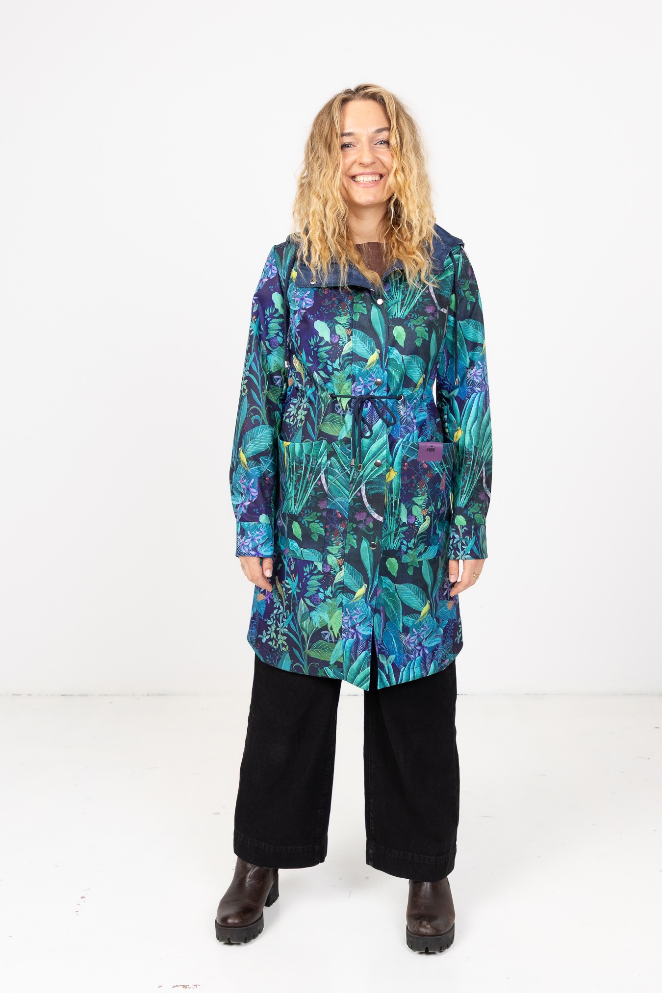Parka uszyta jest z softshellu — nowoczesnego, wielowarstwowego materiału, który sam w sobie zapewnia dobrą izolację termiczną, wiatroodporność, oddychalność, wodoodporność oraz odporność mechaniczną. Struktura softshellu jest lekka i miękka, dzięki czemu kurtka świetnie sprawdza się w ruchu i w zmiennych warunkach pogodowych. To materiał stworzony do aktywności na świeżym powietrzu — od codziennych spacerów po podróże. Funkcjonalność tej parki to właśnie softshell i jego wodoodporne właściwości. Kobiecość natomiast nadaje jej klasyczny krój parki, możliwość regulacji w talii oraz moje wzory, które sprawiają, że kurtka jest wyrazista i piękna. To kobieca kurtka o sportowej, funkcjonalnej duszy — idealna do miasta, w drogę i na wyjazdy.