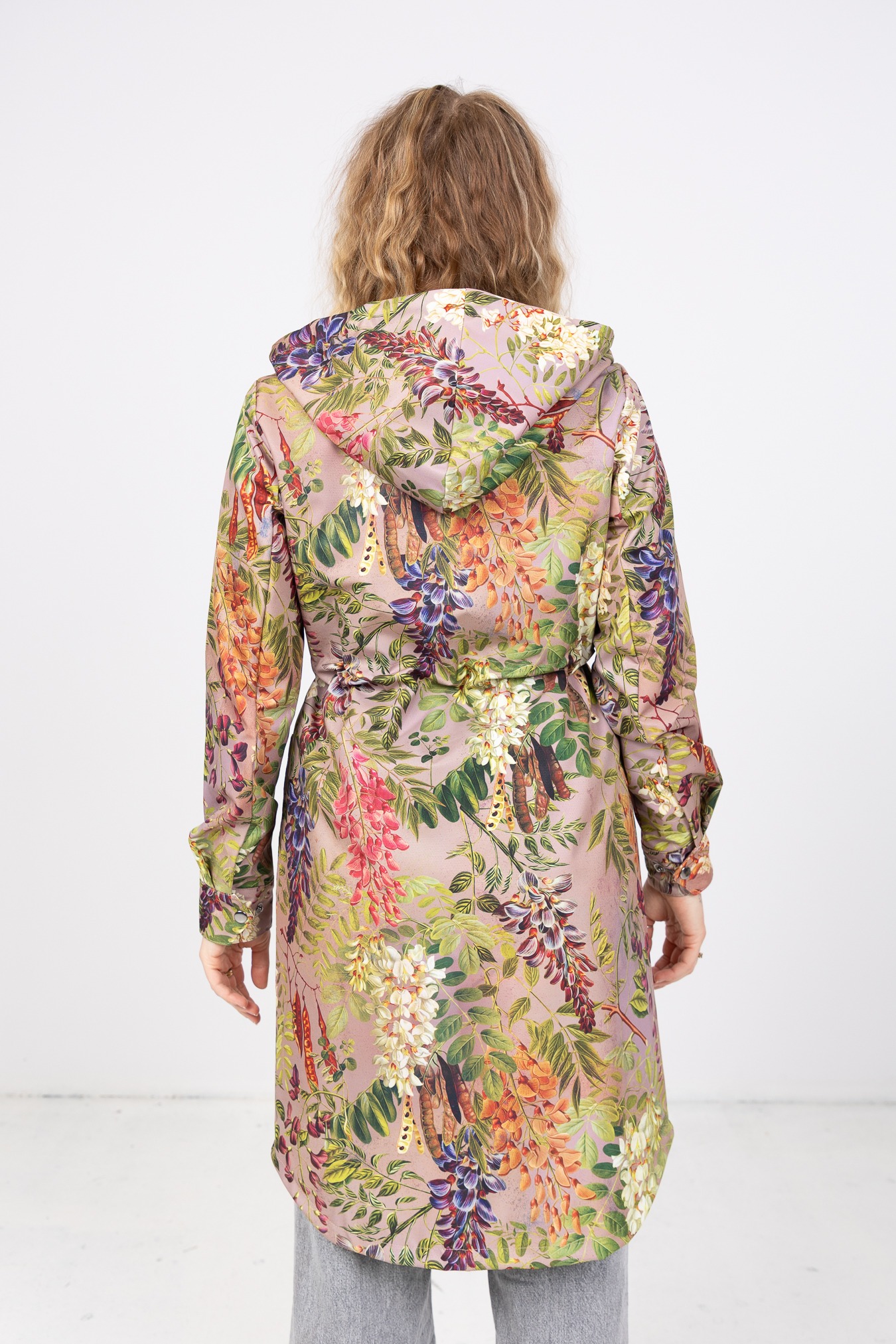 Parka uszyta jest z softshellu — nowoczesnego, wielowarstwowego materiału, który sam w sobie zapewnia dobrą izolację termiczną, wiatroodporność, oddychalność, wodoodporność oraz odporność mechaniczną. Struktura softshellu jest lekka i miękka, dzięki czemu kurtka świetnie sprawdza się w ruchu i w zmiennych warunkach pogodowych. To materiał stworzony do aktywności na świeżym powietrzu — od codziennych spacerów po podróże. Funkcjonalność tej parki to właśnie softshell i jego wodoodporne właściwości. Kobiecość natomiast nadaje jej klasyczny krój parki, możliwość regulacji w talii oraz moje wzory, które sprawiają, że kurtka jest wyrazista i piękna. To kobieca kurtka o sportowej, funkcjonalnej duszy — idealna do miasta, w drogę i na wyjazdy.
