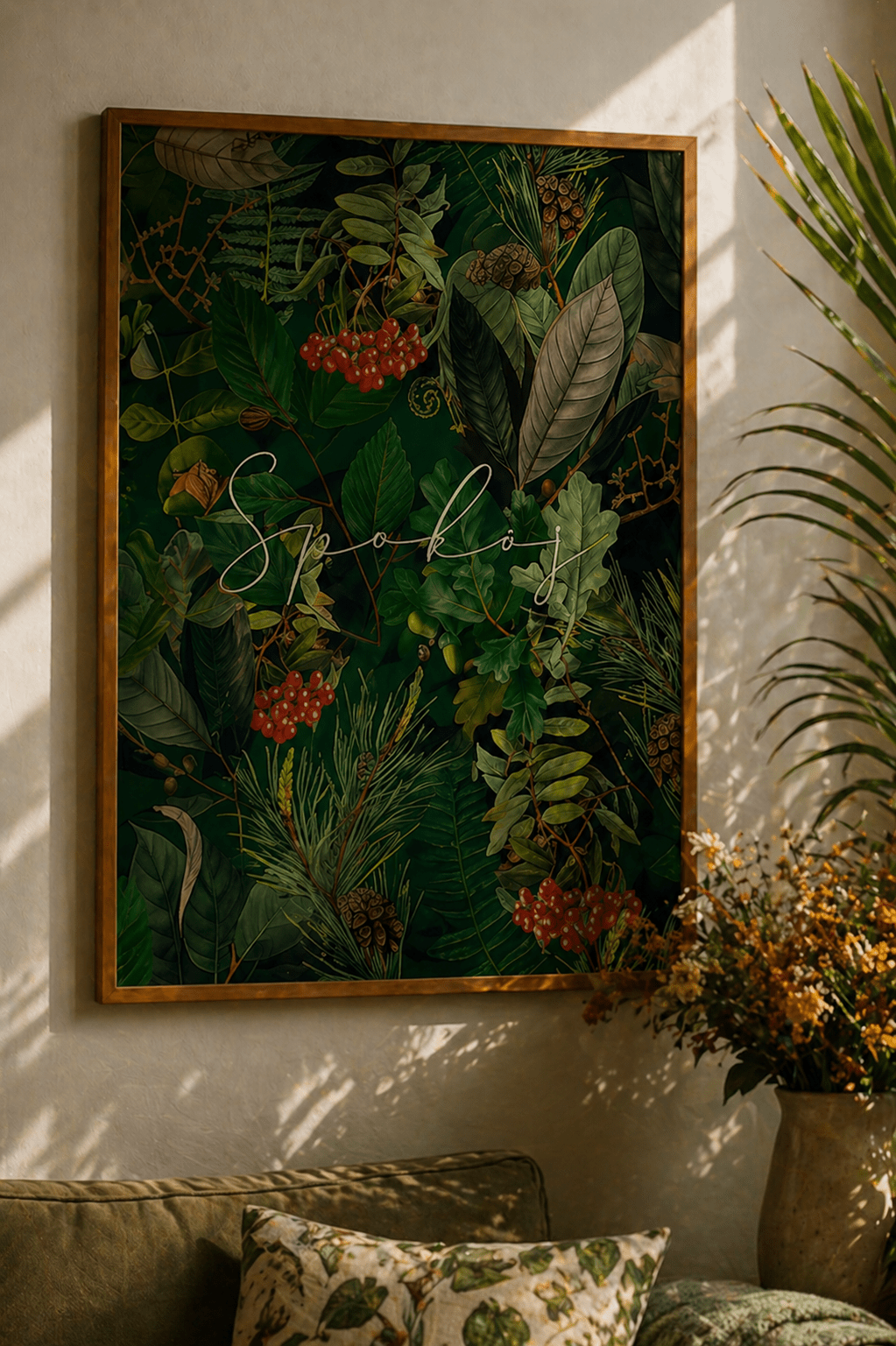 Wyjątkowy, autorski plakat „Las – Spokój” w formacie A2, zaprojektowany przez Jaśminę Parkitę.