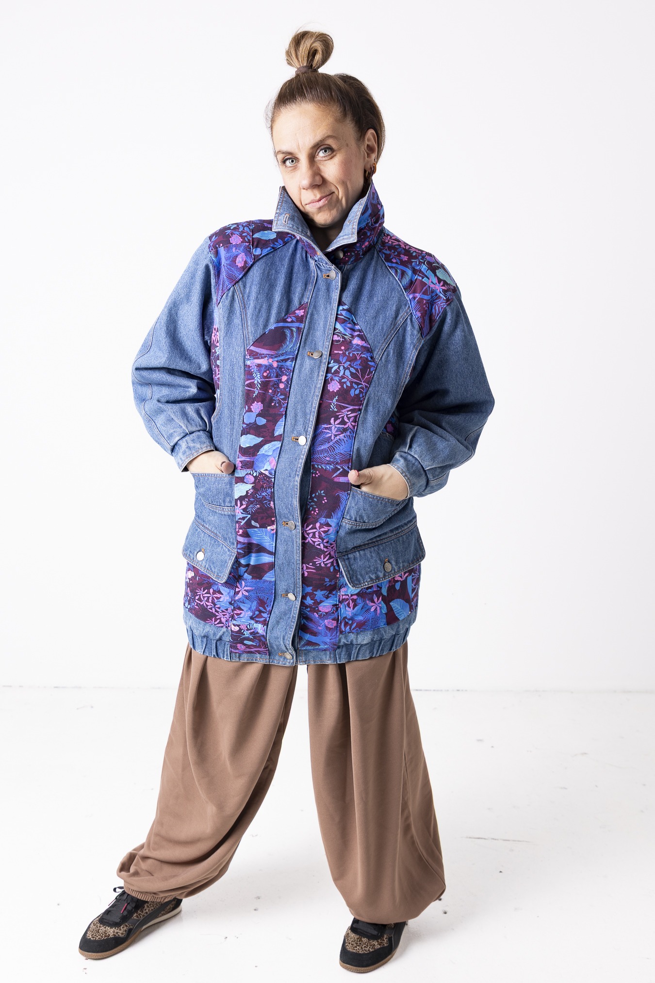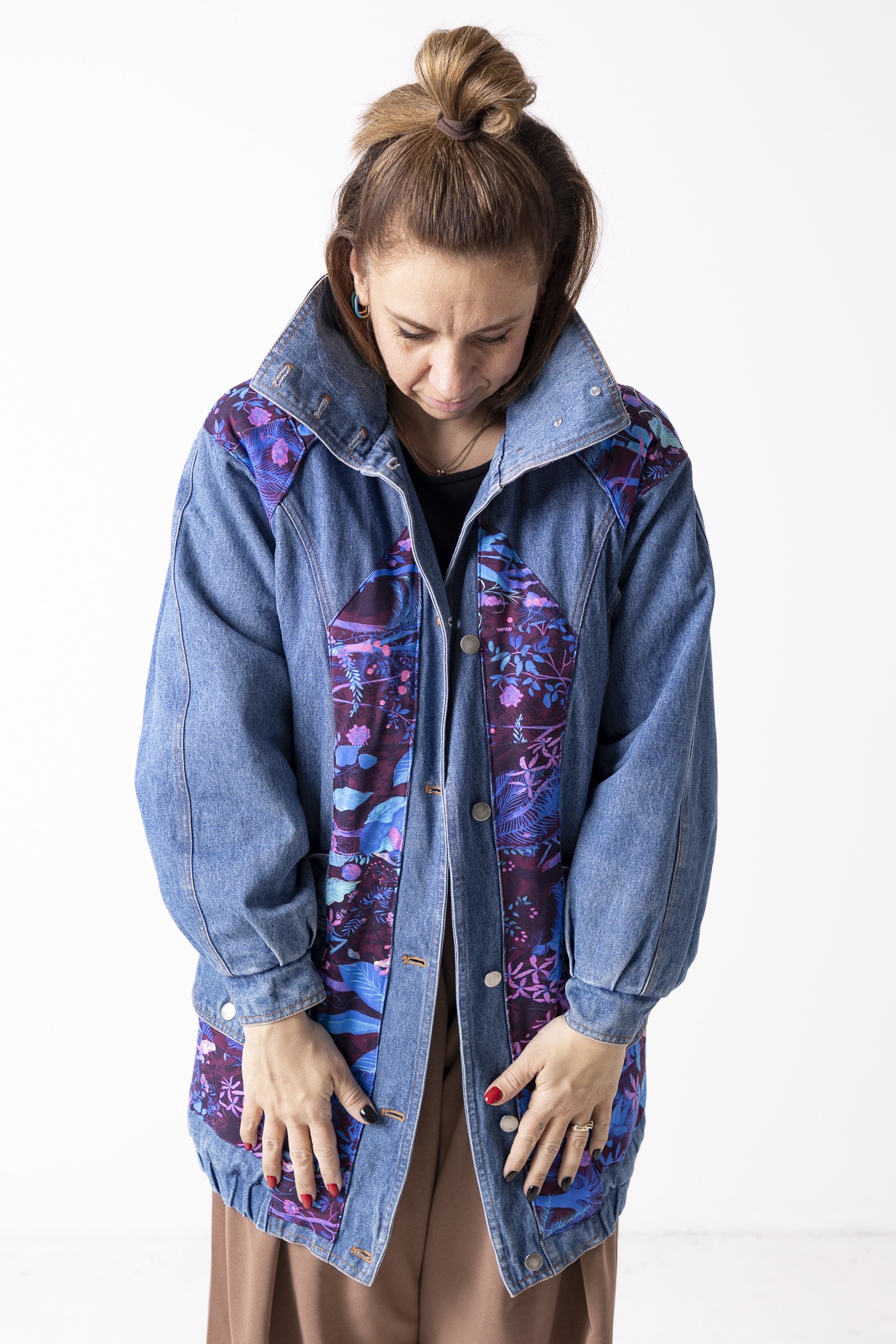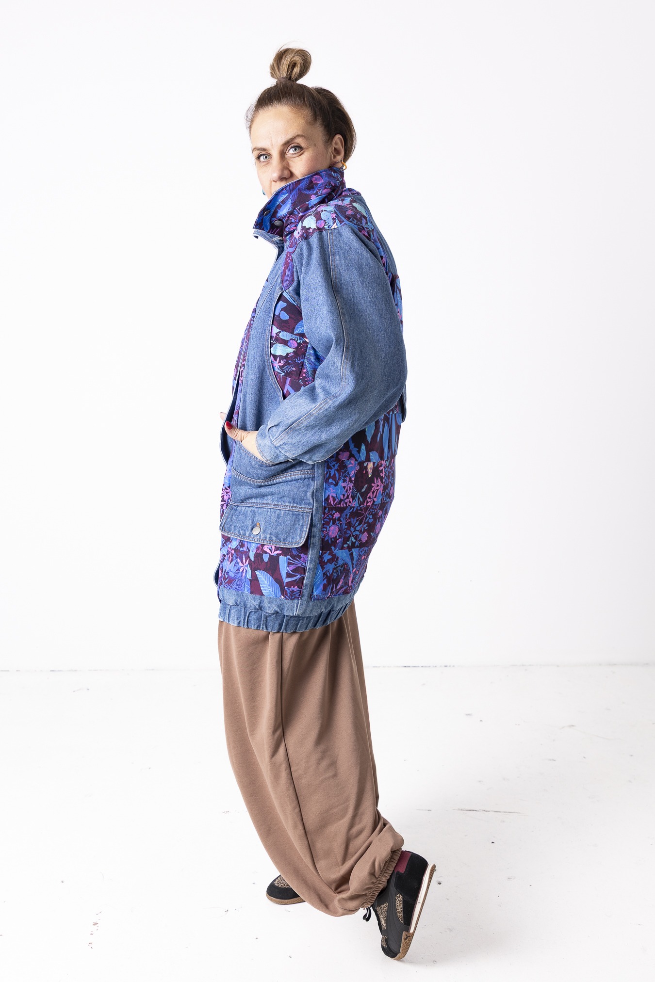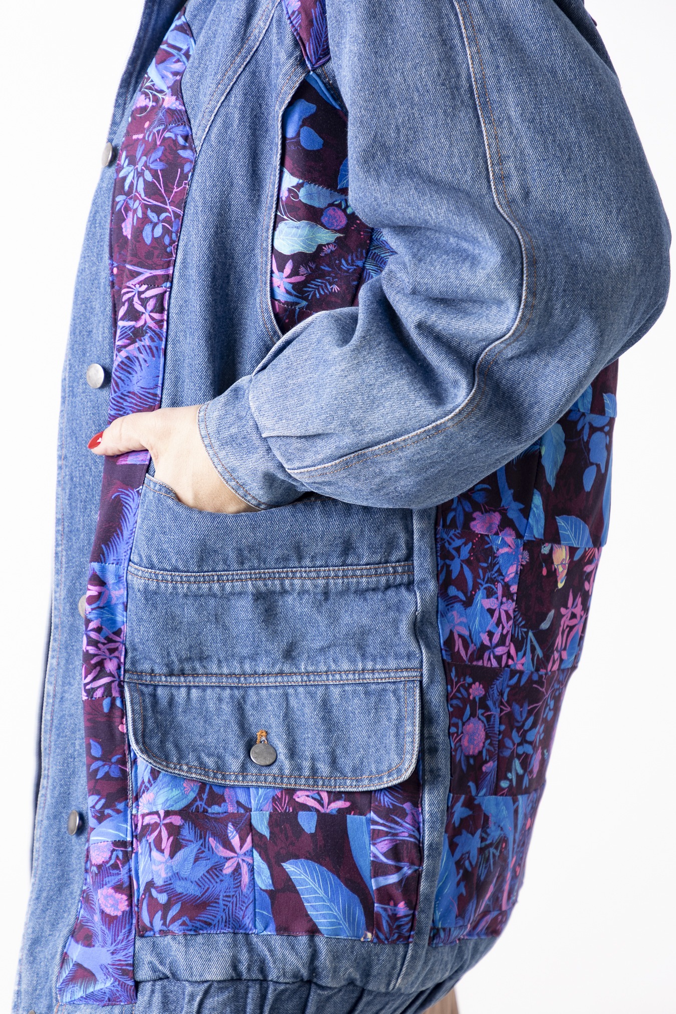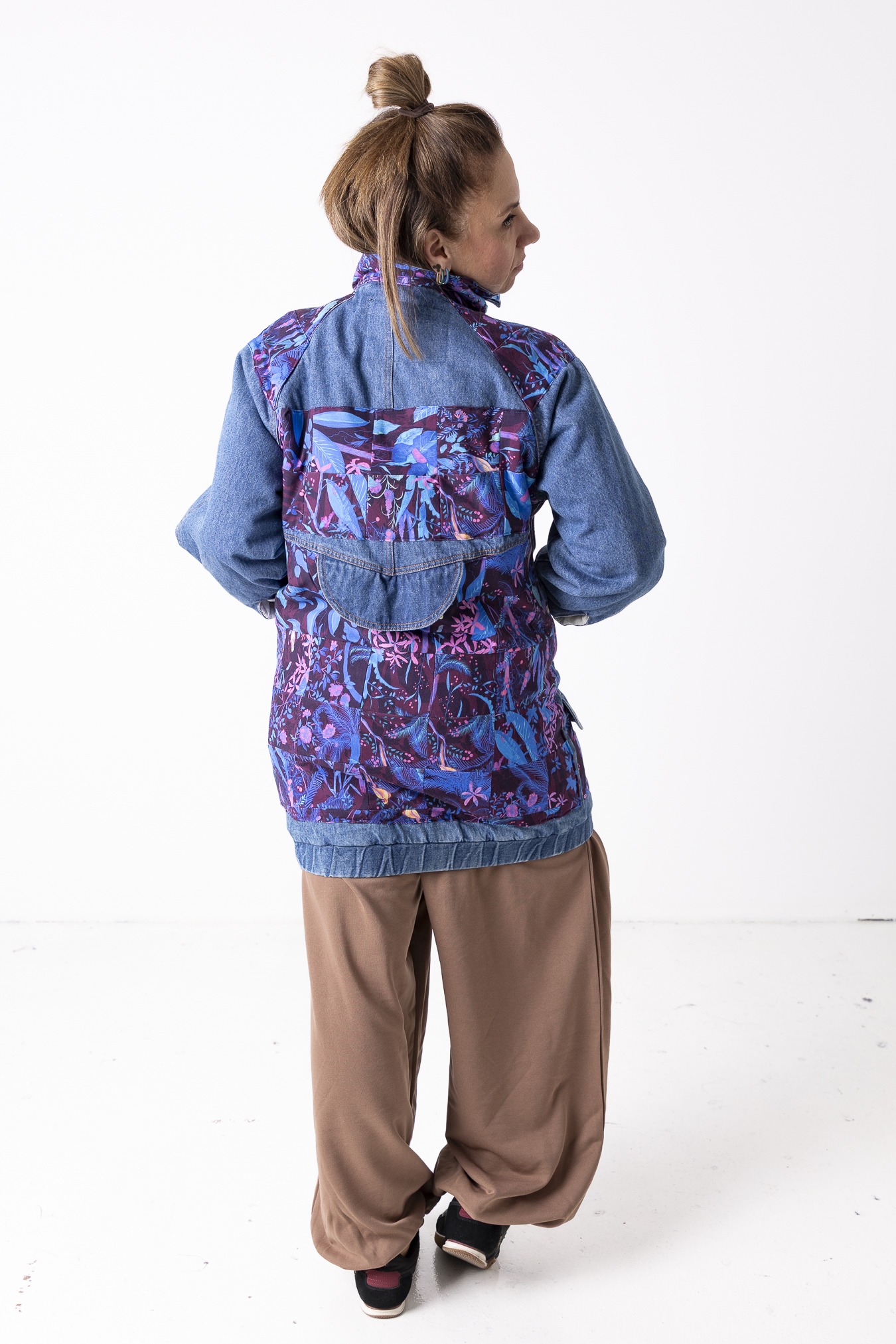 Kurtka Wachlarz powstała w naszej kolekcji upcyklingowej DDxUlka_ta_od_szycia — z materiałów, którym dajemy drugie życie. Łączymy w niej nasze tkaniny pozostałe po produkcji z wyselekcjonowanymi jeansami z drugiego obiegu, tworząc nową, wyrazistą formę. To projekt, w którym patchwork i różnorodność materiałów budują charakter kurtki.