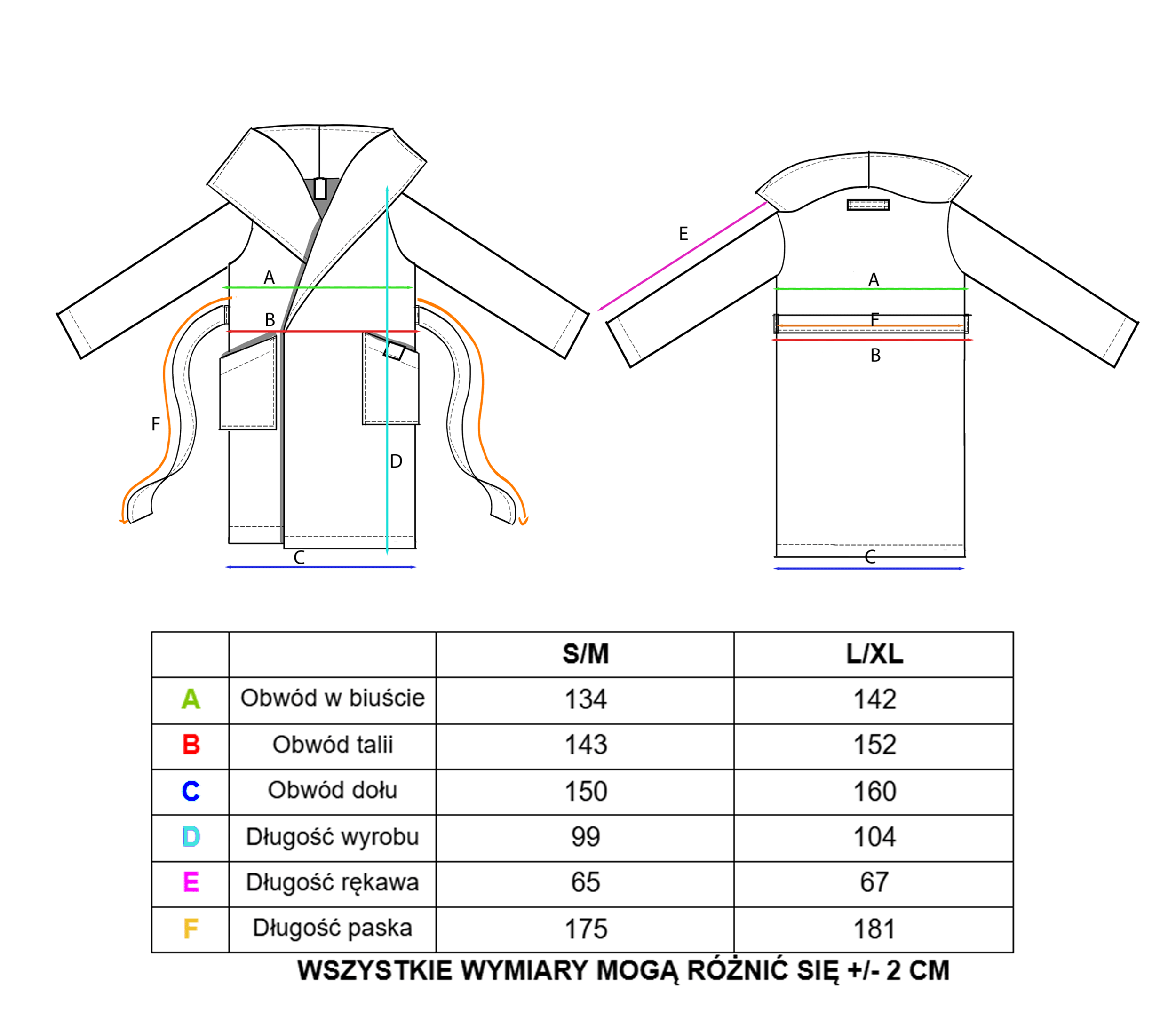 Do stworzenia tego płaszcza zastosowaliśmy wysokiej jakości dzianinę poliestrową o składzie: 95% poliester, 5% spandex i gramaturze 420g/m2.