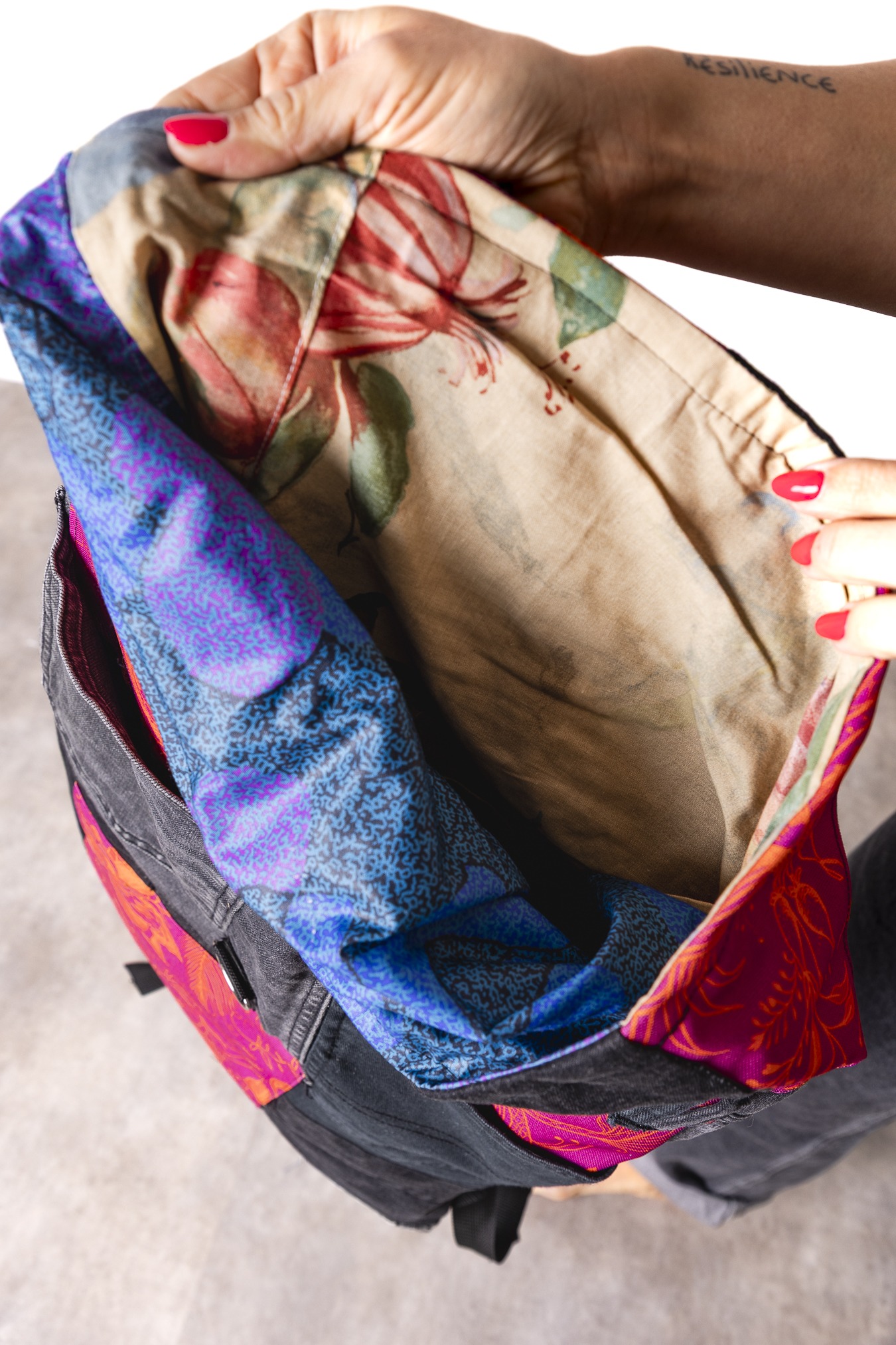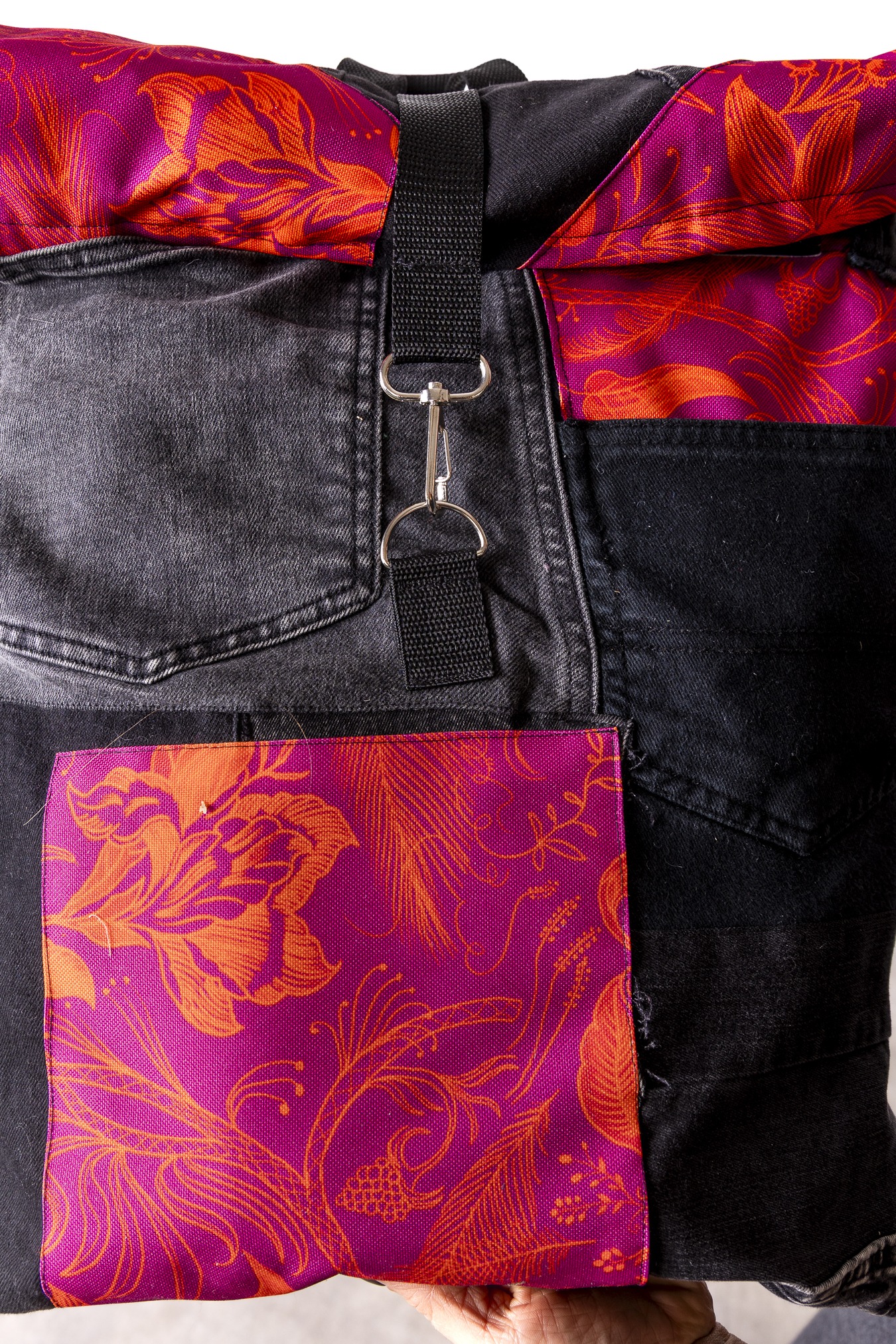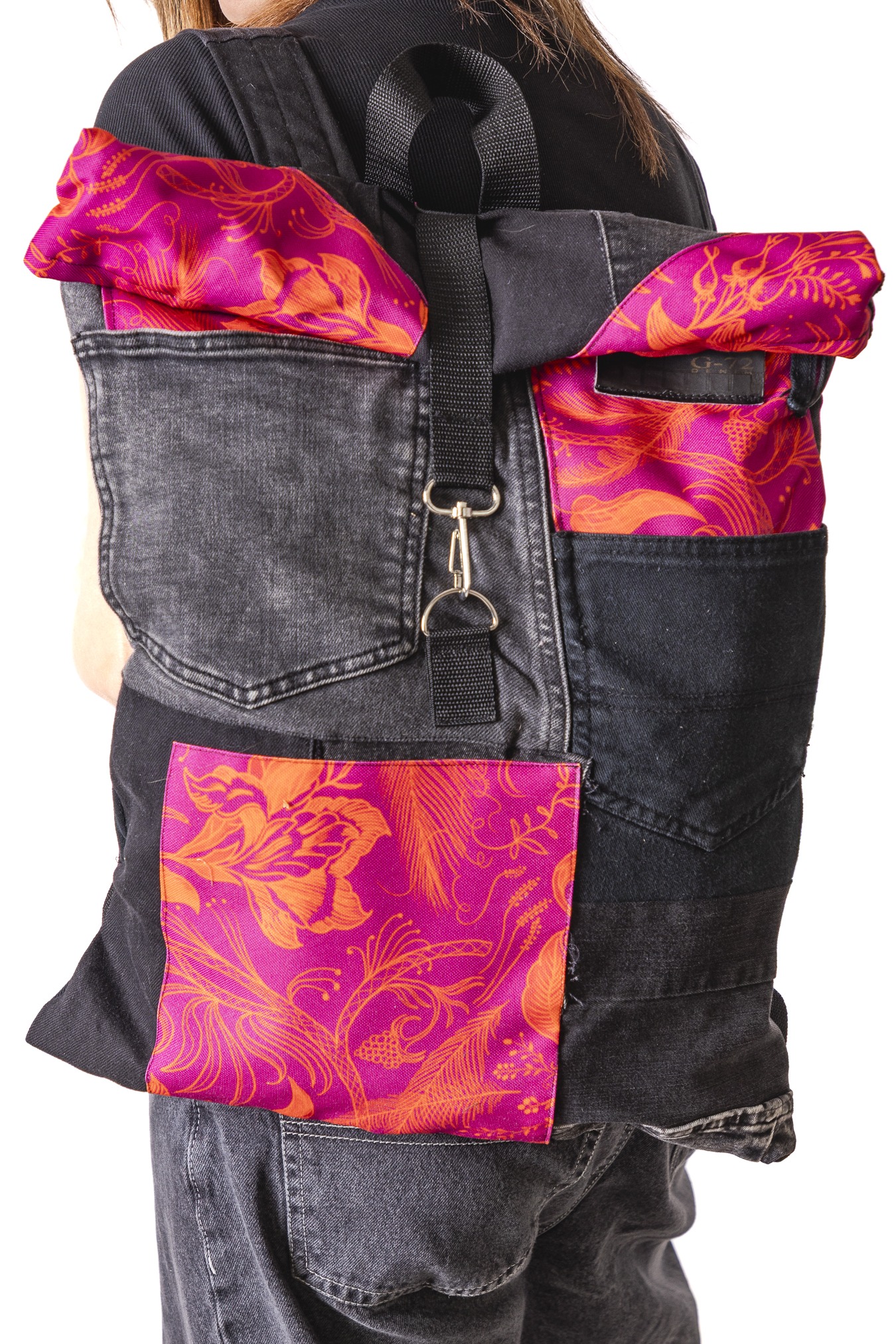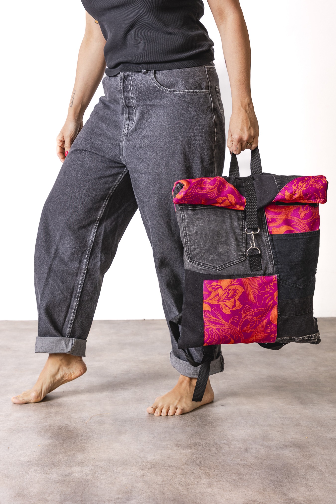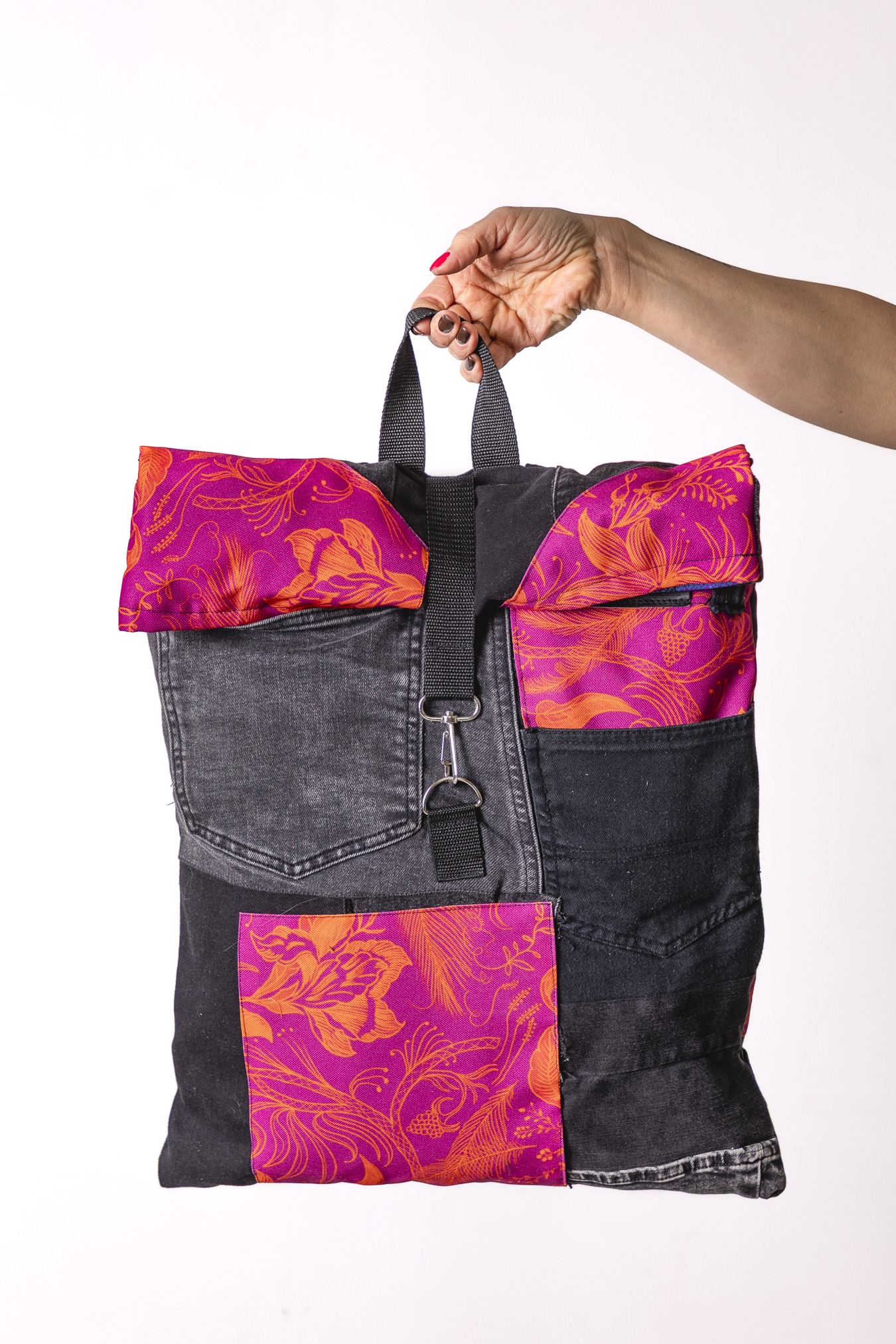 Zwijana góra pozwala regulować pojemność. Wzór Pink Power wnosi kolor, radość i ten dobrze znany vibe dzieńdobry: trochę luzu, trochę odwagi, dużo osobowości. Plecak szyty z wyselekcjonowanych jeansów z drugiego obiegu i kolorowych materiałów— każdy egzemplarz jest unikatowy. Solidny, pojemny i wygodny, idealny na co dzień i w podróży- worko-plecak.