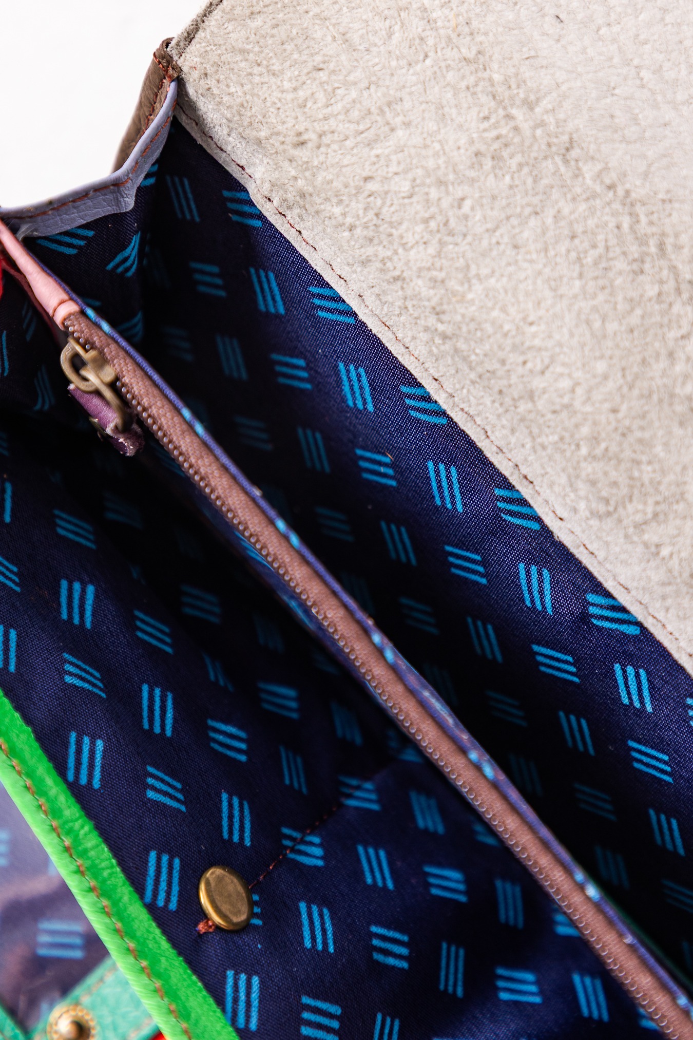 Każdy egzemplarz robiony ręcznie ze skrawków skóry recyklingowanej, co sprawia, że jest nie tylko wyjątkowy, ale też bardziej odpowiedzialny. To torebka, która ma swoją historię — i daje materiałom drugie życie.