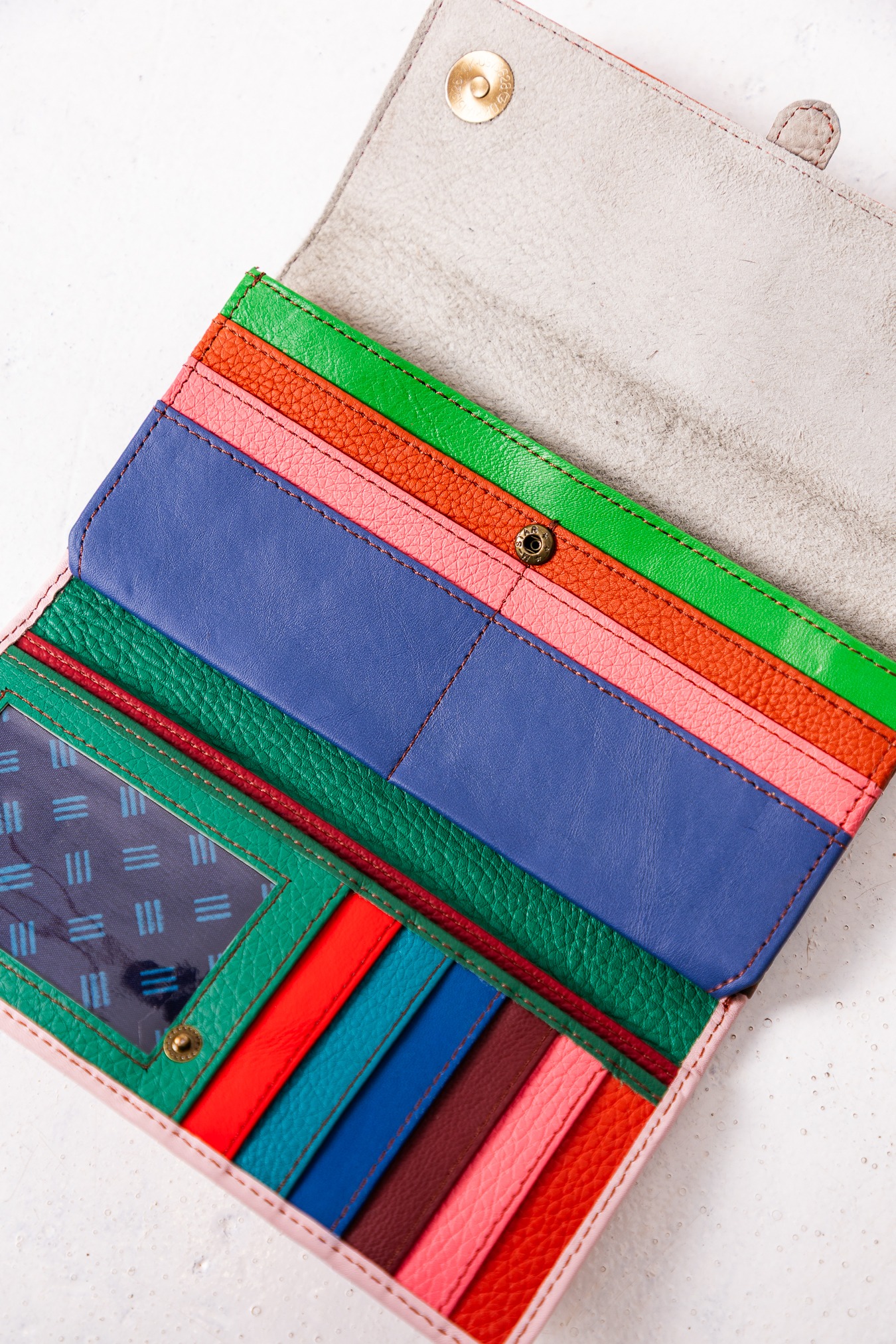 Wnętrze zostało zaprojektowane z myślą o wygodzie – znajdziesz w nim przegródki na karty, kieszenie na banknoty oraz miejsce na drobne monety, dzięki czemu wszystko jest uporządkowane i łatwo dostępne. Świetnie prezentuje się zarówno w torebce, jak i noszony samodzielnie.