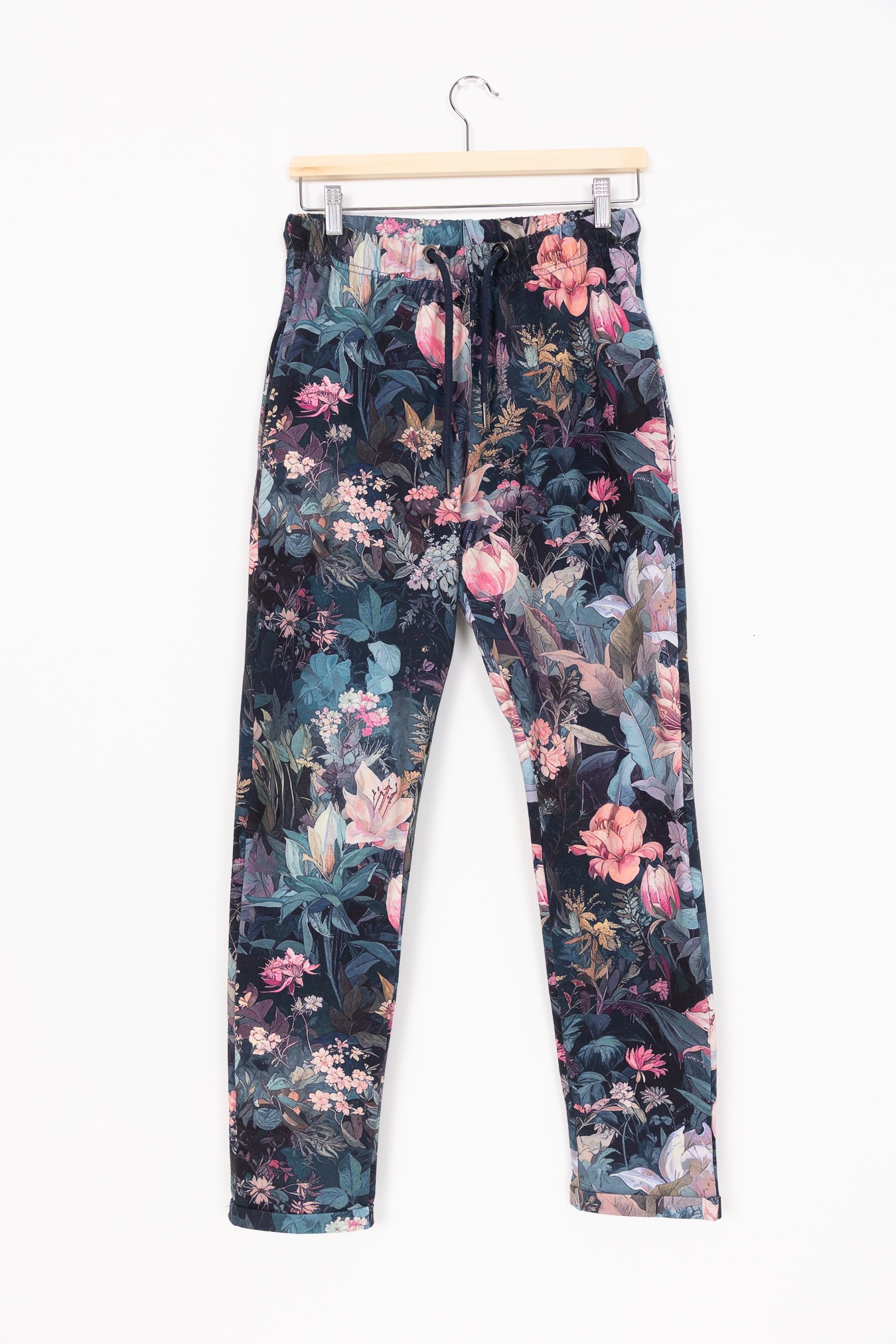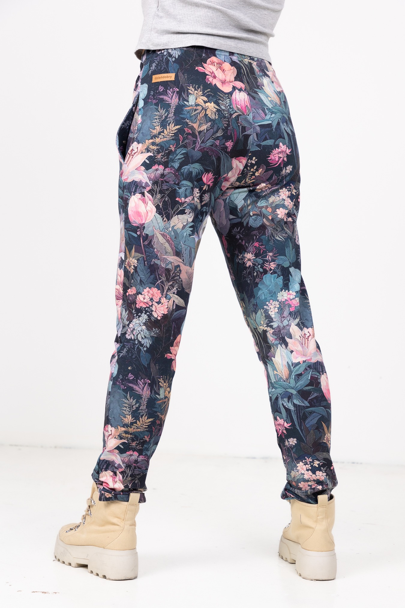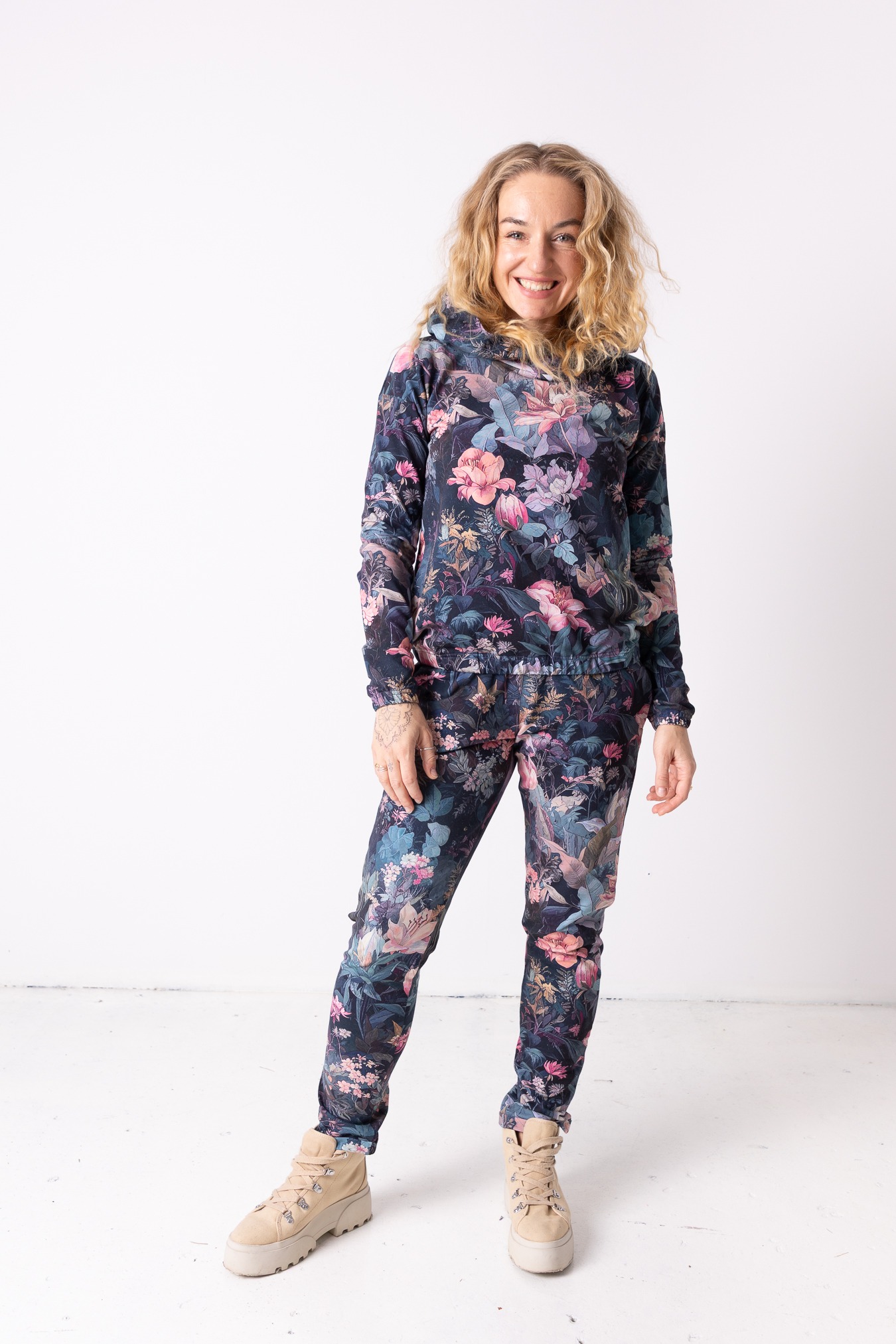 Spodnie we wzór Rusałka to wygoda, która spotyka się z lekkością i charakterem. Subtelny, płynący wzór inspirowany naturą nadaje im wyjątkowego klimatu — trochę spokojnego, trochę magicznego. Uszyte z miękkiej dresówki z pętelką (bawełna + 5% elastan), są przyjemne dla skóry i zapewniają swobodę ruchu przez cały dzień. Wysoki stan i możliwość wiązania w talii pozwalają podkreślić sylwetkę dokładnie tak, jak lubisz, a elastyczny pas z gumką i regulowanym sznurkiem daje idealne dopasowanie.