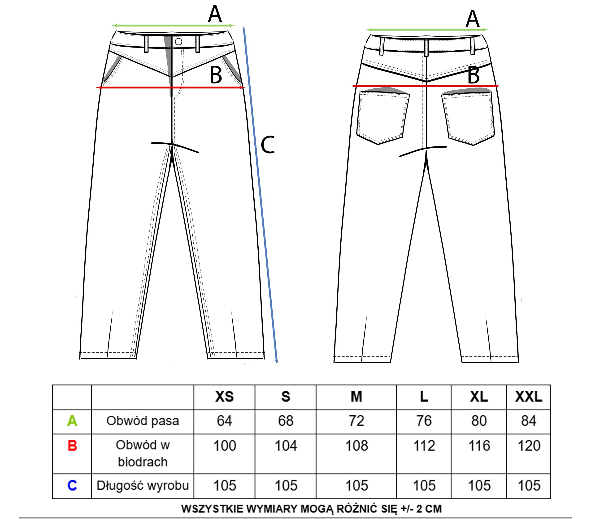 *Wszystkie wymiary mierzymy na płasko, a pas – w spodniach złożonych na pół, żebyś mogła łatwiej dobrać idealny rozmiar. Modelka prezentuje rozmiar M.