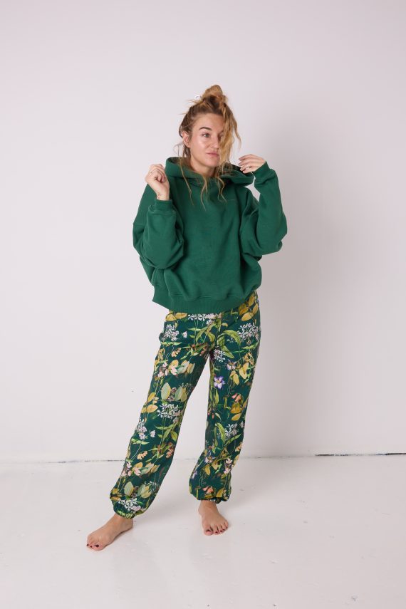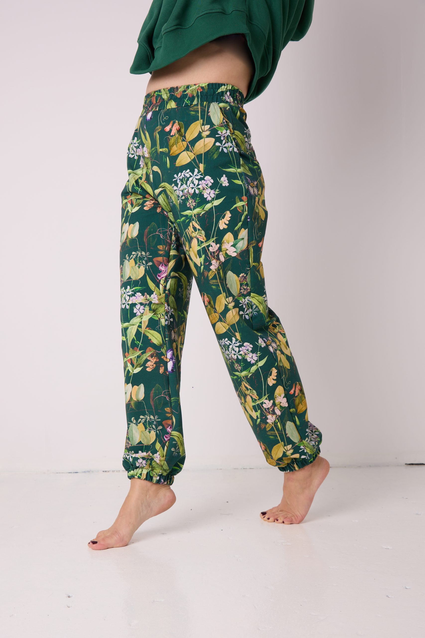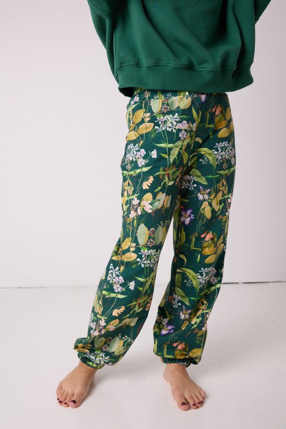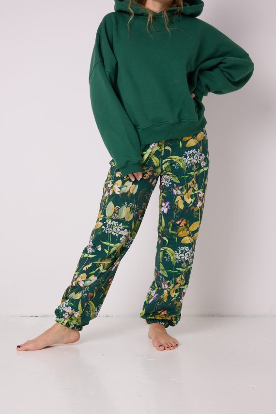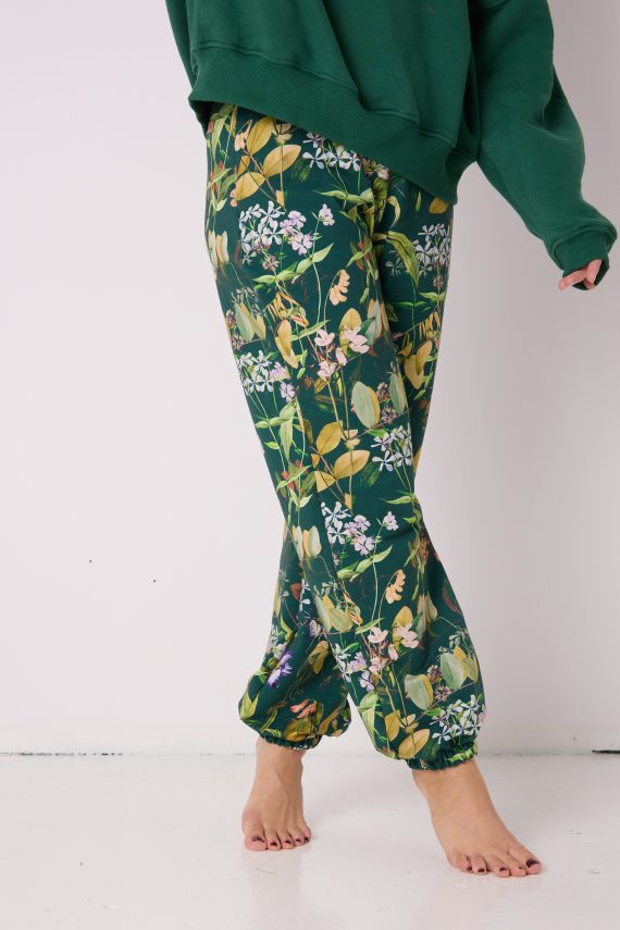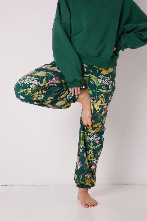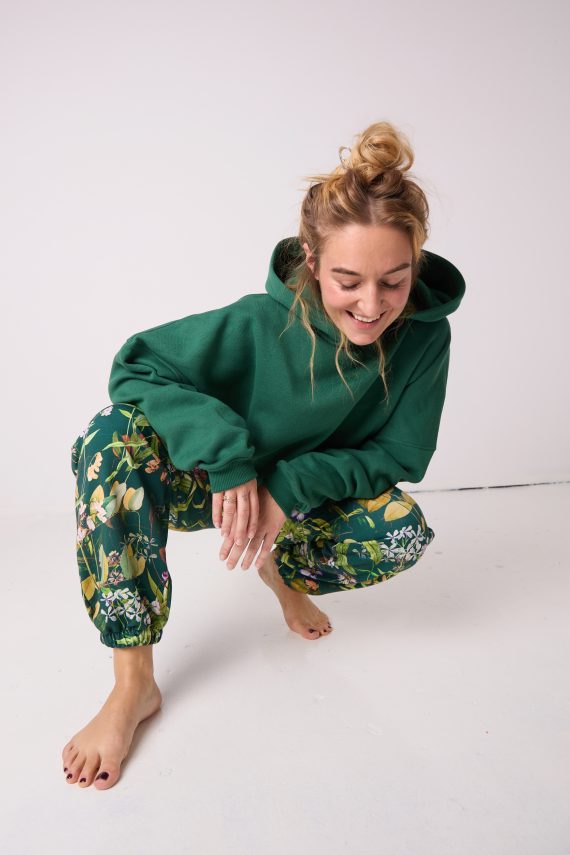 Szmaragd to wzór spokoju i mocy jednocześnie — jak zanurzenie w chłodnym, leśnym powietrzu, które uspokaja głowę, a jednocześnie napełnia energią do działania. To spodnie stworzone do codzienności: do pracy z kanapy, na szybki wypad po kawę albo długi spacer z ulubioną playlistą w słuchawkach. Ściągacz przy kostkach nadaje im zgrabnej formy, a elastyczna talia sprawia, że zostają tam, gdzie trzeba — bez poprawiania, zsuwania i nerwowego podciągania co chwilę.