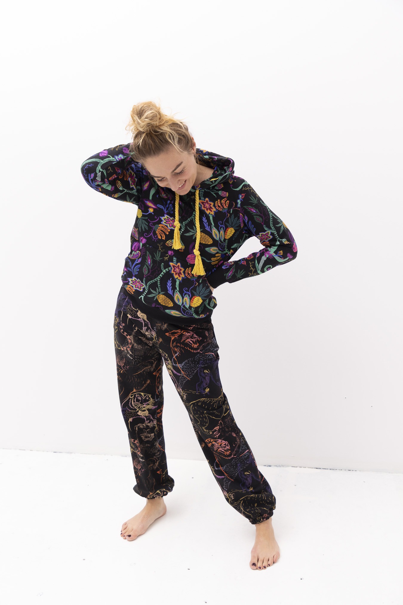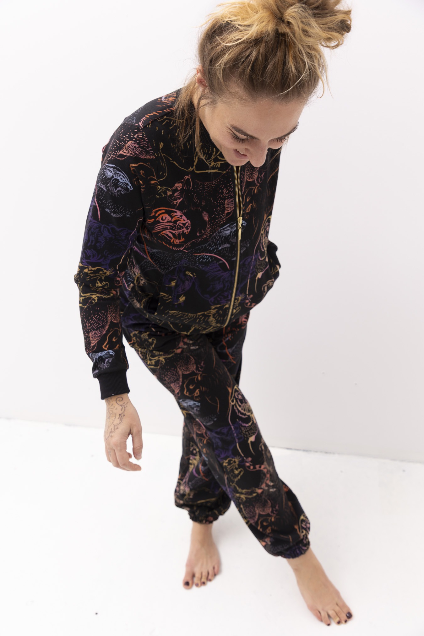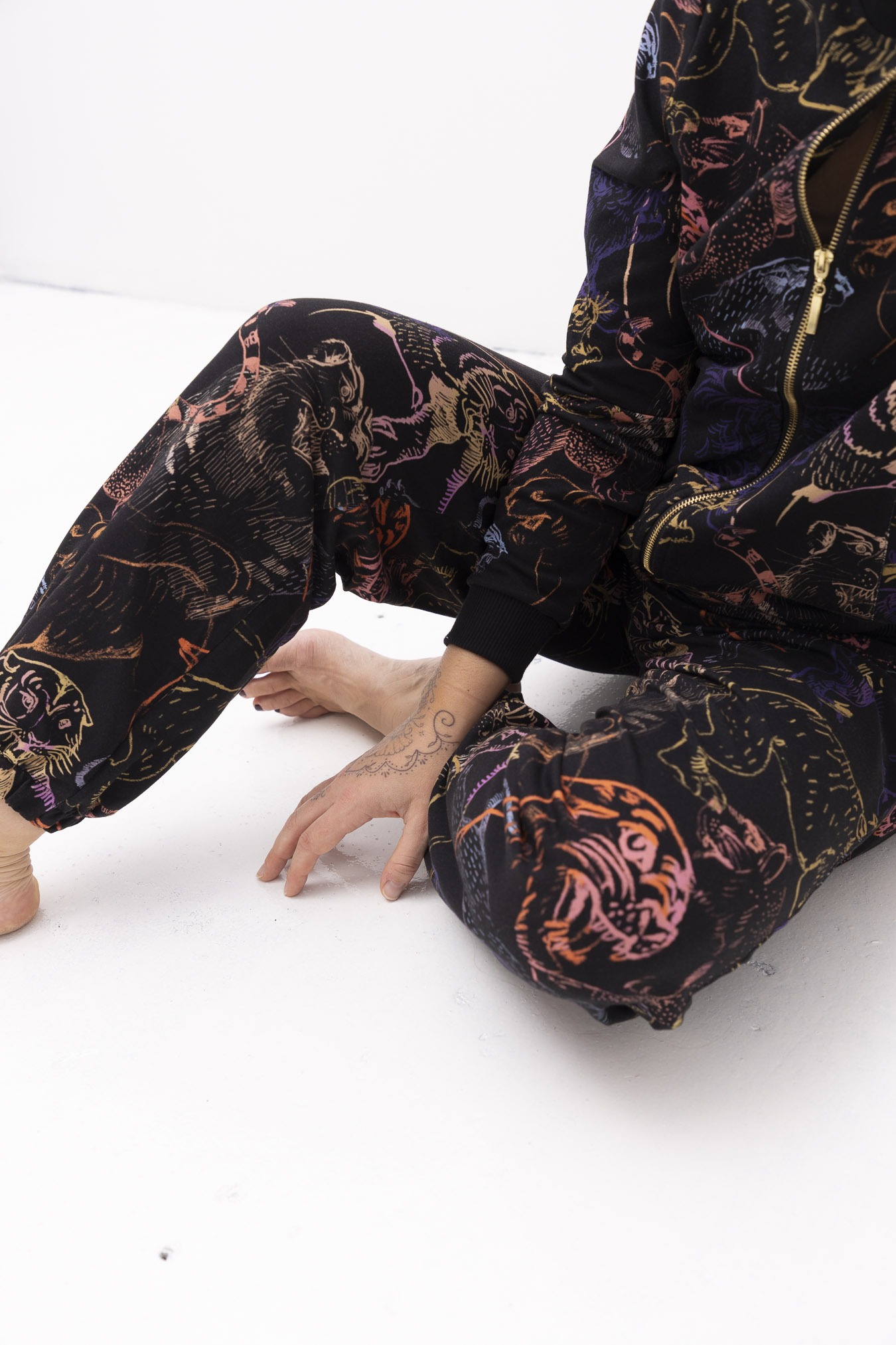 To połączenie wygody i charakteru – stworzone do tego, by czuć się w nich swobodnie, a przy okazji wyróżniać się oryginalnym wzorem. Miękka dzianina otuli Cię komfortem, a detale takie jak elastyczny pas i ściągacze przy kostkach sprawiają, że spodnie świetnie się układają i nie tracą formy. Spodnie dopasowują się do sylwetki i zostają tam, gdzie trzeba — bez poprawiania czy ciągłego podciągania.