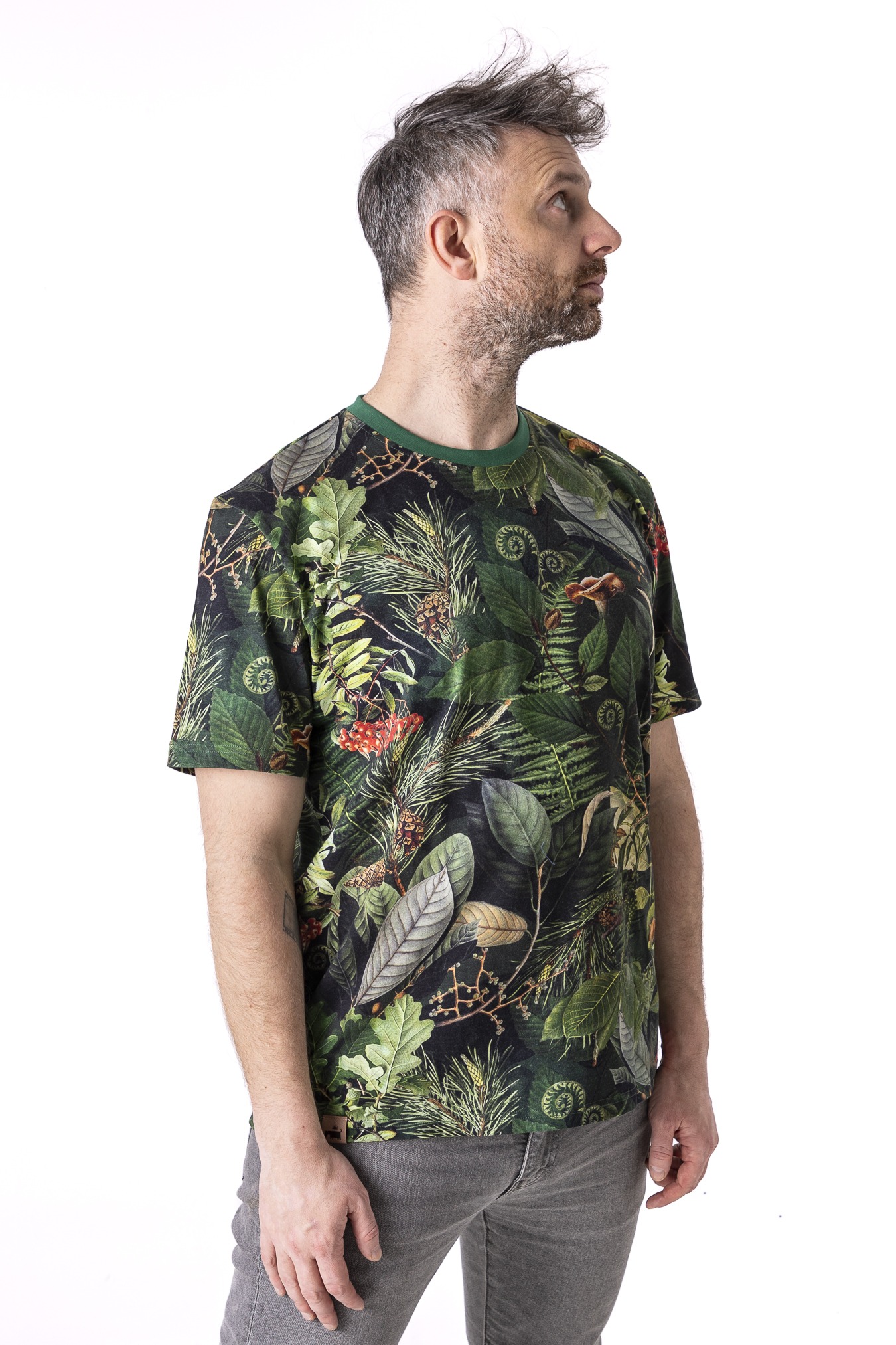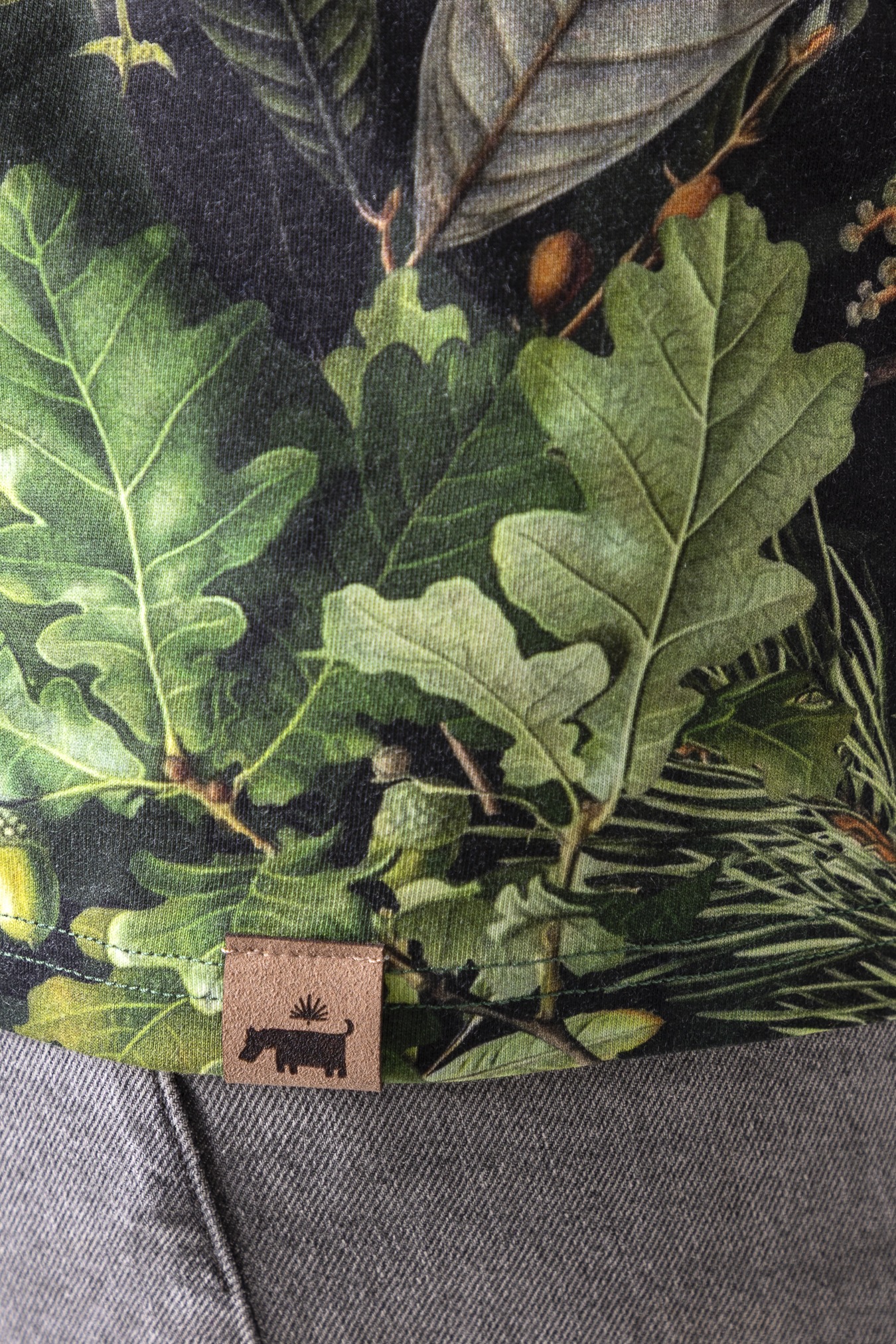 Czasami potrzebujesz oddechu, chwili dla siebie – nawet jeśli jesteś w samym środku miasta. Wzór Las to właśnie to – zaproszenie do zwolnienia, przypomnienie, że natura jest bliżej niż myślisz. Bawełniana koszulka ze ściągaczem, który subtelnie podkreśla sylwetkę i sprawia, że wszystko trzyma się razem. Możesz ją nosić do pracy, na spotkanie ze znajomymi, na wieczorny spacer. Łatwo wpasuje się w różne style: na sportowo – ze spodniami dresowymi lub joggerami i sneakersami. Bardziej w stylu casual – z jeansami i kurtką bomberką. A może warstwowo na wiosnę – pod rozpiętą bluzę, sweter lub kurtkę jeansową.