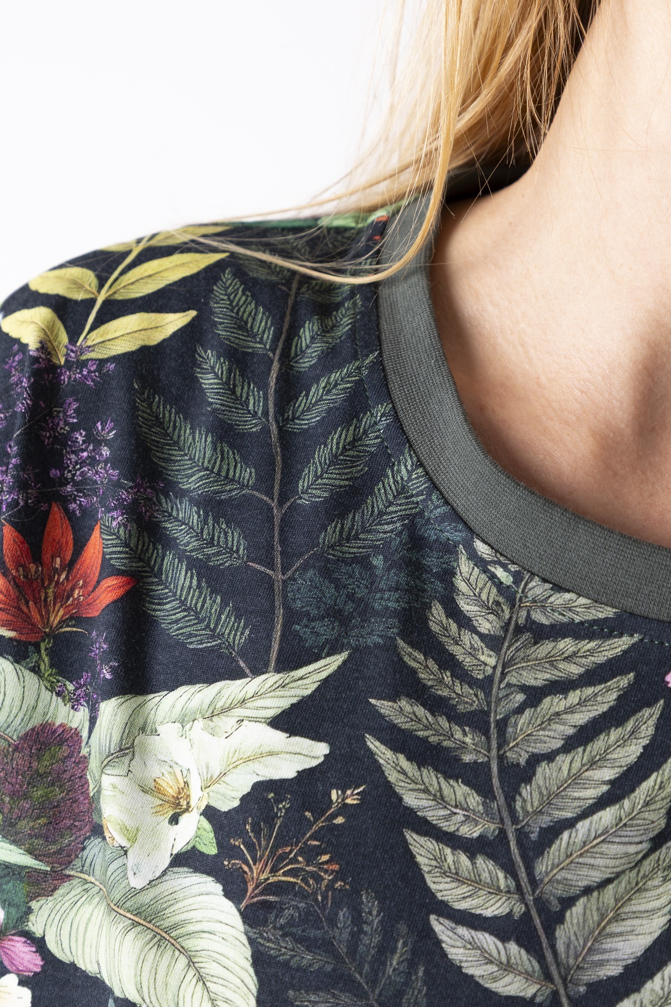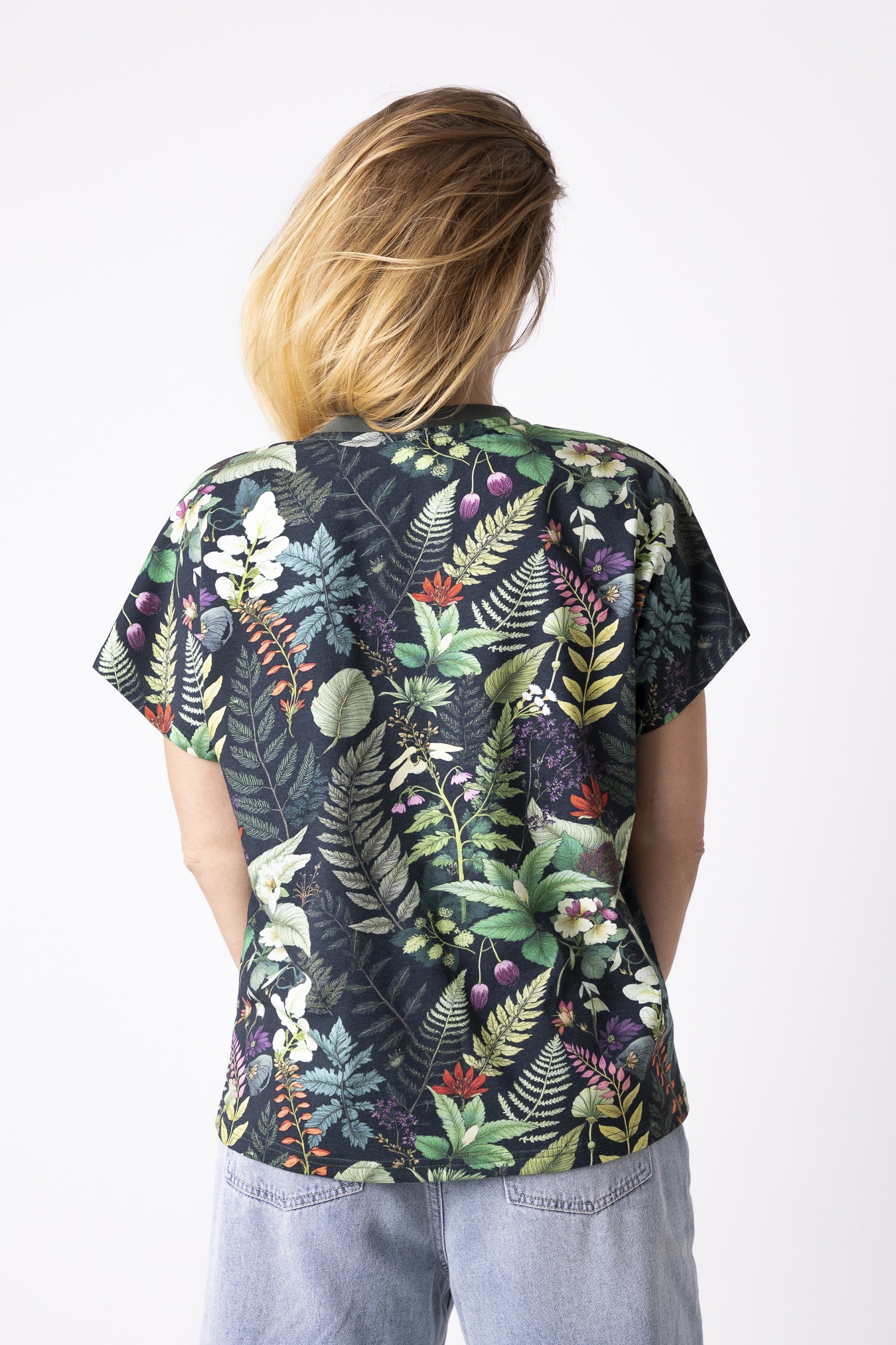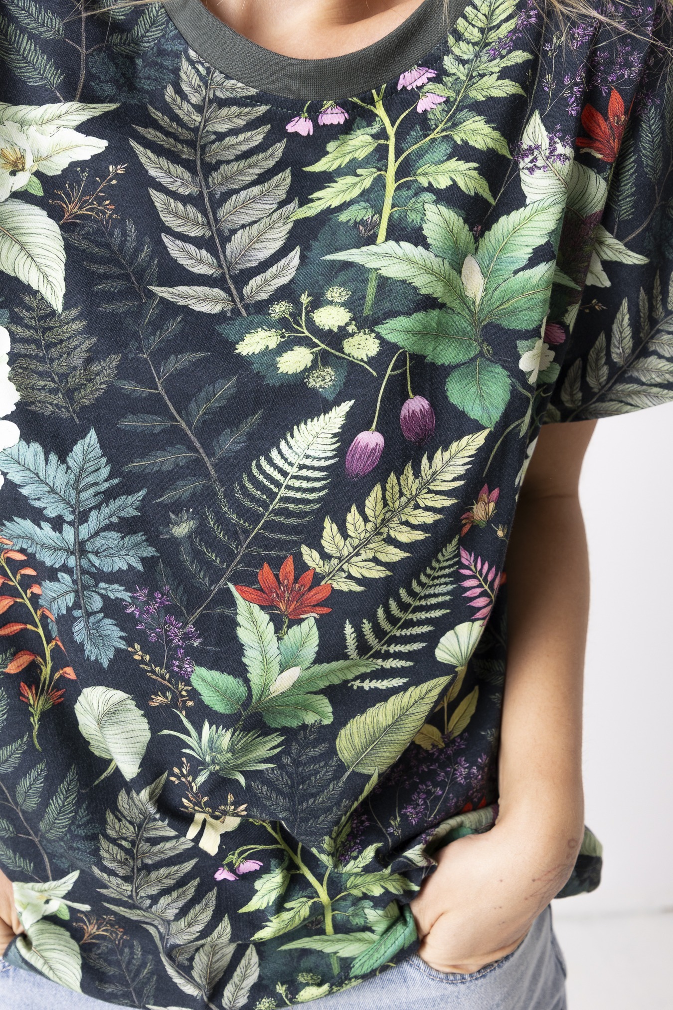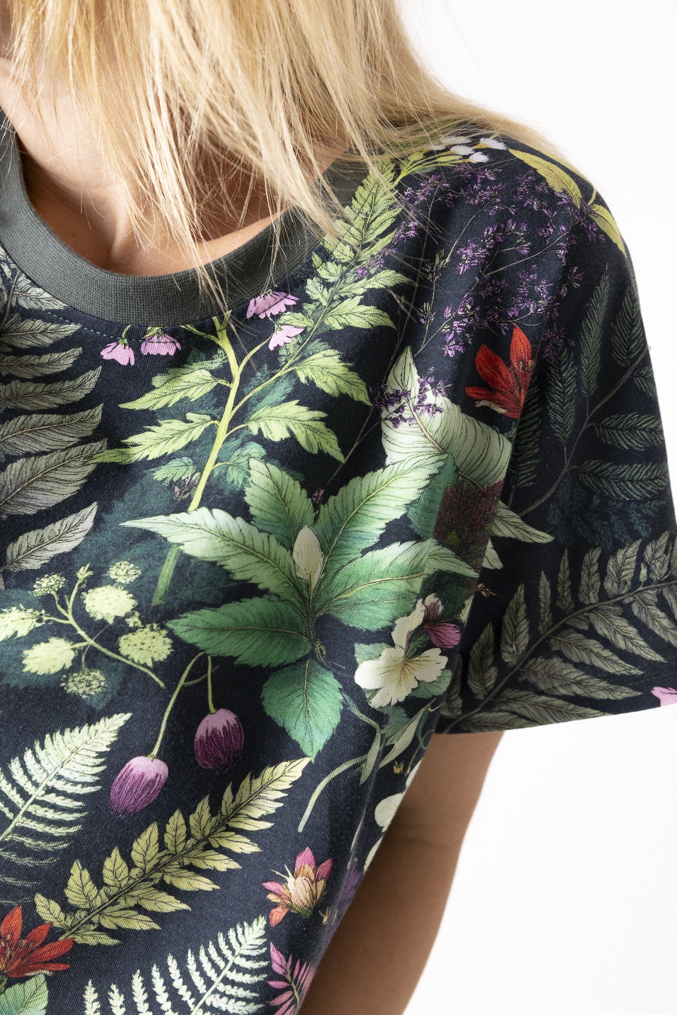 Bawełniany T-shirt pudełkowy Kwiat Paproci