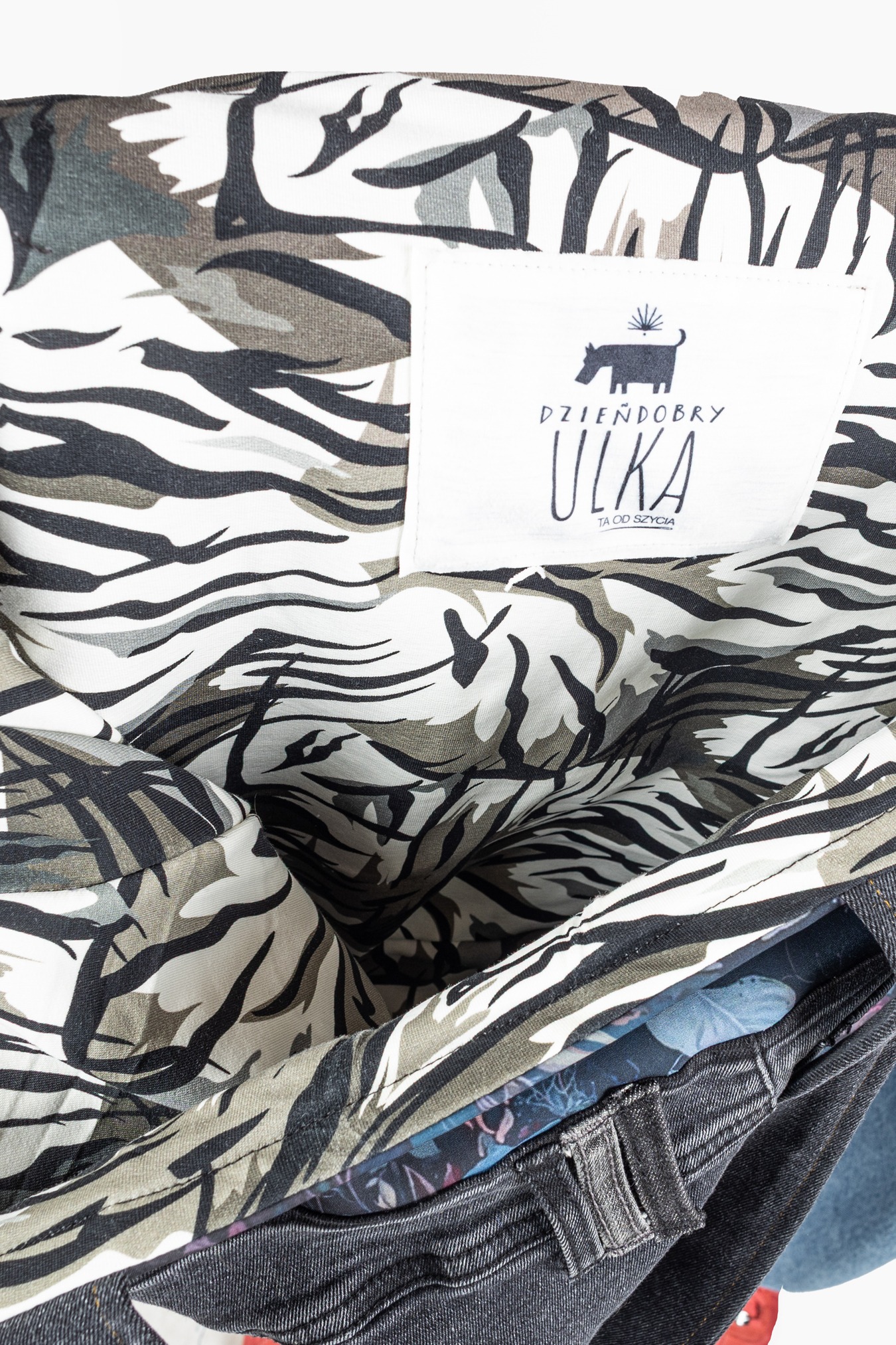Oto torba-koszyk z naszej kolekcji upcyklingowej. Powstała z materiałów, którym dajemy drugie życie — łączymy nasze produkcyjne tkaniny z wyselekcjonowanymi jeansami z drugiego obiegu. Każdy egzemplarz różni się detalami i układem wstawek — dlatego każda torba jest jedyna w swoim rodzaju.