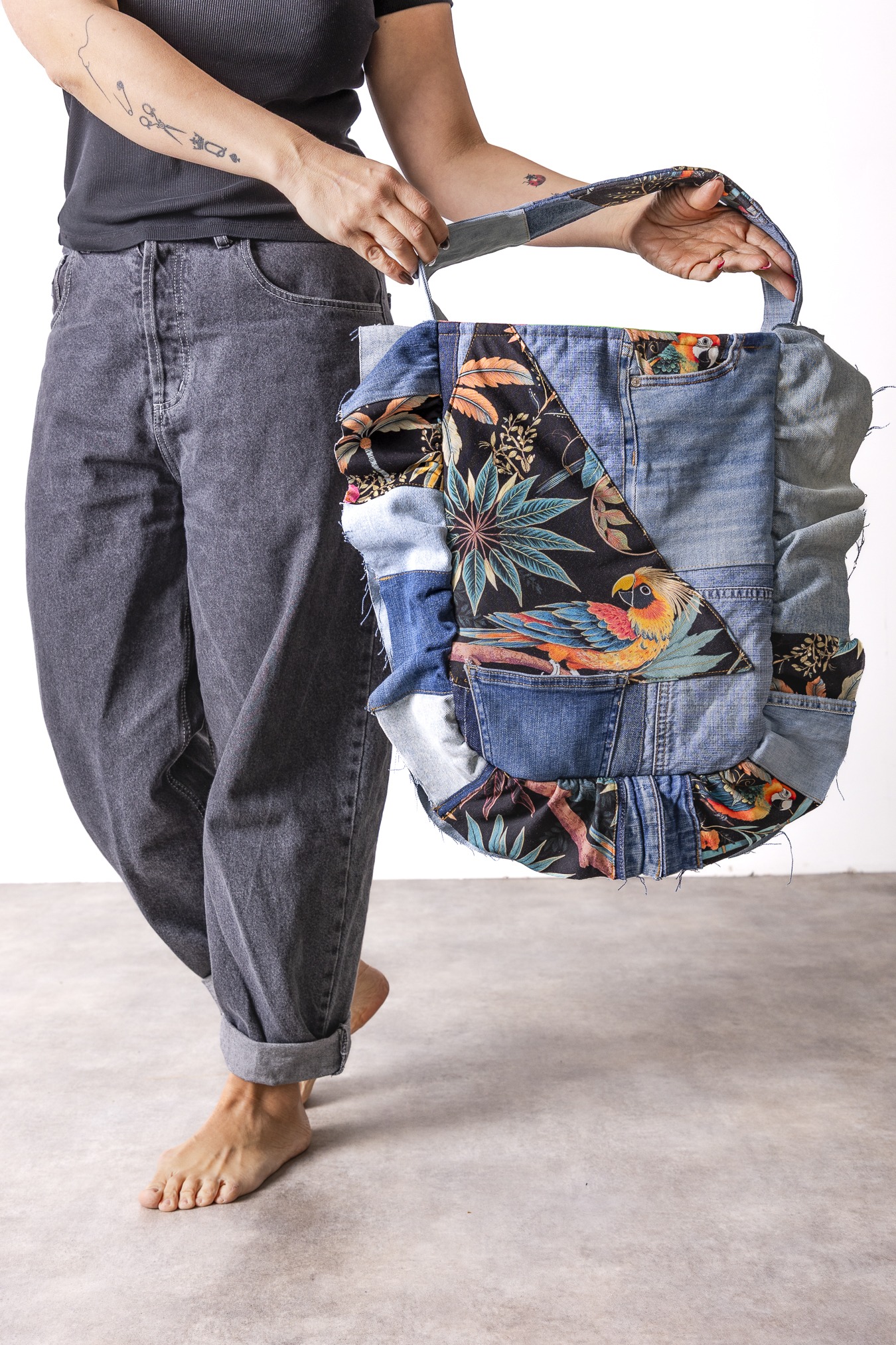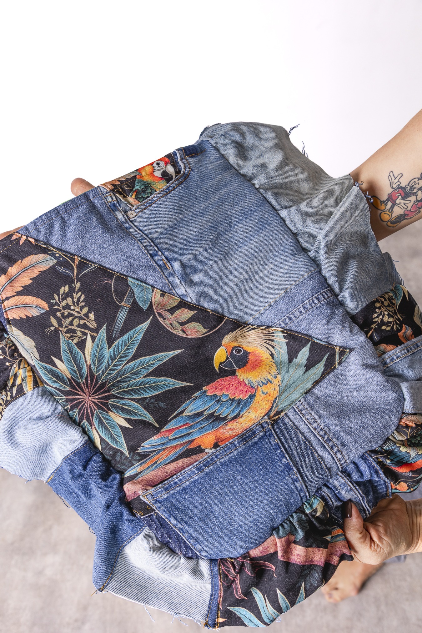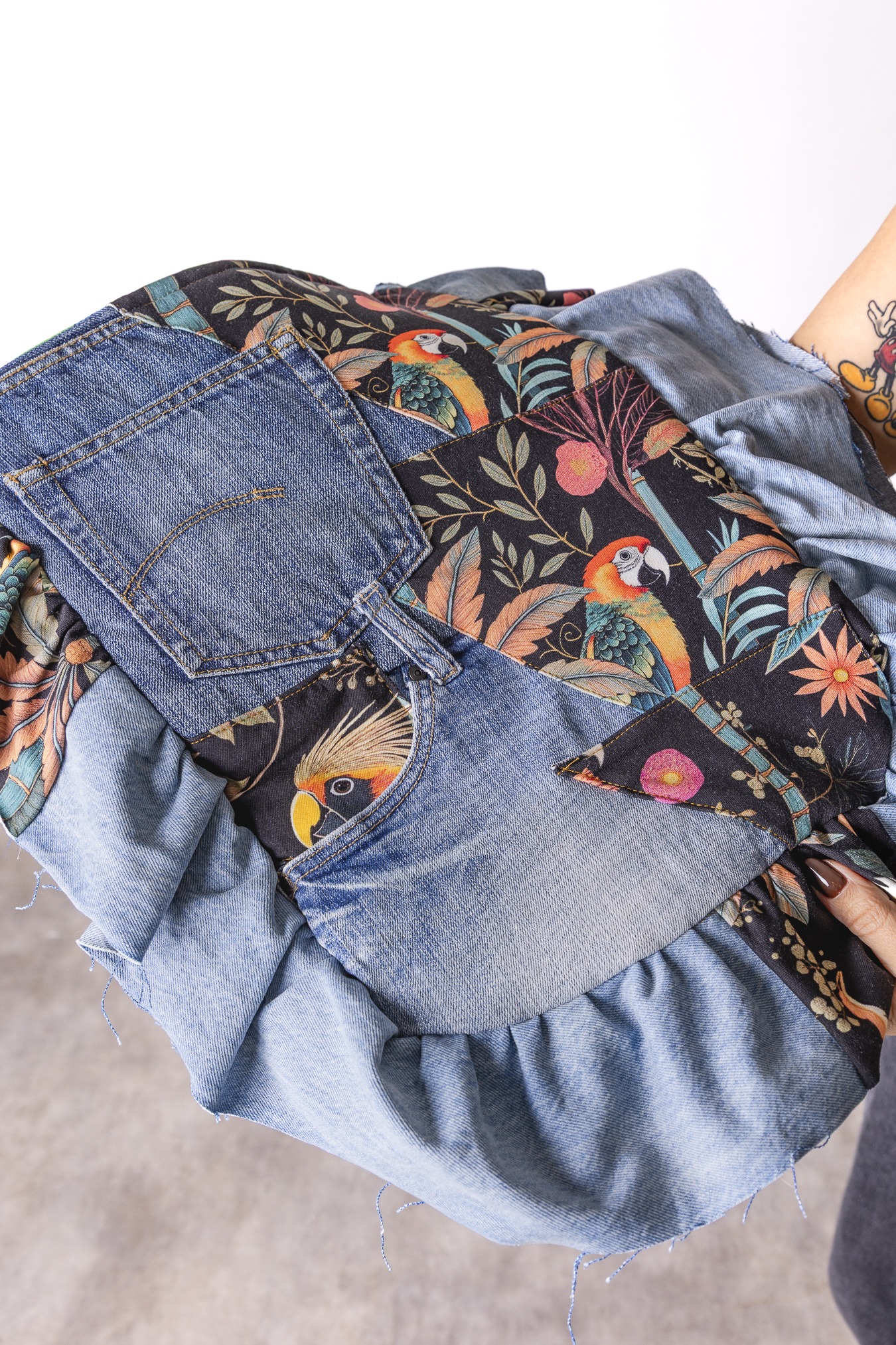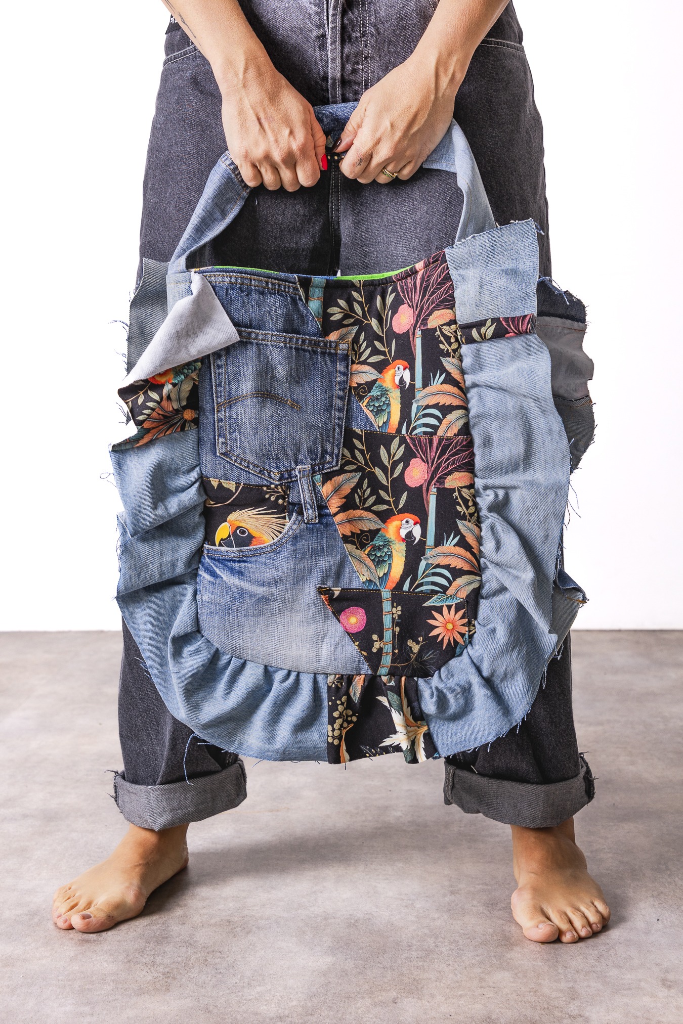 Torba z falbanami Papugi Mexico to czysta radość noszenia – trochę retro, trochę fiesta. Uszyta z upcyklingowego jeansu i elementów wzoru Papugi Mexico, łączy w sobie luz, kolor i energię, obok których nie da się przejść obojętnie. Każdy egzemplarz jest unikatowy. To torba dla tych, którzy lubią, gdy dodatek mówi coś więcej: o wolności, kolorach i o tym, że moda może mieć dystans i dobrą energię