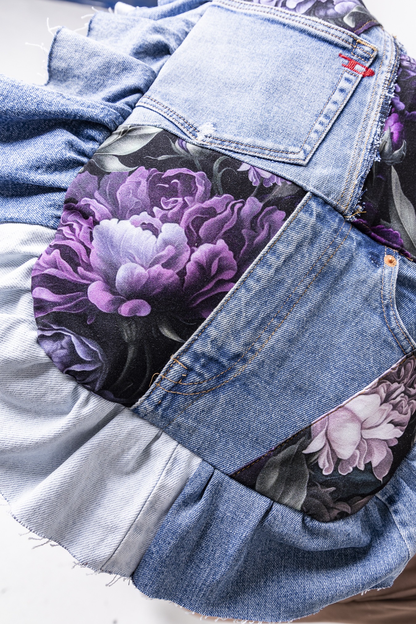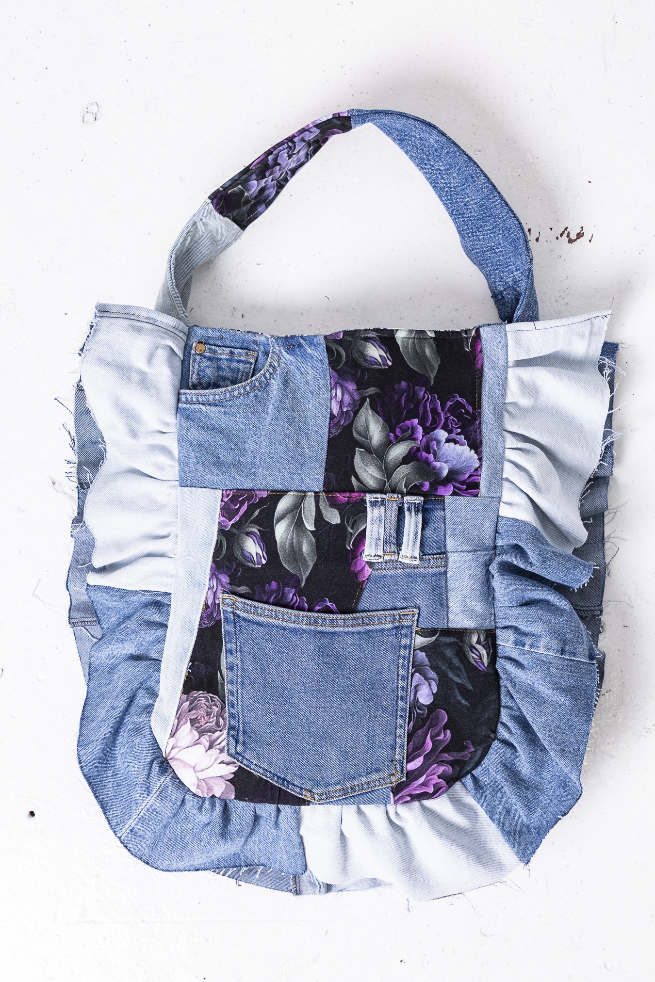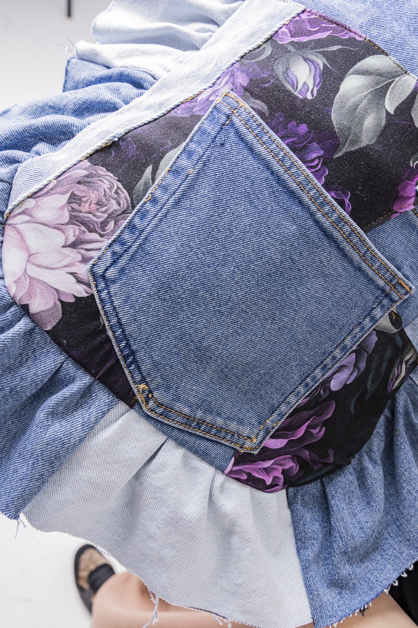 Materiały z drugiego obiegu: jeans i kolorowe materiały