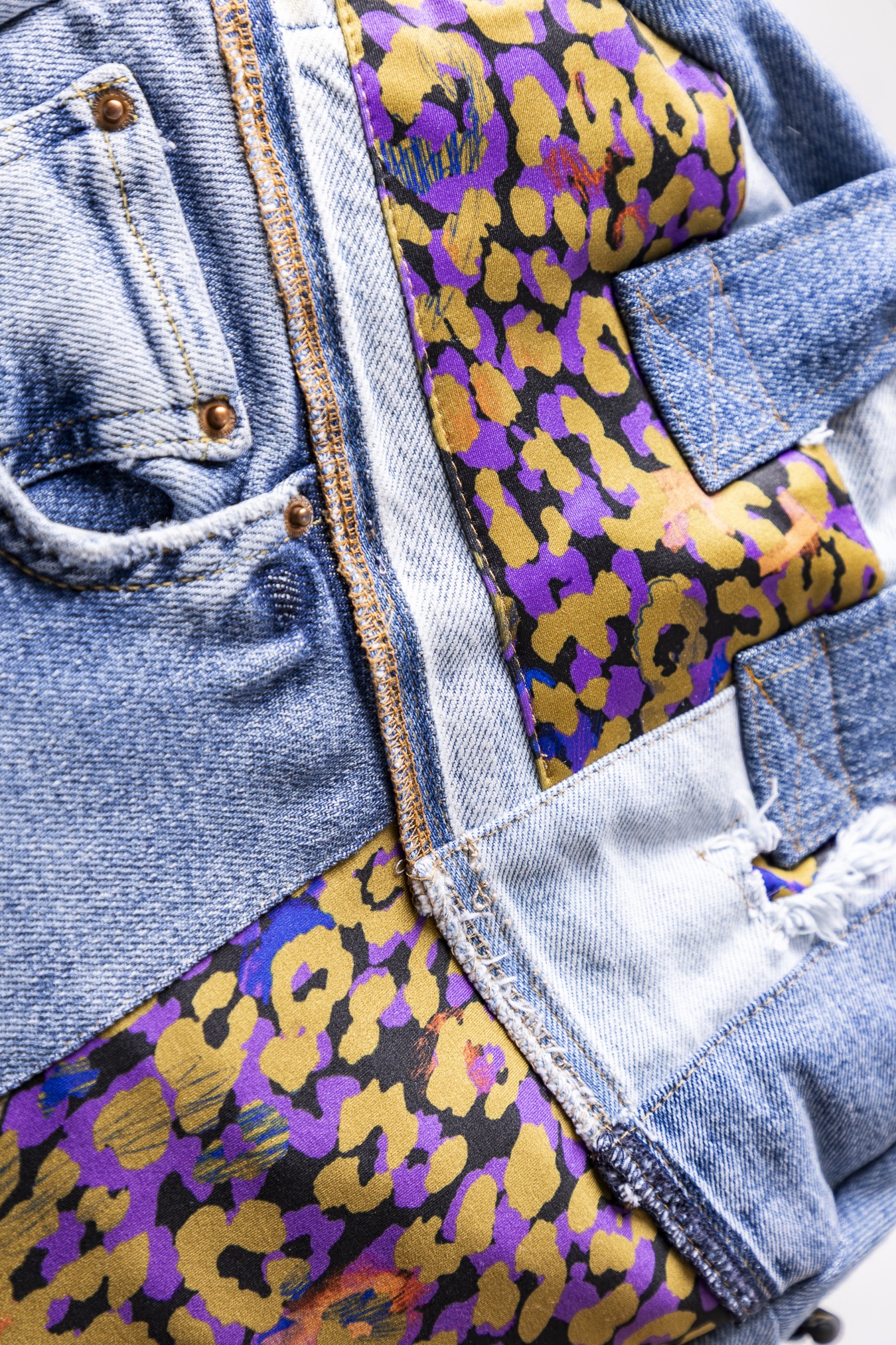 Materiały z drugiego obiegu: jeans i kolorowe materiały prosto od dzieńdobry.