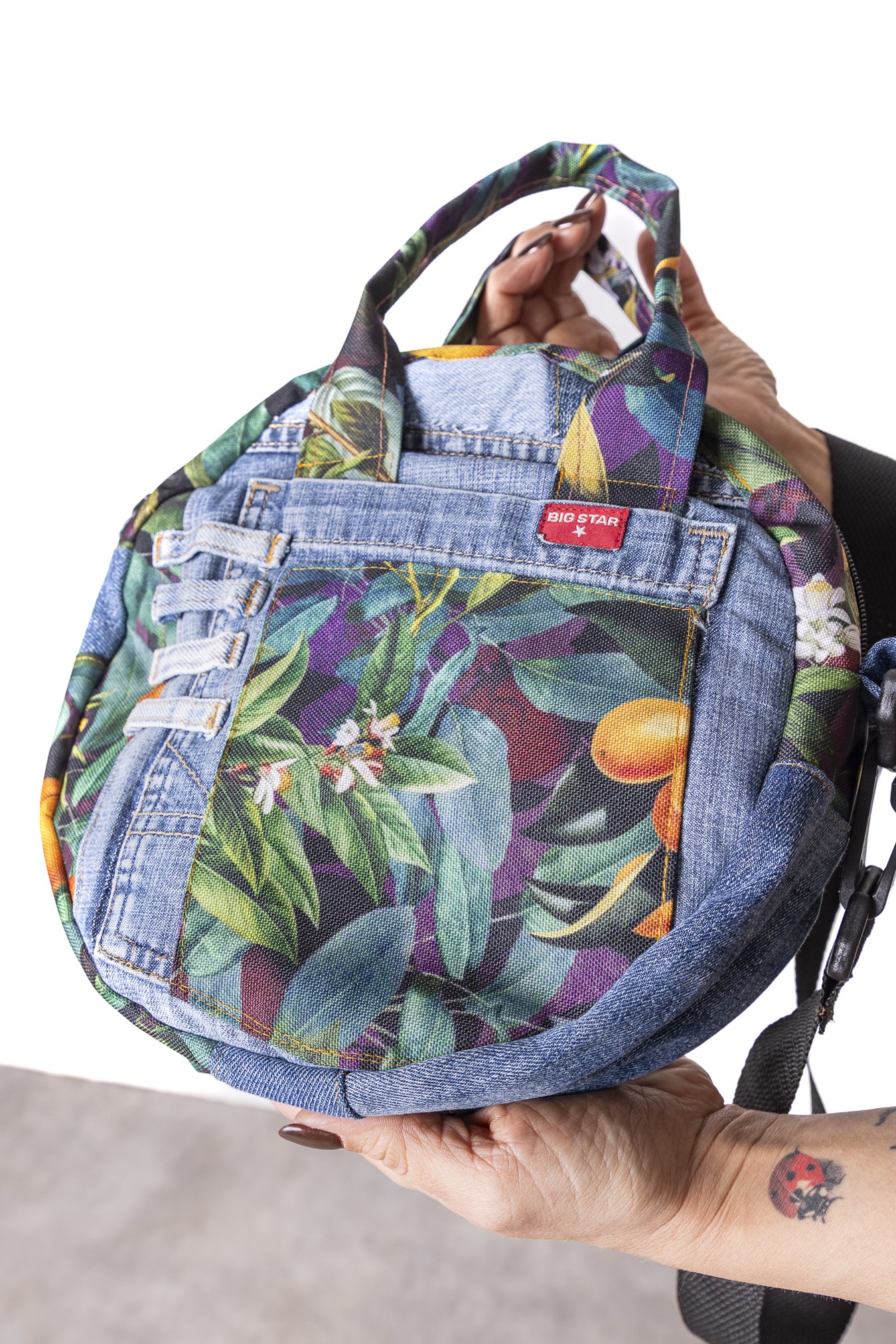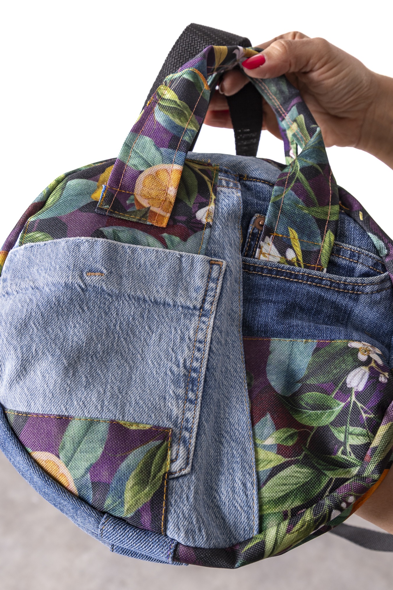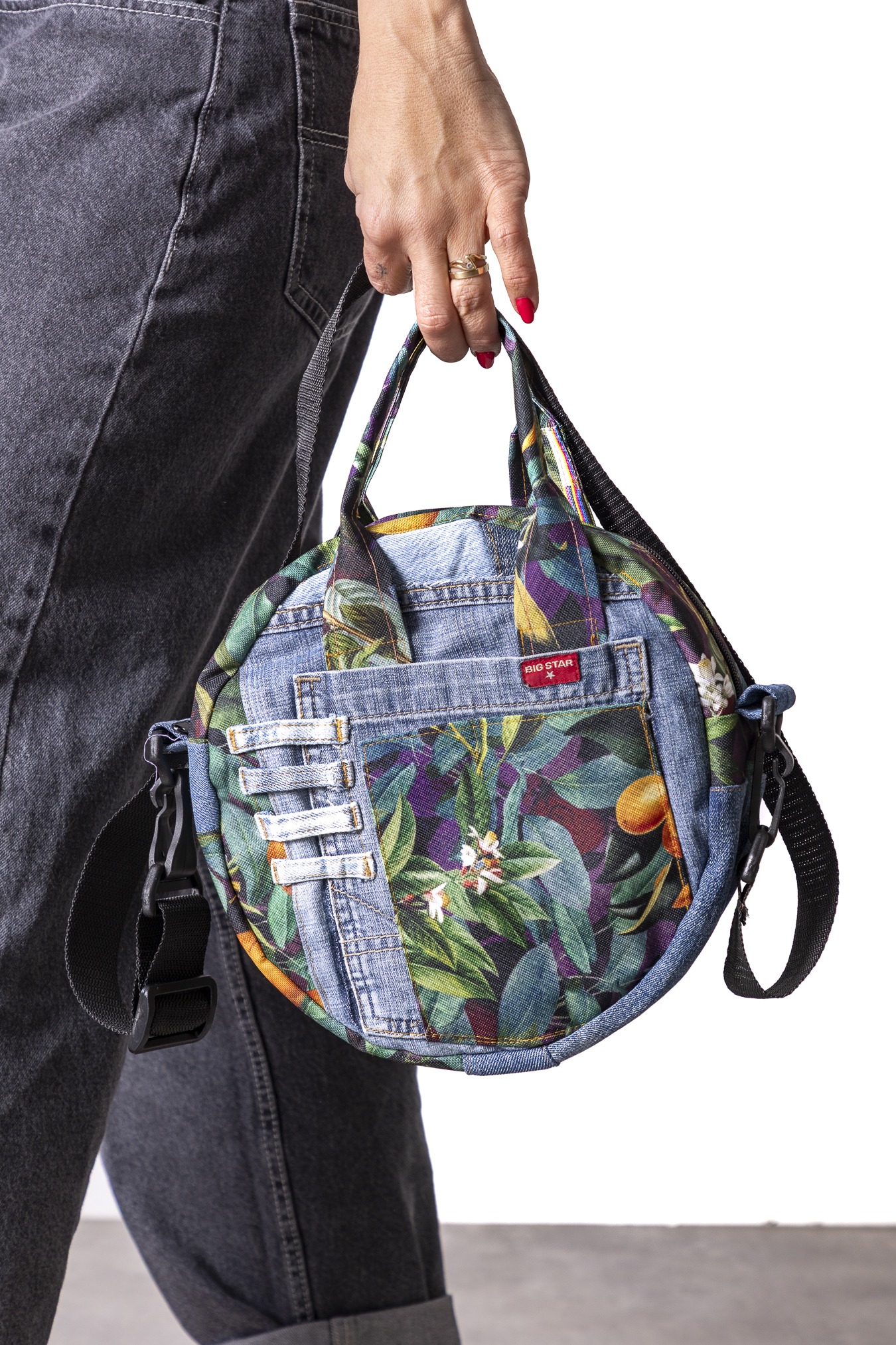 Jej okrągły kształt przyciąga spojrzenia, a kontrast między surowym jeansem a energetycznym wzorem dodaje jej charakteru i lekkości. To torba, która pasuje zarówno do codziennych spacerów, jak i do wyjść, kiedy chcesz mieć przy sobie tylko to, co najważniejsze — ale w dobrym nastroju. Okrągła torba szyta z wyselekcjonowanych jeansów z drugiego obiegu i kolorowych materiałów — każdy egzemplarz jest unikatowy. Solidna, pojemna i wygodna, idealny na co dzień i w podróży torba na drobiazgi.