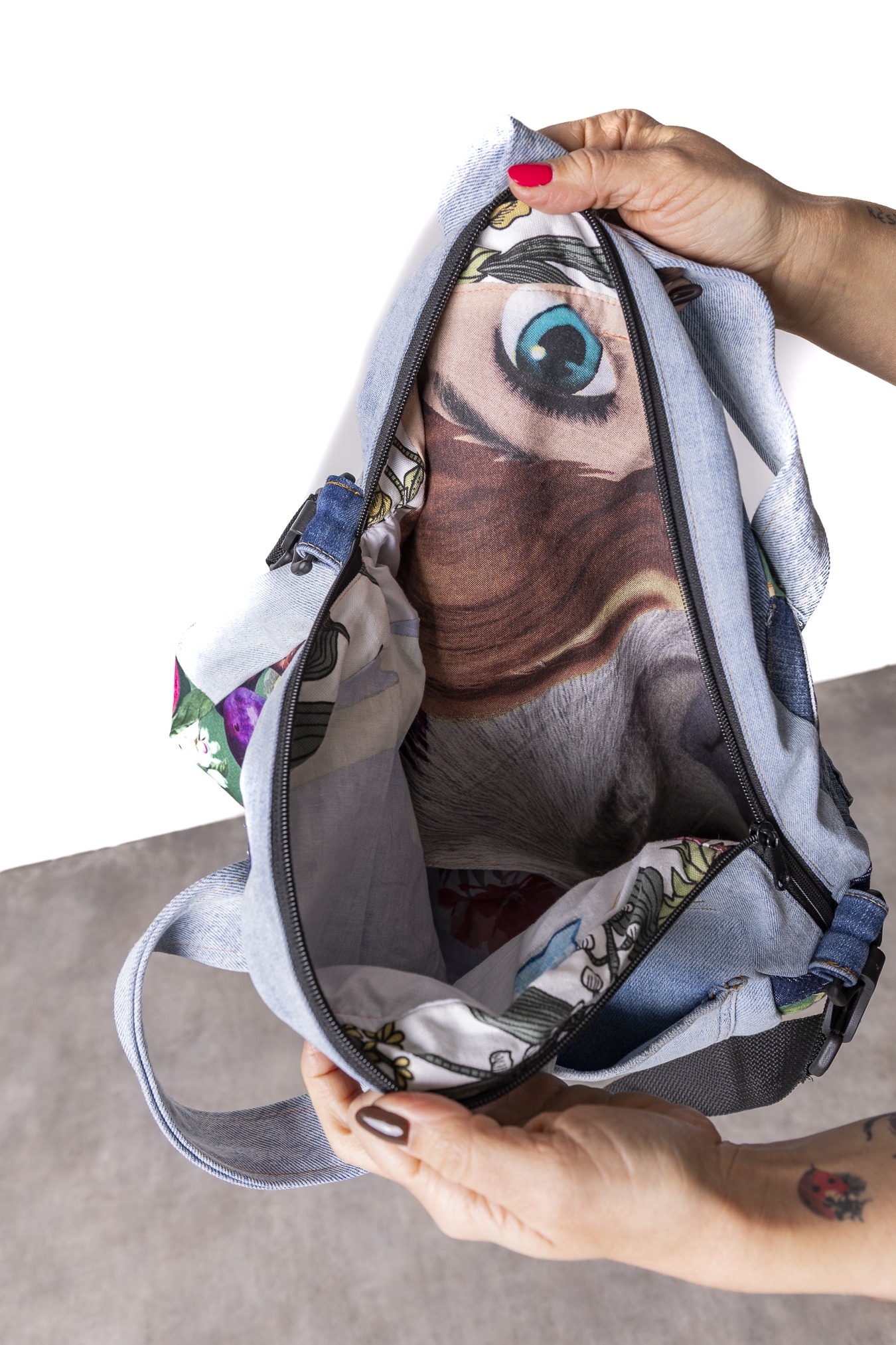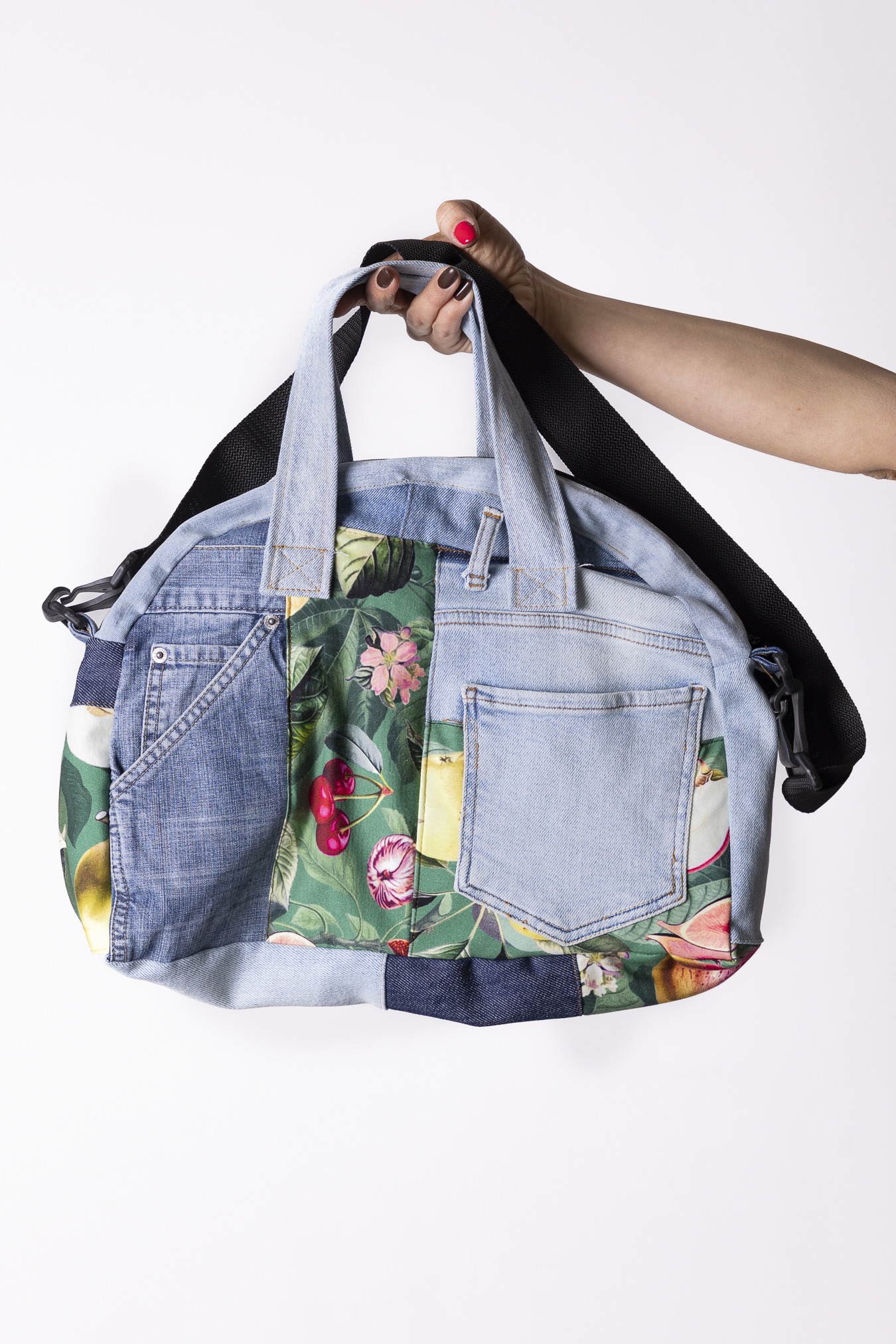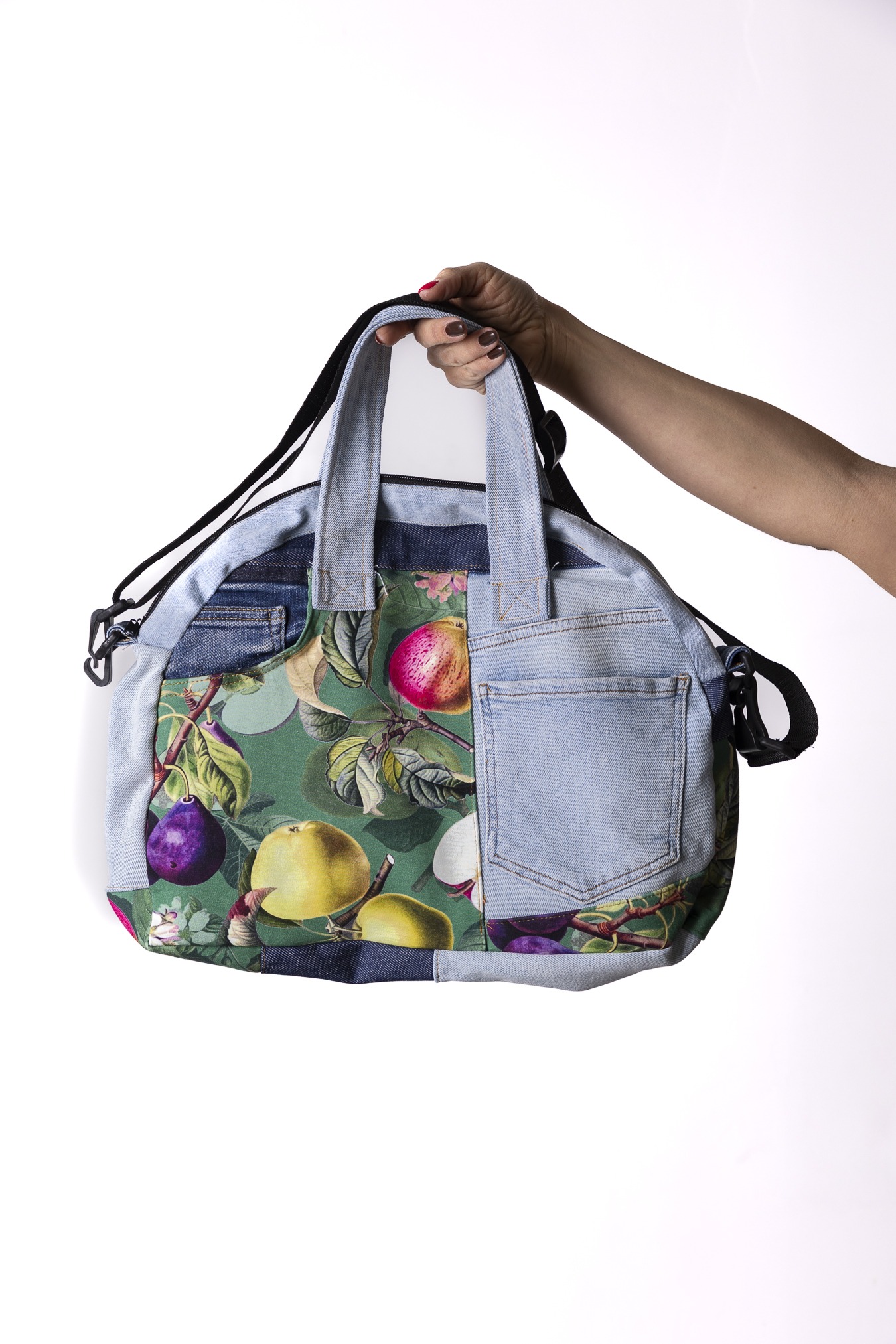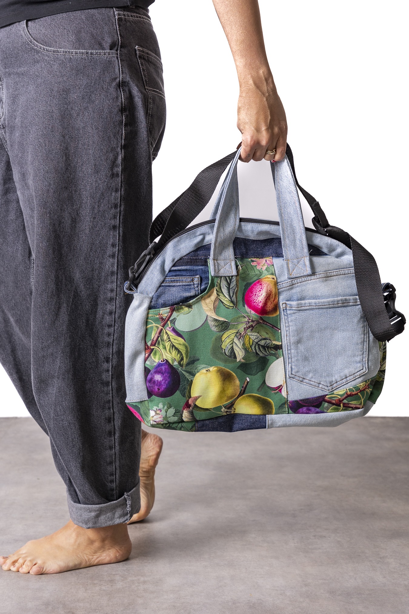 To rzecz, która od razu poprawia humor — trochę z przymrużeniem oka, a trochę całkiem serio o odpowiedzialnym podejściu do mody. Uszyta z upcyklingowych materiałów: wyselekcjonowanych jeansów z drugiego obiegu oraz kawałków naszego materiału we wzór Warzywniak, każdy egzemplarz jest jedyny w swoim rodzaju. Nie ma dwóch identycznych — dokładnie tak, jak lubimy najbardziej.