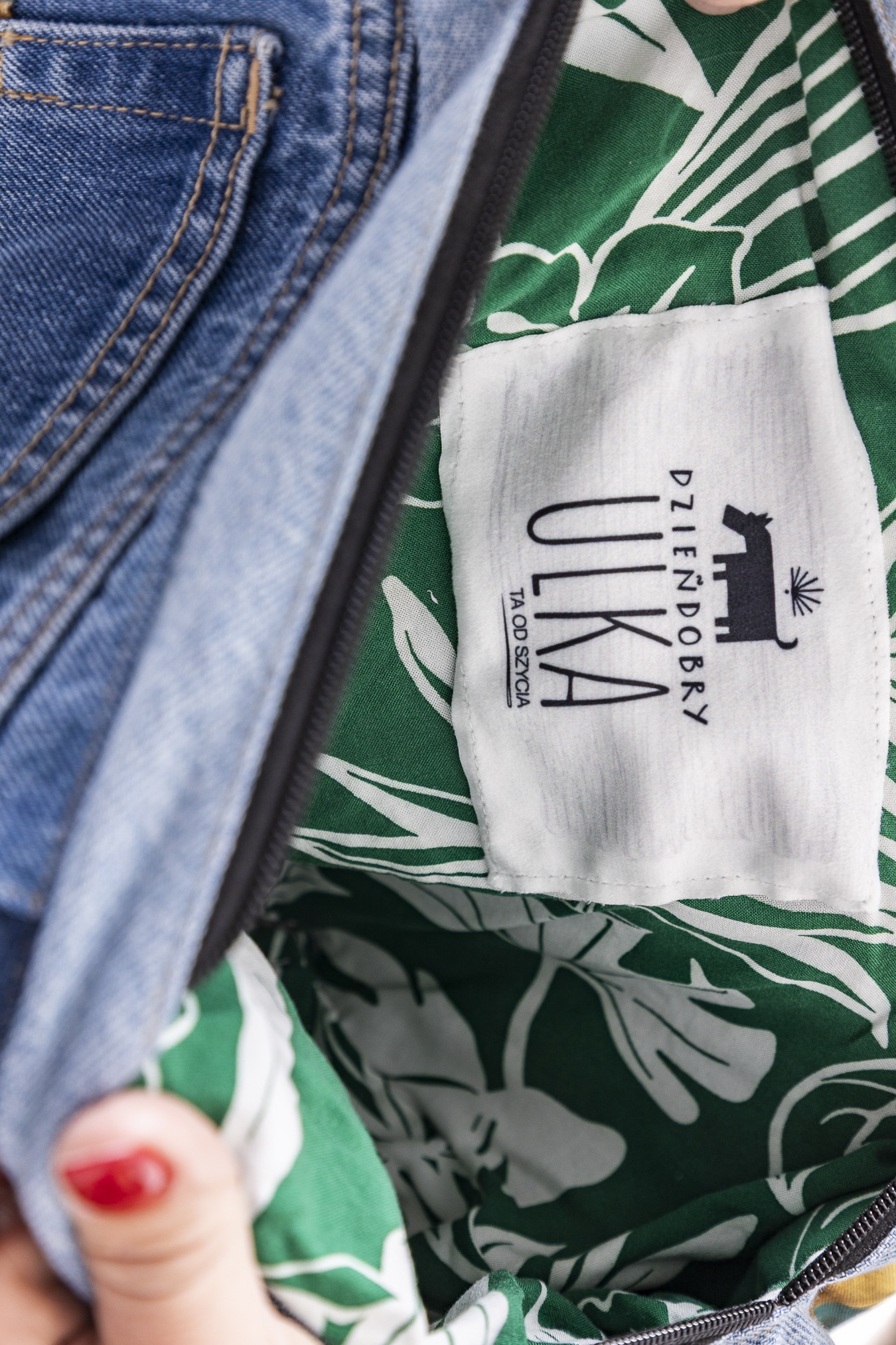 Oto torba-nerka z naszej kolekcji upcyklingowej. Powstał z materiałów, którym dajemy drugie życie — łączymy nasze produkcyjne tkaniny z wyselekcjonowanymi jeansami z drugiego obiegu. Każdy egzemplarz różni się detalami i układem wstawek — dlatego każda torba jest jedyna w swoim rodzaju.