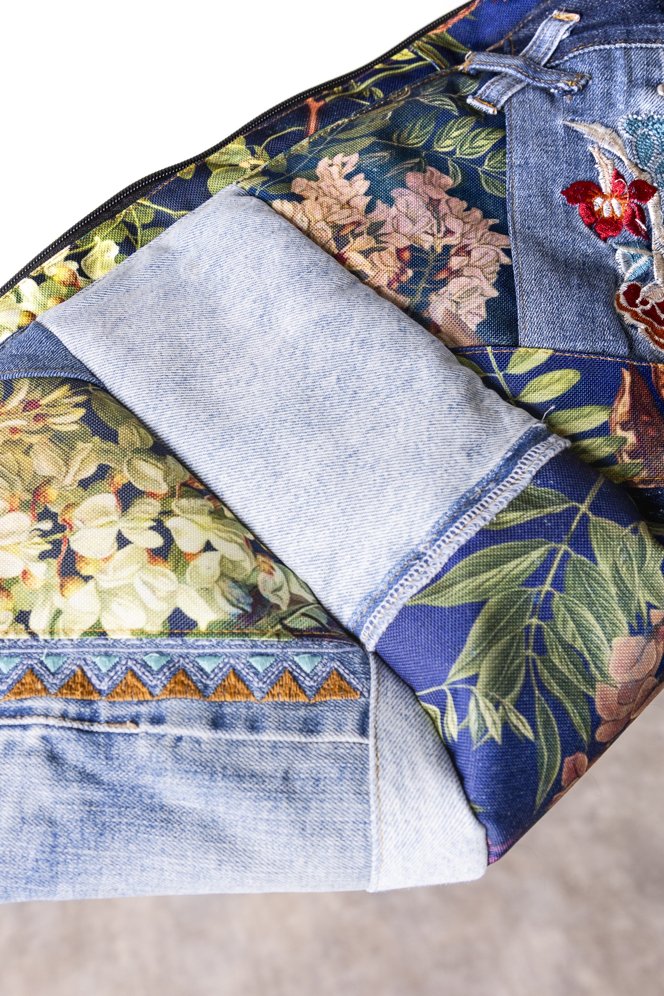 Materiały z drugiego obiegu: jeans i kolorowe materiały