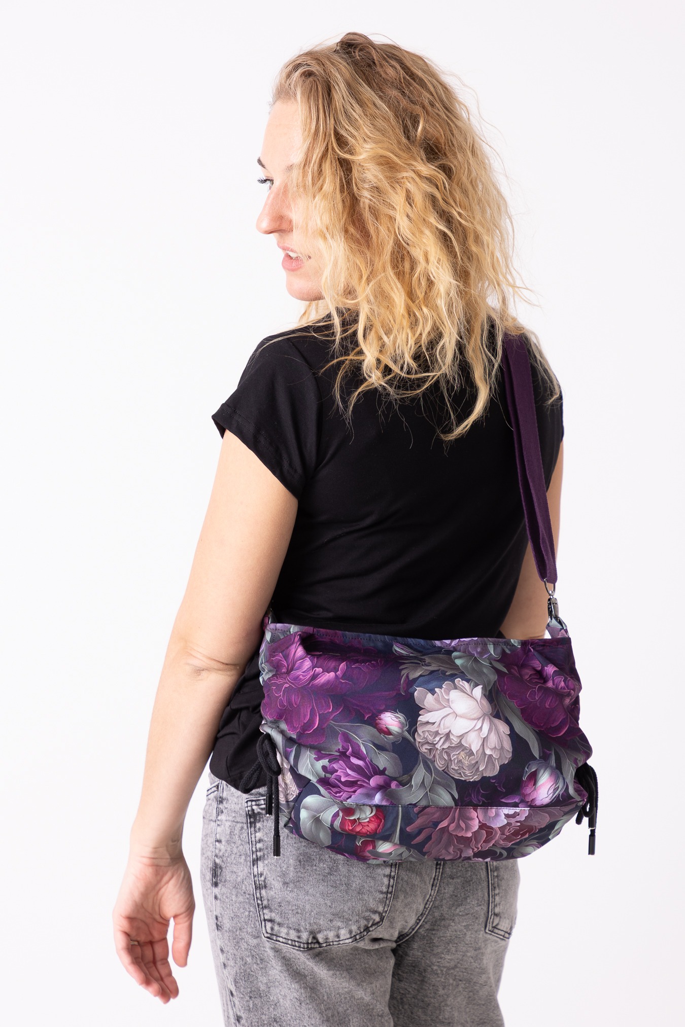 – regulowana forma – boczne sznurki pozwalają ściągnąć torbę w nerkę