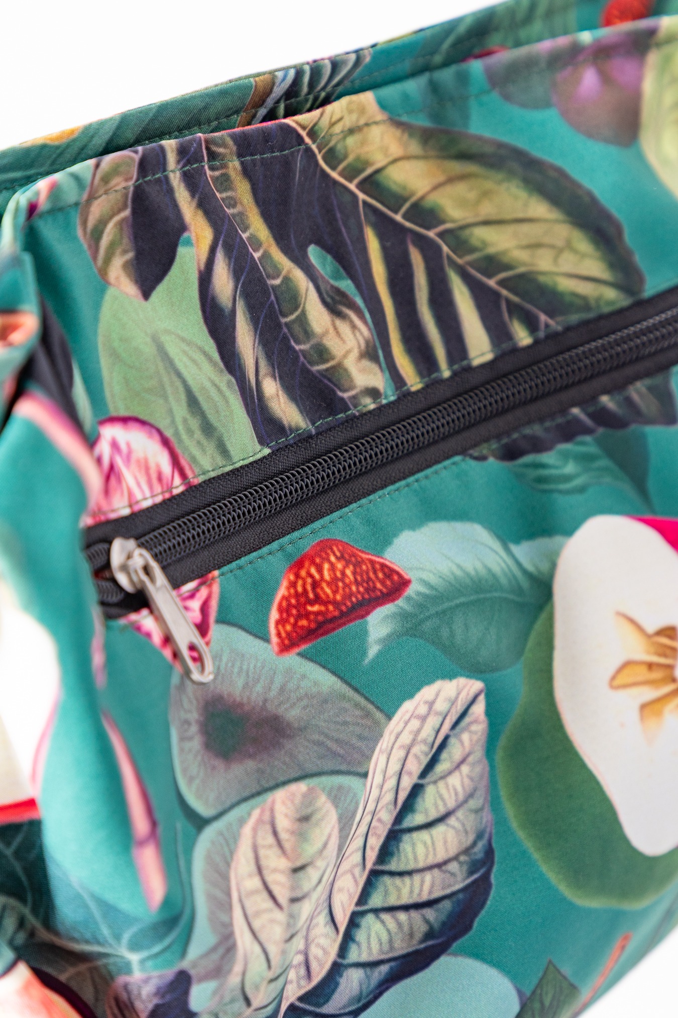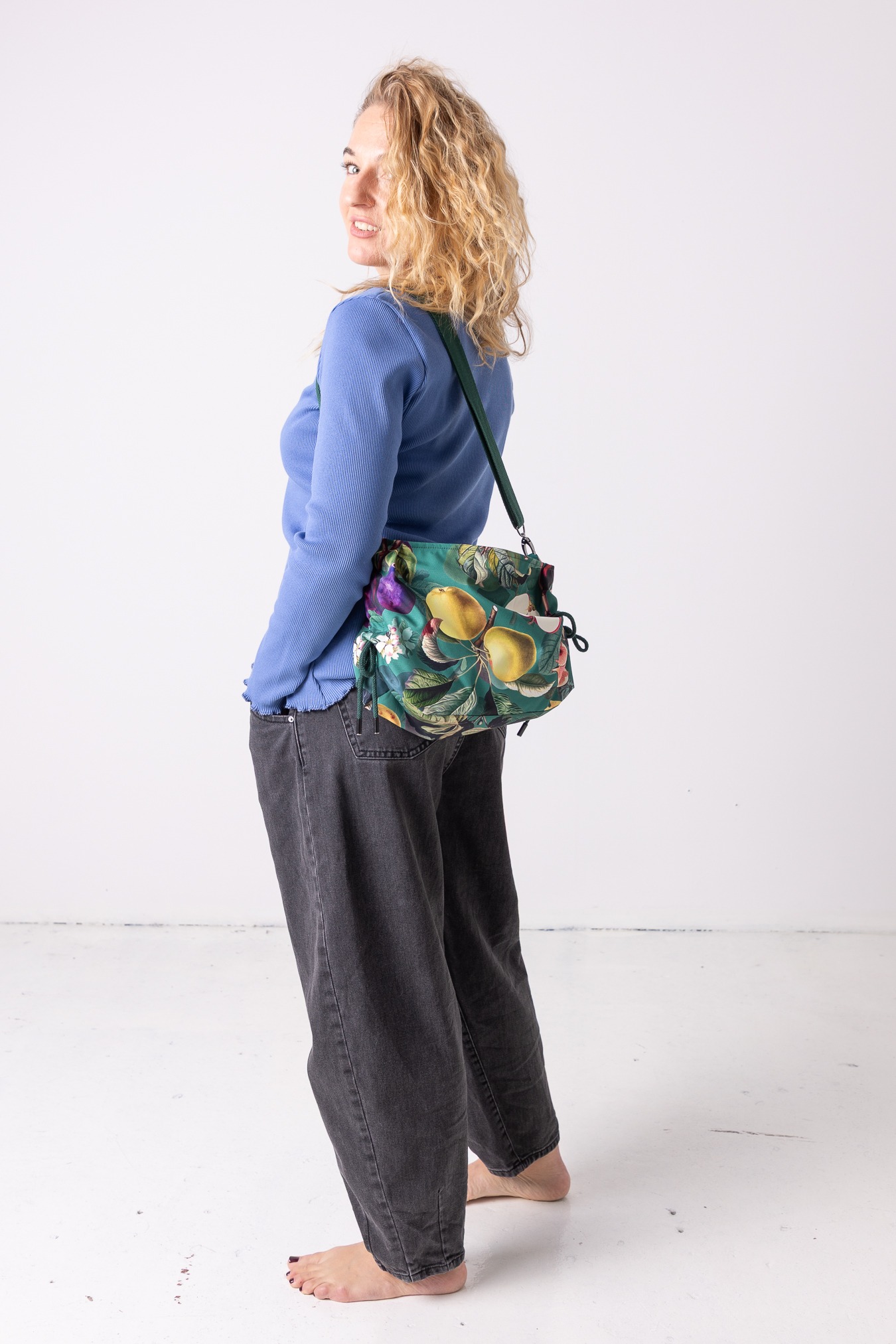 Kolorowe warzywa i zioła tańczą po powierzchni tej torebki, przywołując nastrój lokalnego targu. Uszyta z wodoodpornego softshellu, chroni zawartość przed wiatrem i lekkim deszczem, a przy tym jest miękka i przyjemna w noszeniu. Dodatkowe zabezpieczenie tkaniny w postaci impregnacji, sprawia, że materiał jest odporny na trwałe zabrudzenia oraz mniej podatny na przemakanie. Dzięki regulowanym, bocznym troczkom możesz ją ściągnąć i zmienić formę i nosić dokładnie tak, jak masz ochotę. Niezwykle pojemna, jej wnętrze bez problemu pomieści najważniejsze rzeczy – łącznie z butelką wody, książką czy drobiazgami na cały dzień.