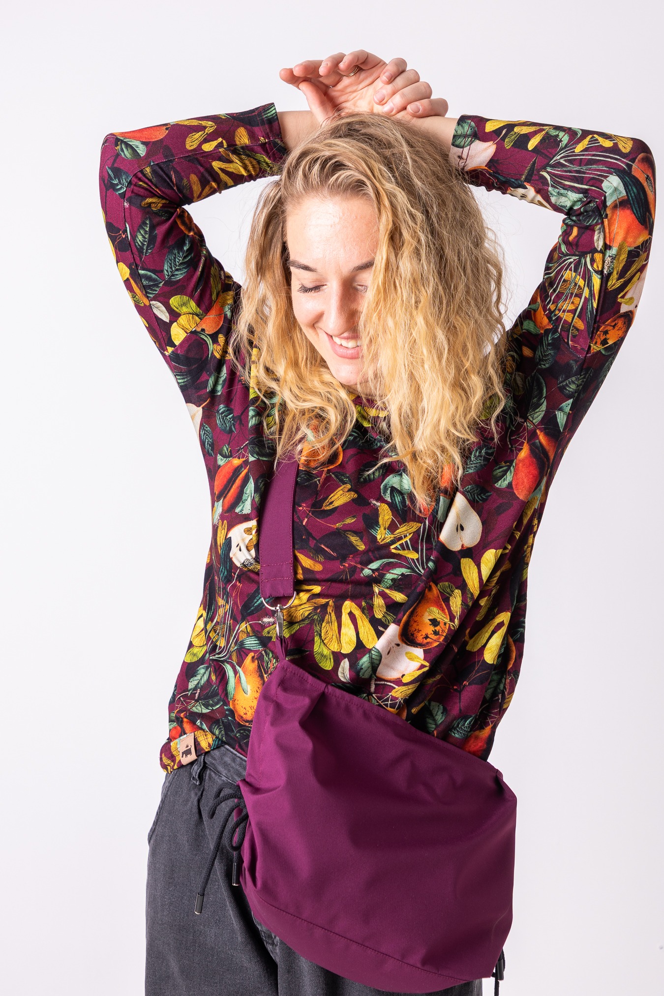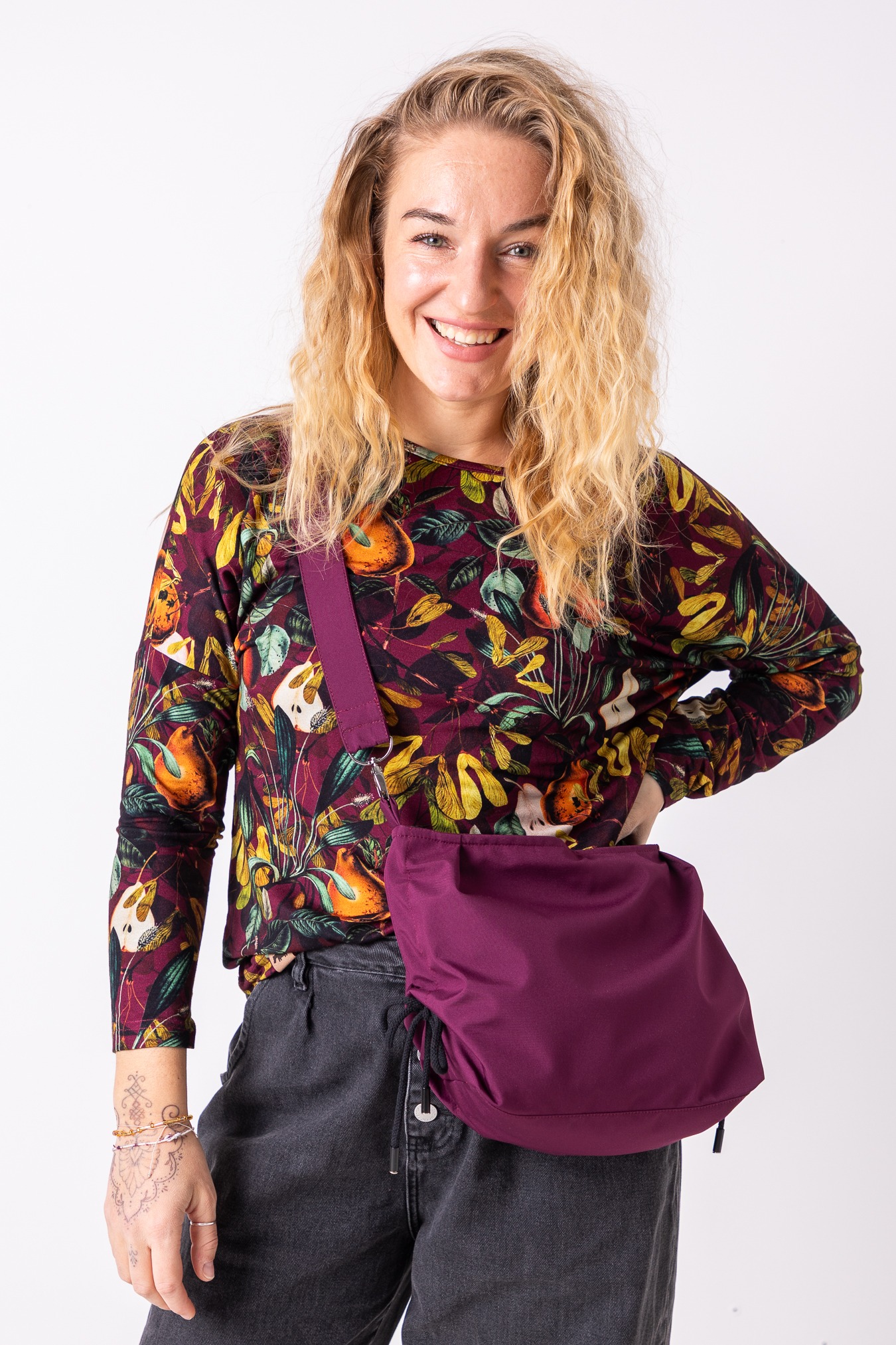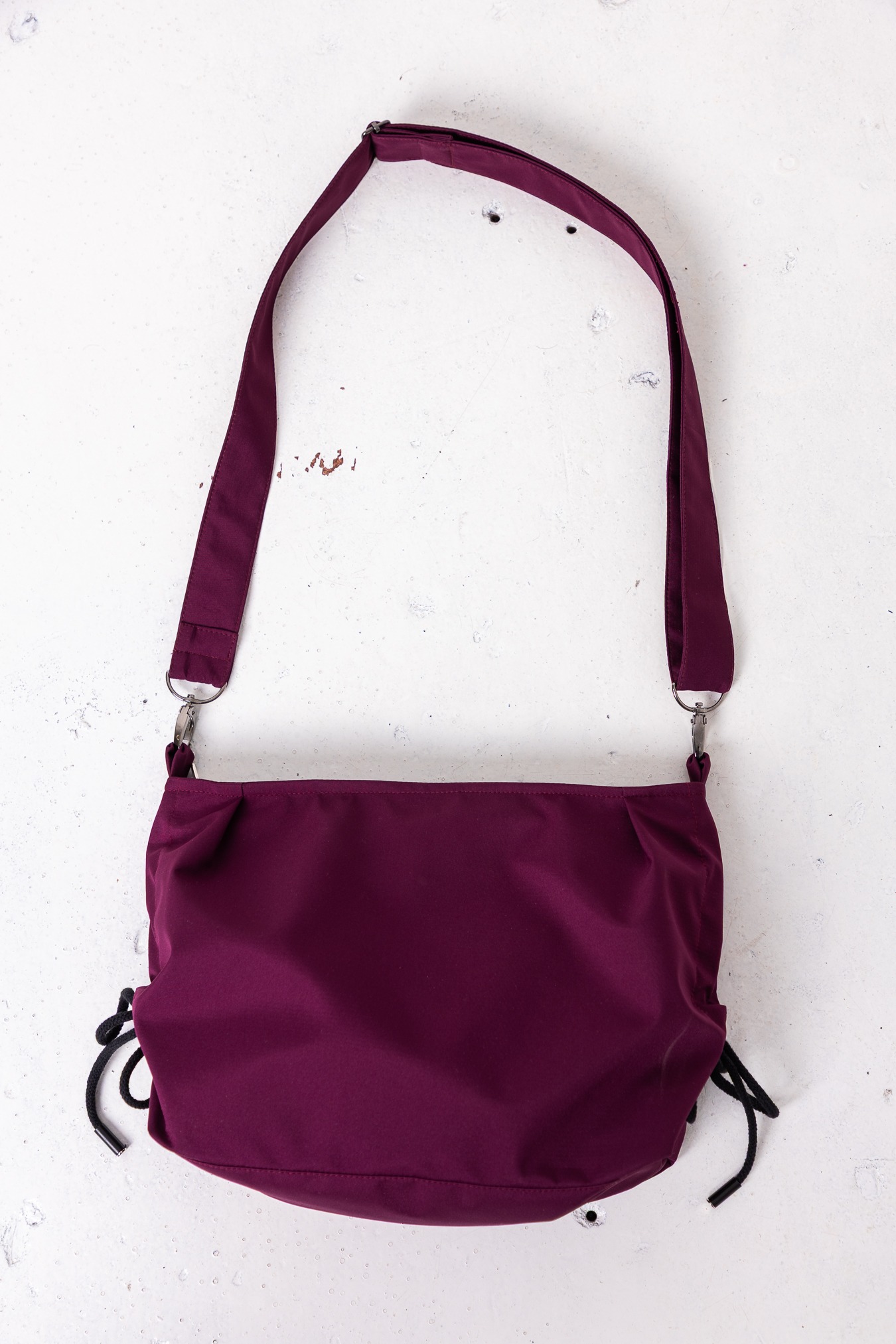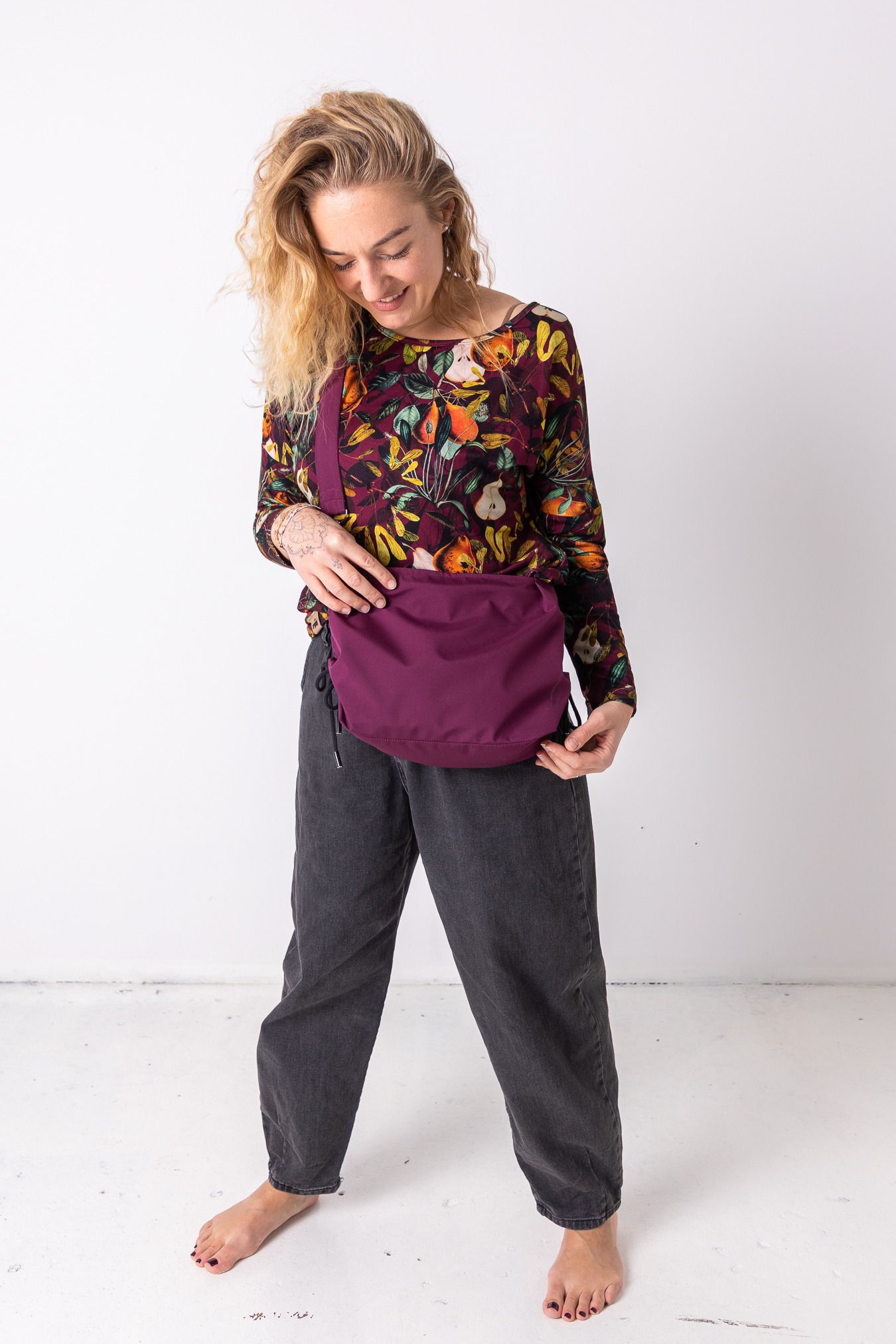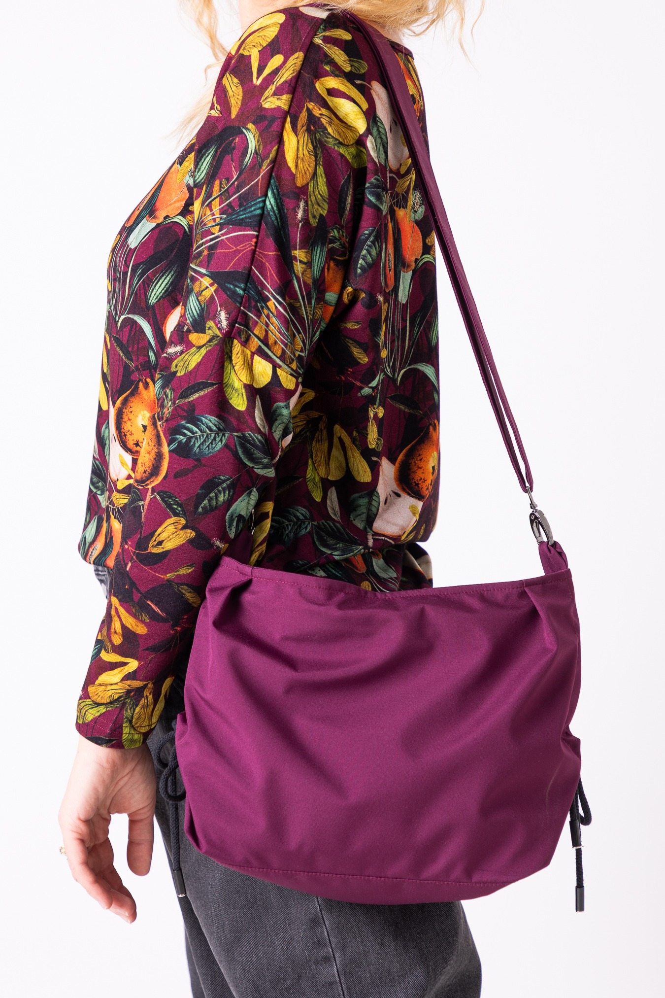 – regulowana forma – boczne sznurki pozwalają ściągnąć torbę w nerkę