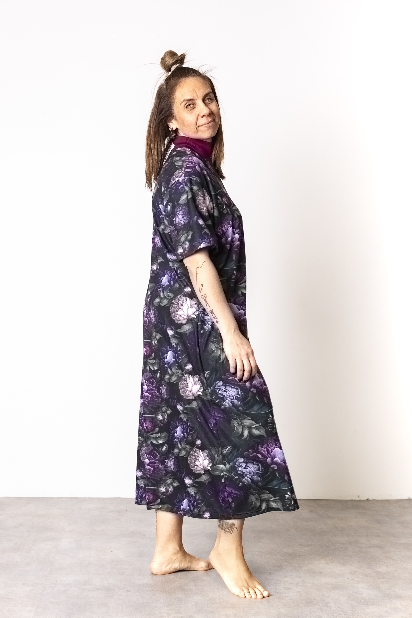 Kolorowa, odważna i totalnie niepowtarzalna. Uszyta z patchworkowo łączonych tkanin z autorskimi wzorami Dzień Dobry, które nadają jej artystyczny, radosny charakter. Każda sukienka to unikat – pełen energii mix kolorów i faktur, zaprojektowany z myślą o wygodzie i swobodzie noszenia. To propozycja dla osób, które lubią wyróżniać się stylem i wybierać modę z historią oraz sensem.