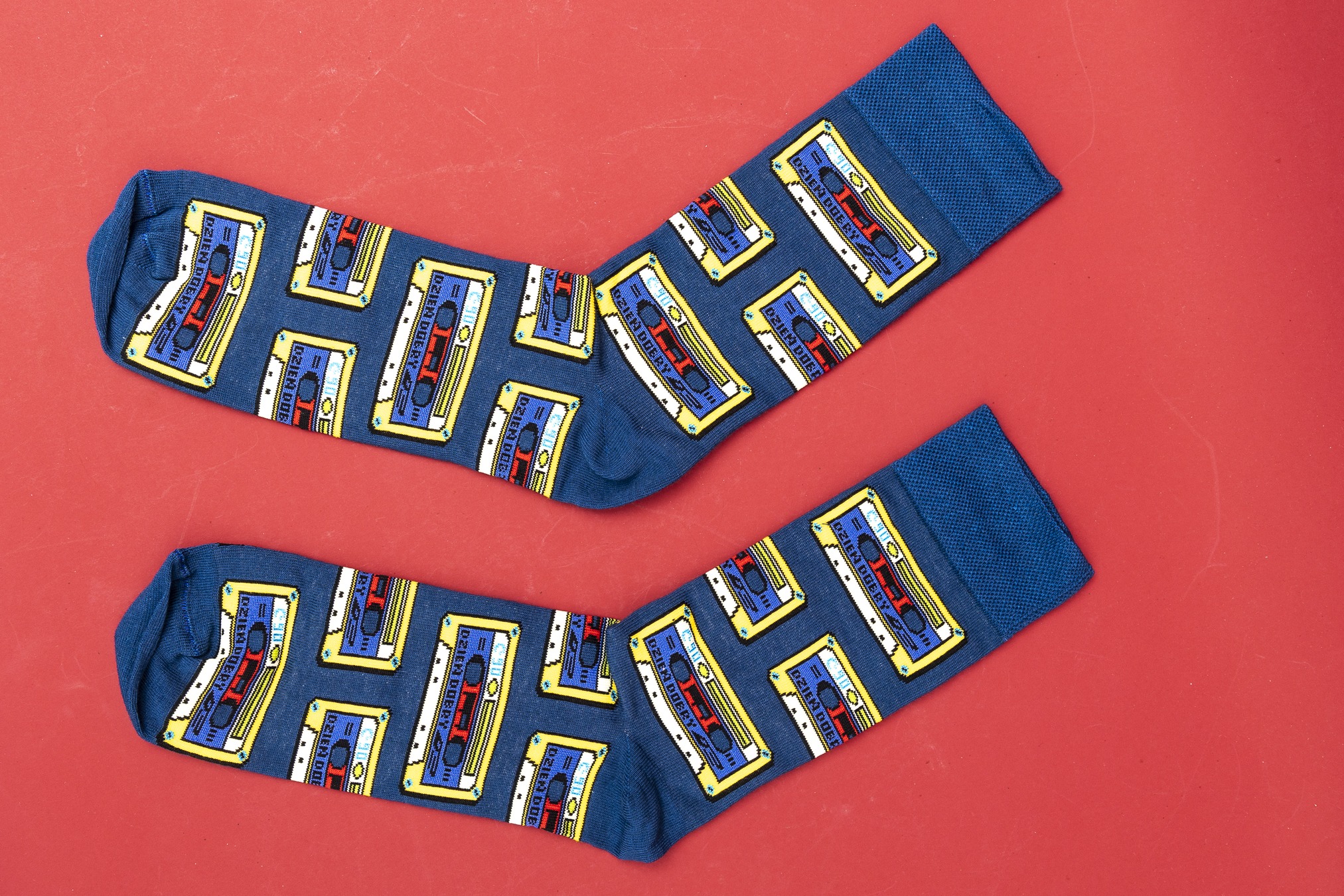 • skarpety we wzór Kaseta – dla fanów dobrego brzmienia i klimatu lat 90. Miękkie, wygodne, zadziorne, rozm. 41-45