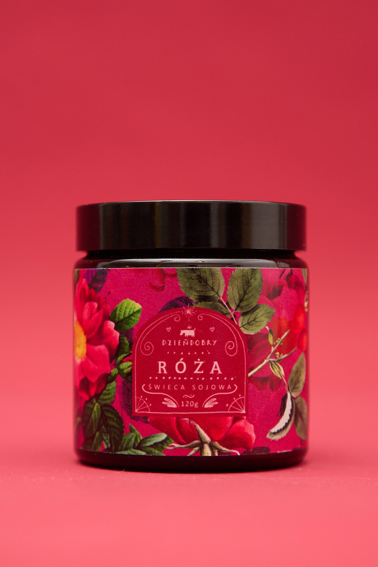 • Świecę sojową Róża – profil zapachowy: zielone liście, róża, delikatne piżmo – 120 ml