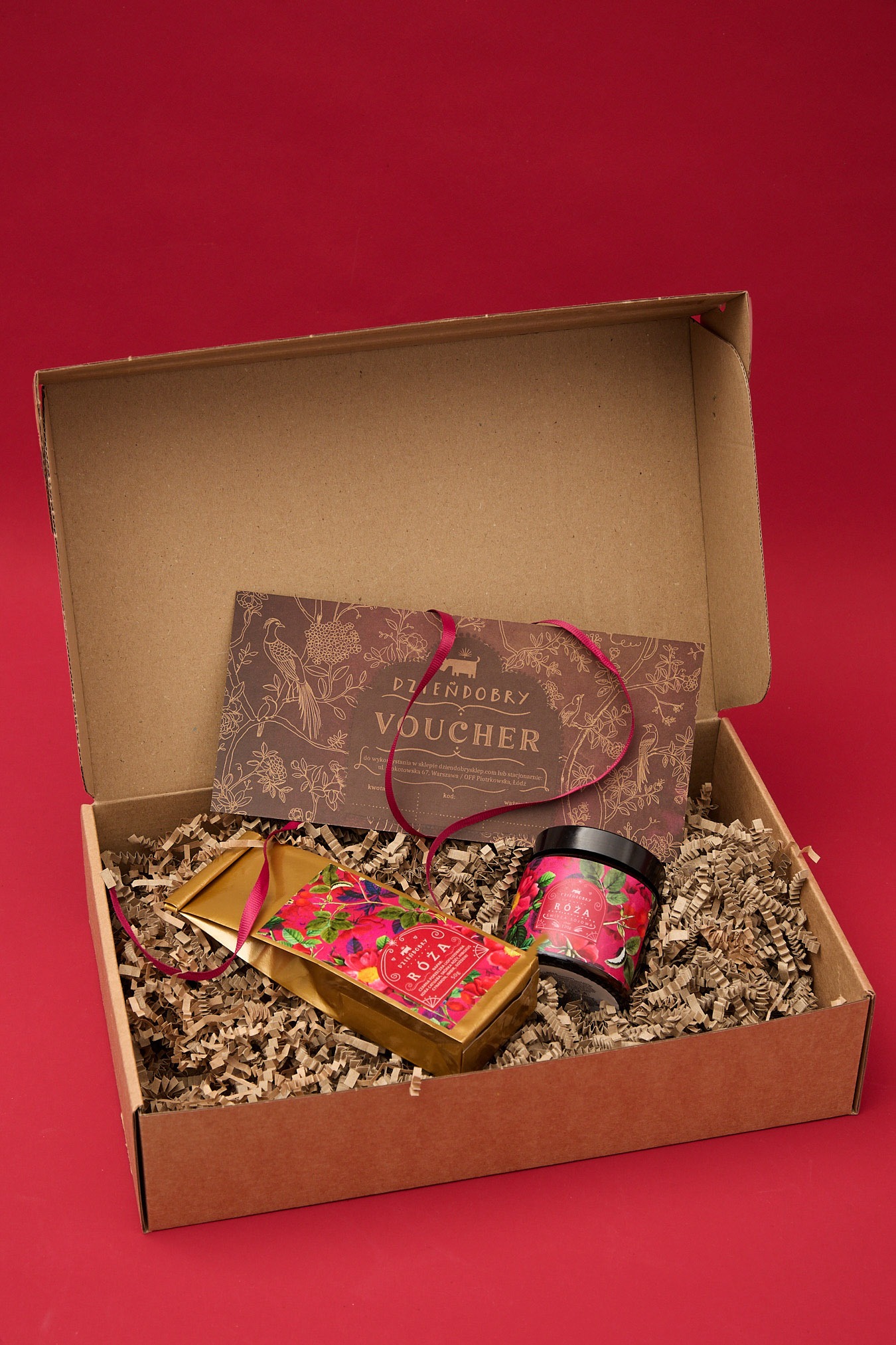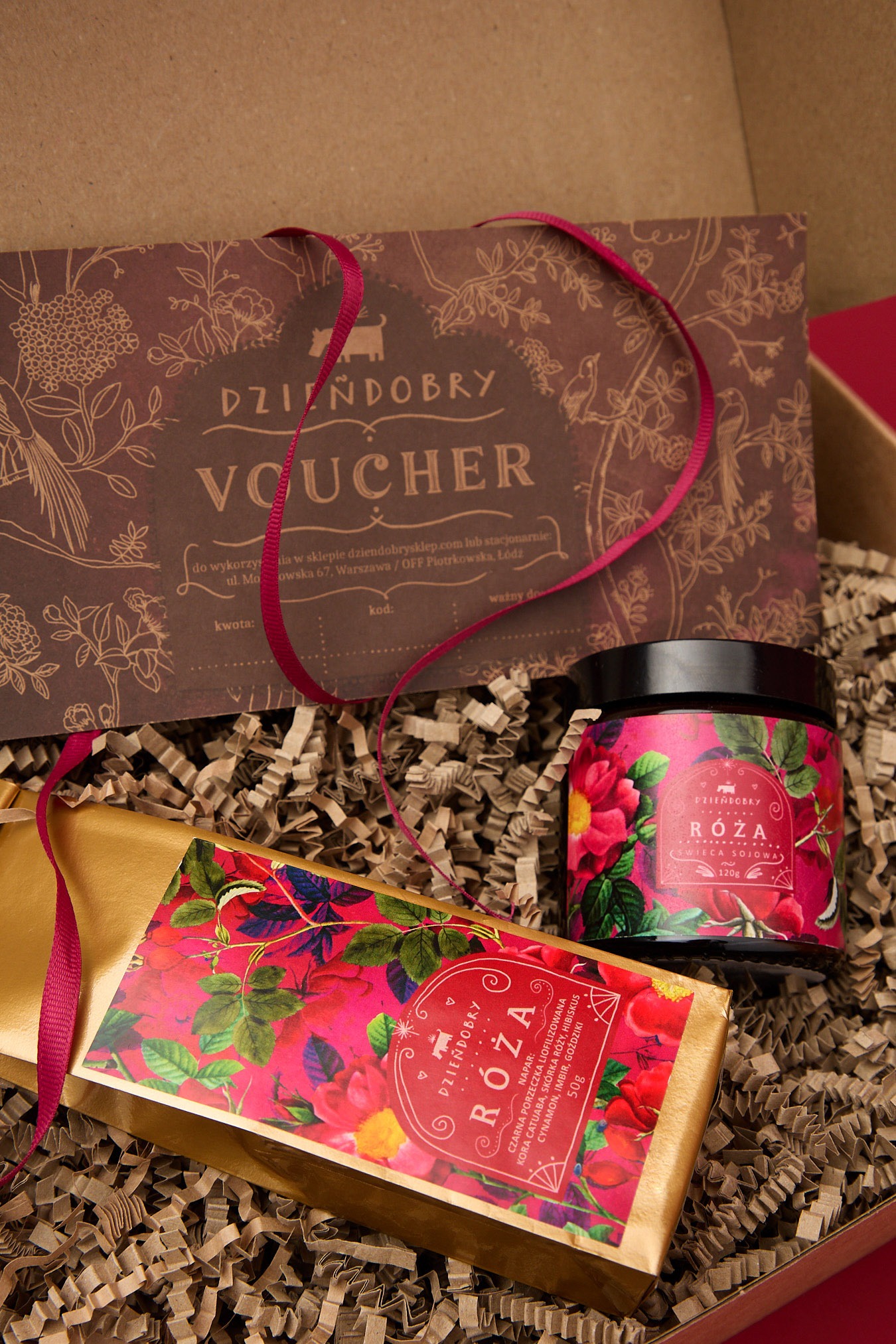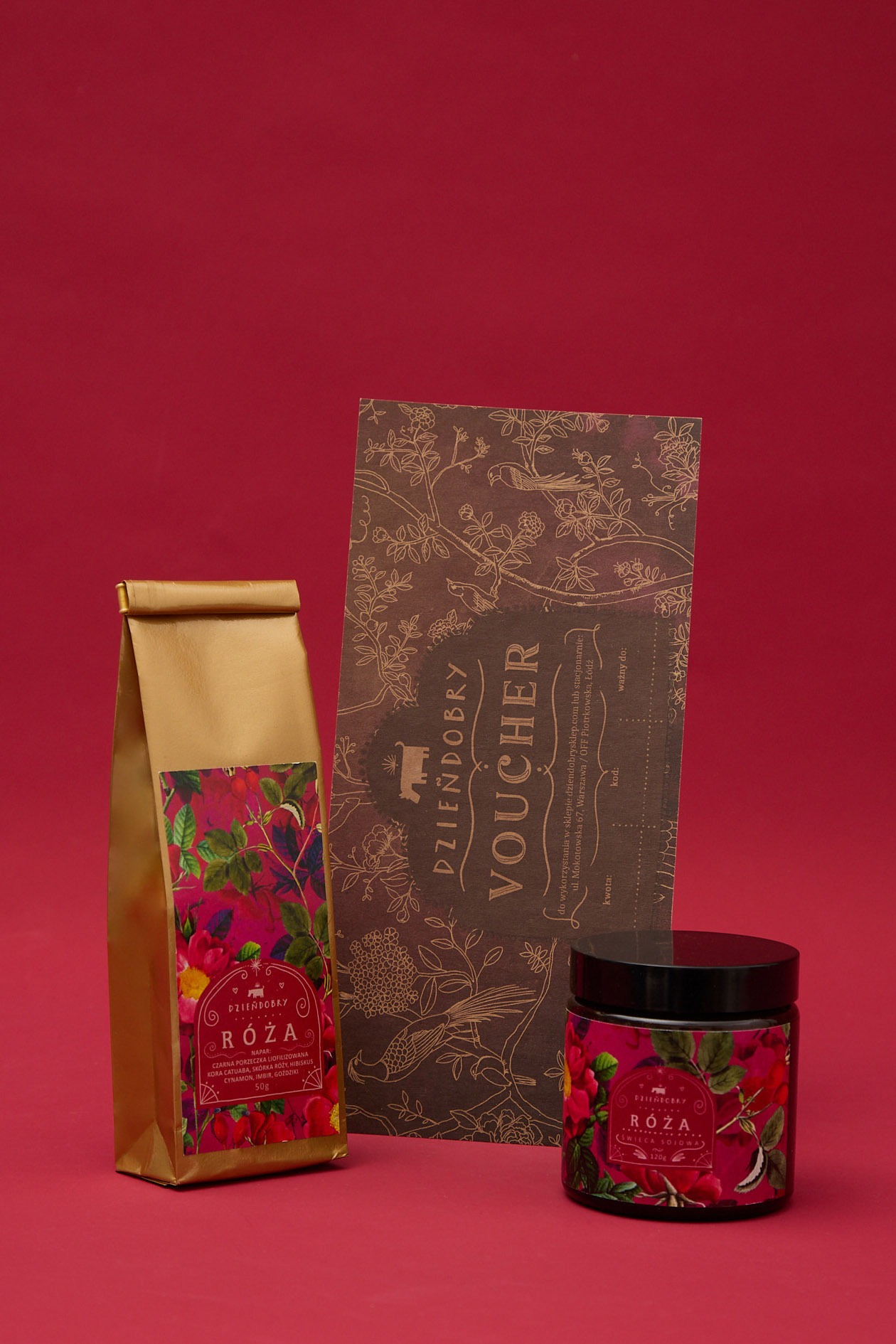 Są takie prezenty, które nie tylko wyglądają pięknie — one po prostu… robią dobrze na duszy. Zestaw „Różany Spokój” powstał właśnie po to, by podarować komuś chwilę zatrzymania. Taką tylko dla siebie. Voucher pozwoli wybrać to, co naprawdę skradnie serce — od legginsów po bluzy, bomberki i ulubione wzory. Świeca sojowa Róża – tworzy miękkie światło i jeszcze bardziej miękki nastrój. Rozgrzewa, nawet kiedy za oknem szron.  A napar różany podaruje spokojne poranki, spokojne popołudnia i trochę czasu dla siebie.
